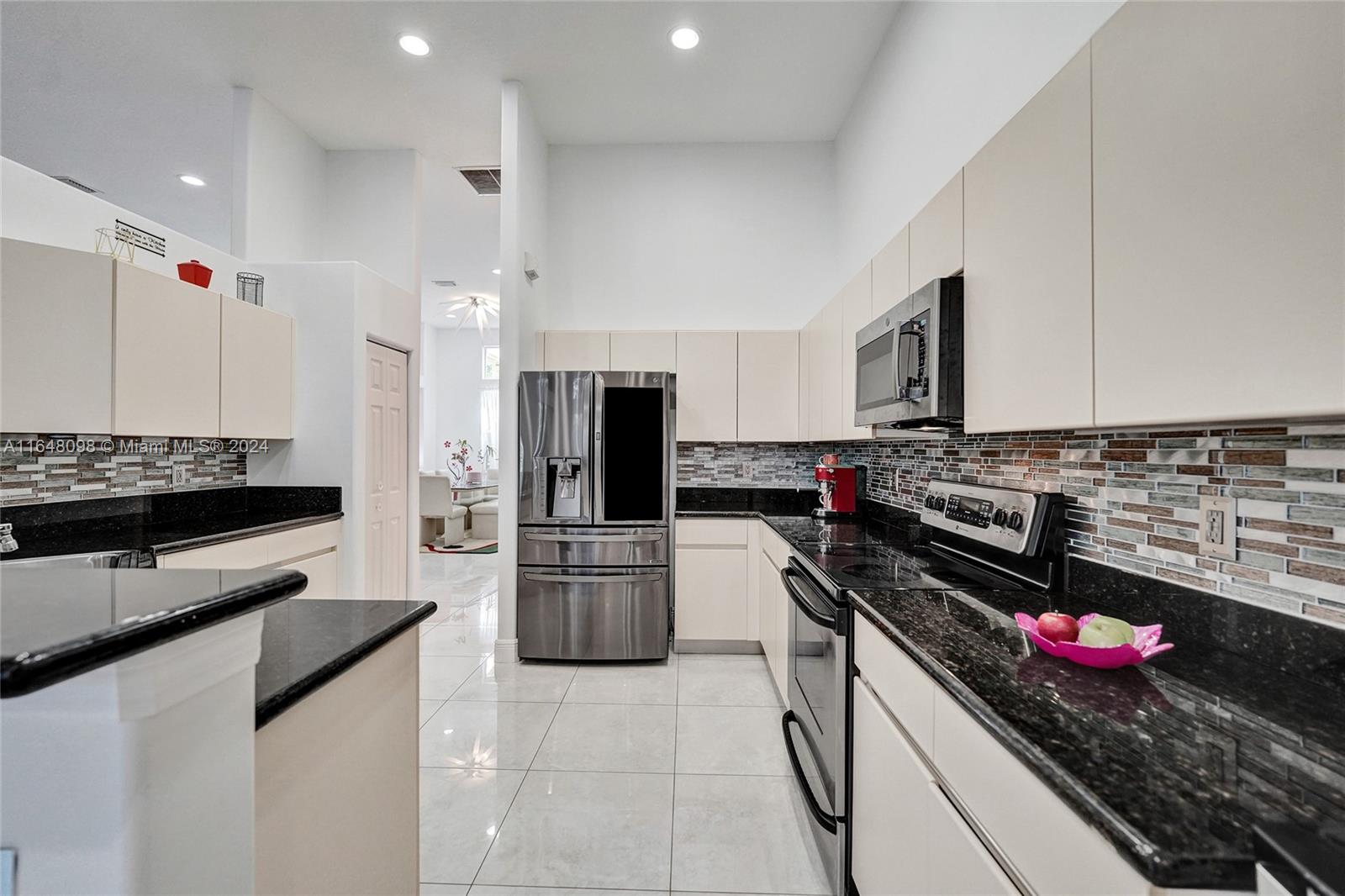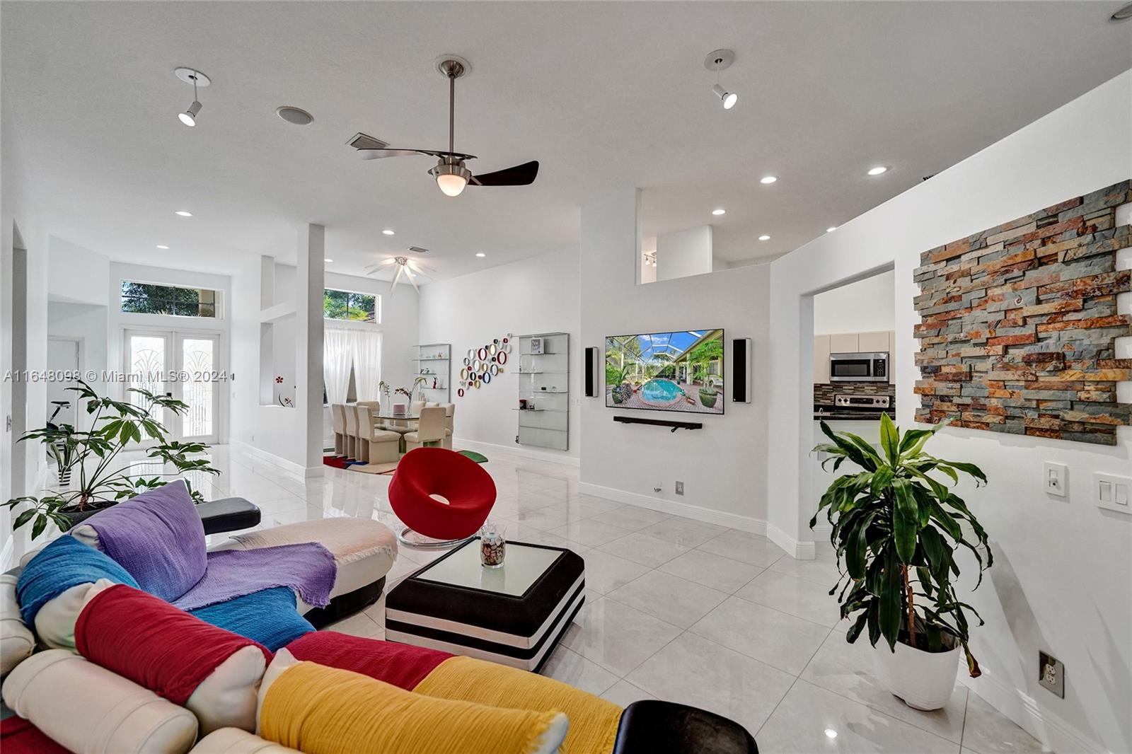 Welcome to this vast, light-filled home nestled in the exclusive gated community of Savanna. The residence features spacious 5 BD / 3.5 BA surrounded with white spanish porcelain tile, a gourmet kitchen, expansive family room, complete with a built-in stereo system and LED lighting. The resort-style screened-in patio features a solar-heated saltwater pool, perfect for year-round enjoyment. Accordion hurricane shutters provide peace of mind. Two AC units, water softener treatment, Google Home, Arlo Camera and ADT Security Systems. Additional features: Tankless water heater and outdoor motion lights. Surrounding the community are A+ schools, a clubhouse, multiple pools, sports fields, and more. This is a rare find so don't miss your chance! Your future home is awaiting!