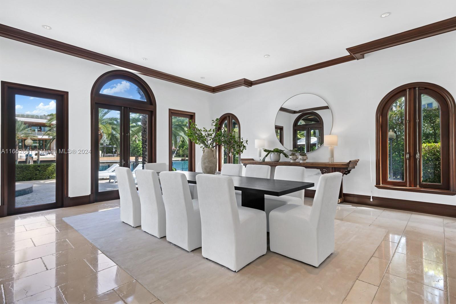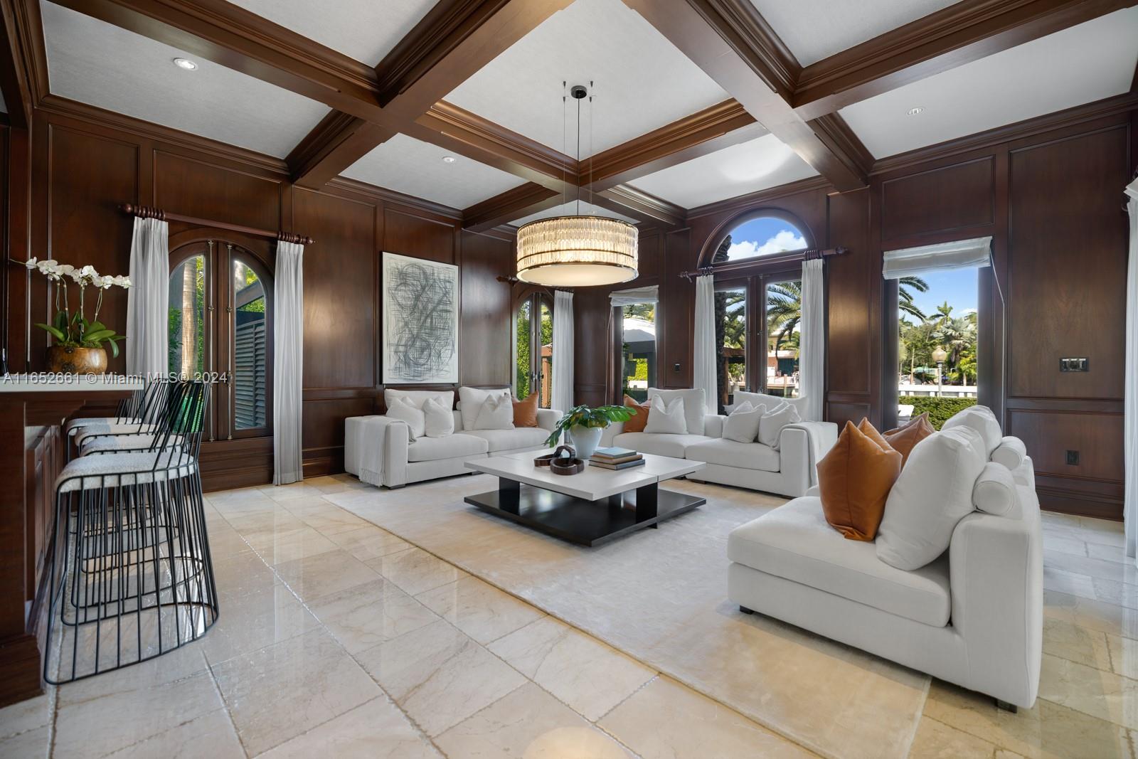 Discover the epitome of luxury living on coveted Sunset Island III with this extraordinary waterfront estate. Nestled on a sprawling 27,300-sf lot, this property boasts 156 feet of water frontage and direct Biscayne Bay access, perfect for yacht enthusiasts. This 7-bedroom, 9-bath masterpiece spans 11,790 sf featuring an impressive foyer with imperial staircase opening to a beautiful courtyard, expansive living areas, a gourmet chef's kitchen, and a home theater. The master suite offers two lavish baths and boutique-style walk-in closets. Outside, a resort-style oasis awaits with a heated pool, spa, summer kitchen, and rooftop terrace, ideal for entertaining. With a private dock, elevator, and lush landscaping, this estate is tailored for the most sophisticated and discerning buyers