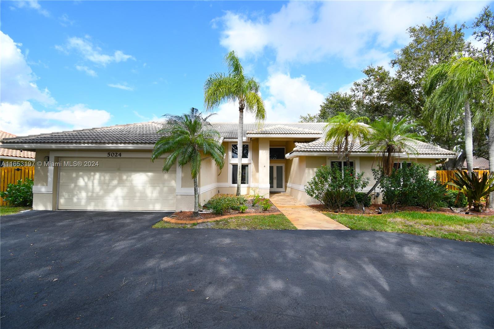 Stunning home situated on a spacious 1/3-acre corner lot on a picturesque street lined with mature oak trees. It boasts exceptional curb appeal with an expansive front lawn, manicured landscaping, a circular driveway, and an elegant double-glass door entry. Enjoy direct views of the beautiful pool area. The interior features volume ceilings, impact glass windows and doors, and recently installed vinyl flooring. Ideal for indoor/outdoor living and entertaining. The large kitchen and family room offer new stainless steel appliances, granite countertops, a pantry, and a bright breakfast area. The exterior features a large screened porch with a solar-heated pool, a renovated primary bathroom, impact windows and doors, a Leaf Filter gutter system, and a newly installed perimeter fence.