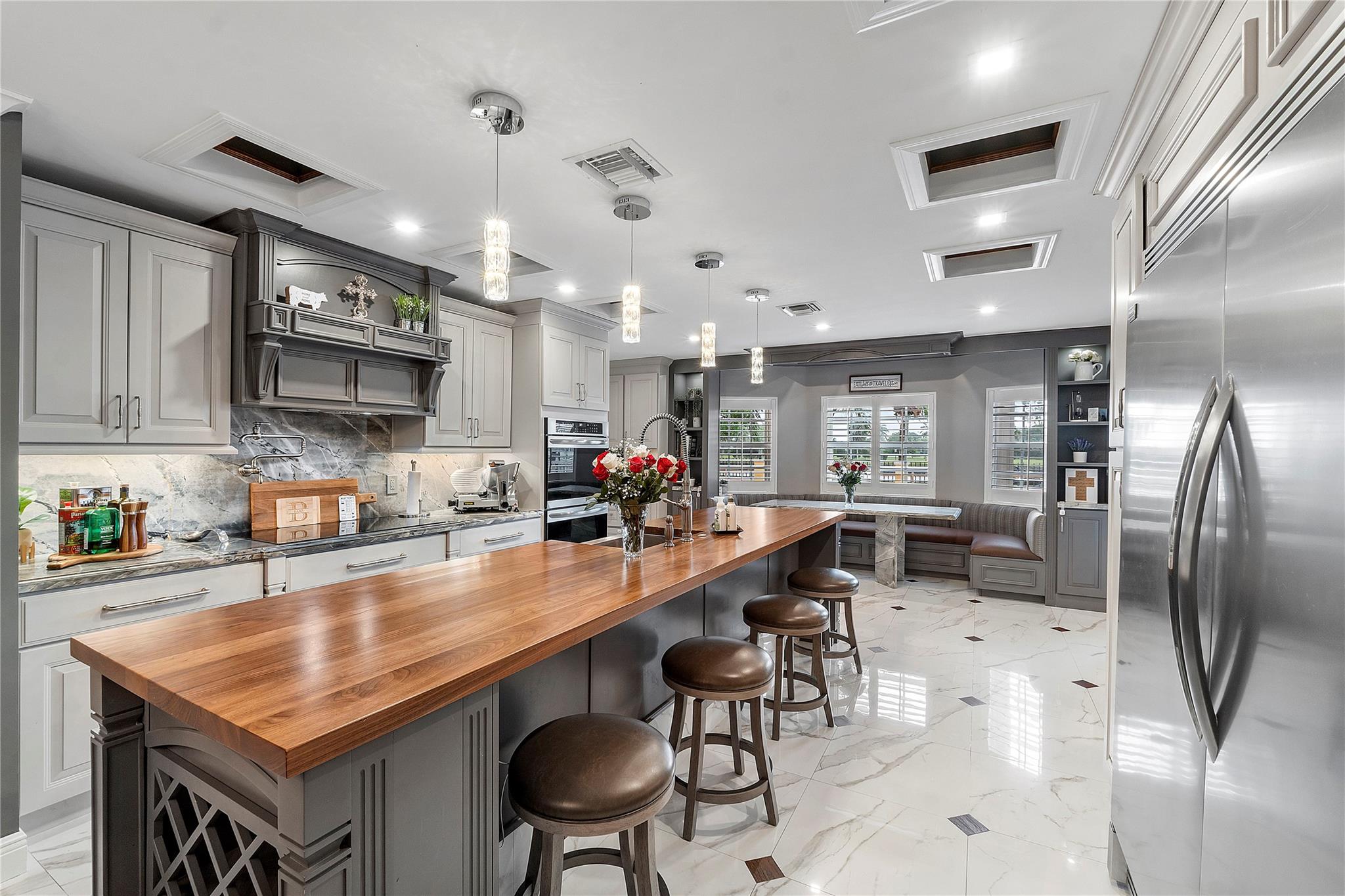 Discover this Waterfront 5-bedroom, 3-bath Estate home on a private cul-de-sac in West Glen! Completely updated with High end finishes, marble and wood floors throughout, gourmet kitchen equipped with top of the line appliances, Miele coffee maker, butcher block island, and wine room. Beautifully renovated bathrooms throughout! Separate living, dining and family rooms with plenty of space. Entertain guests at your very own replica of the Boca Resort Monkey Bar. The outdoor space boasts an enormous yard featuring a large Pool, detached deck for dining by your tranquil koi pond, extended covered patio w/ Pizza ovens and bar top. Situated on the C-14 canal, complete w/ private dock and jet skis. Minutes away from Sawgrass Mall, Amerant Bank Arena, and biking trails. Owner Financing Available!