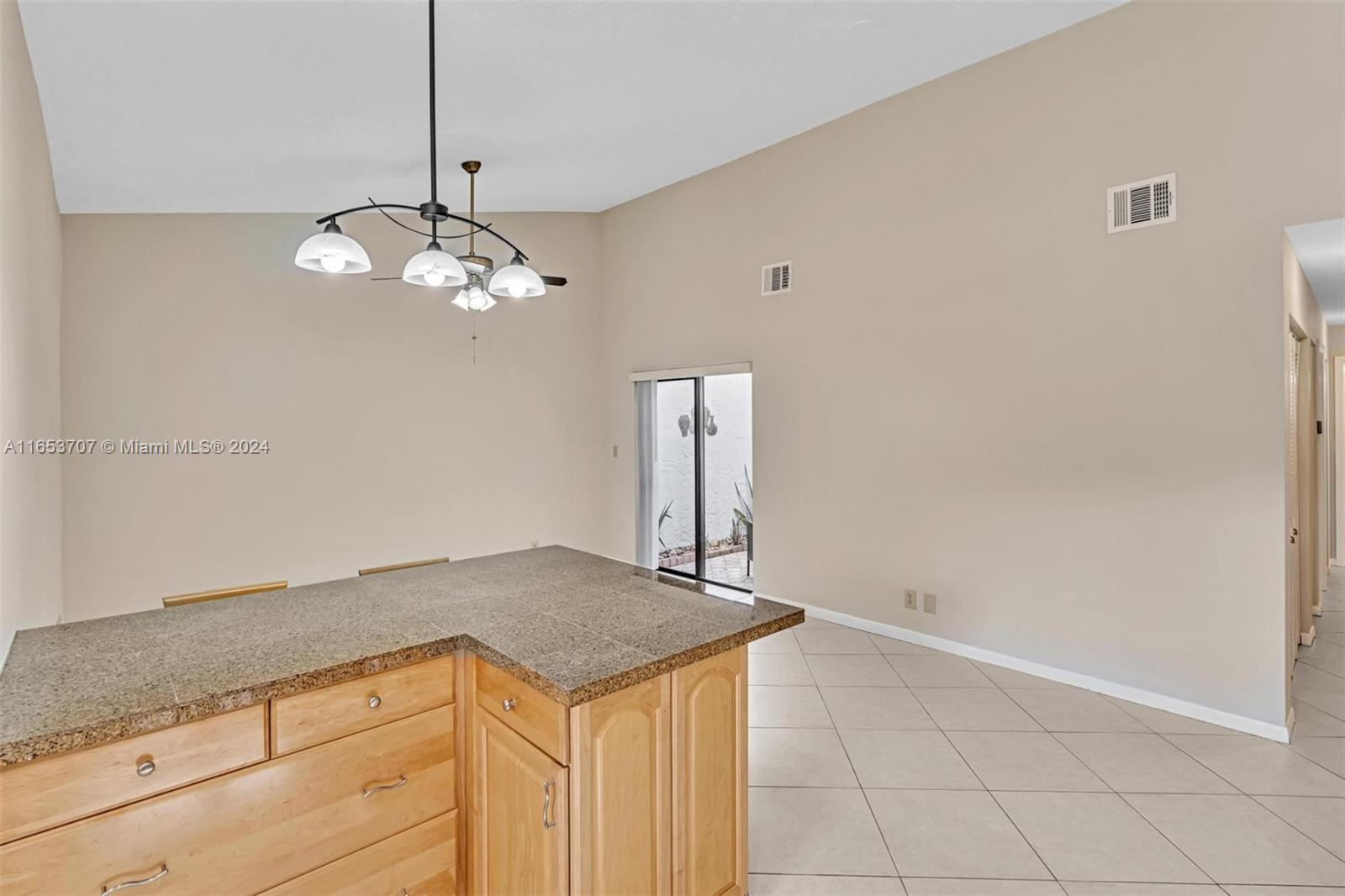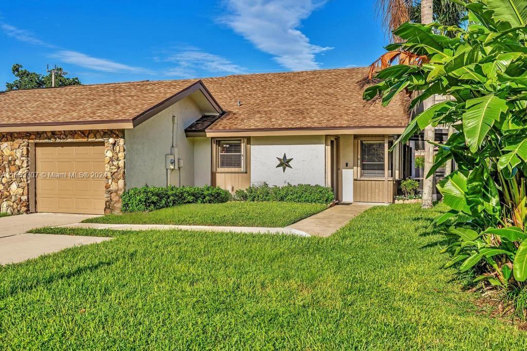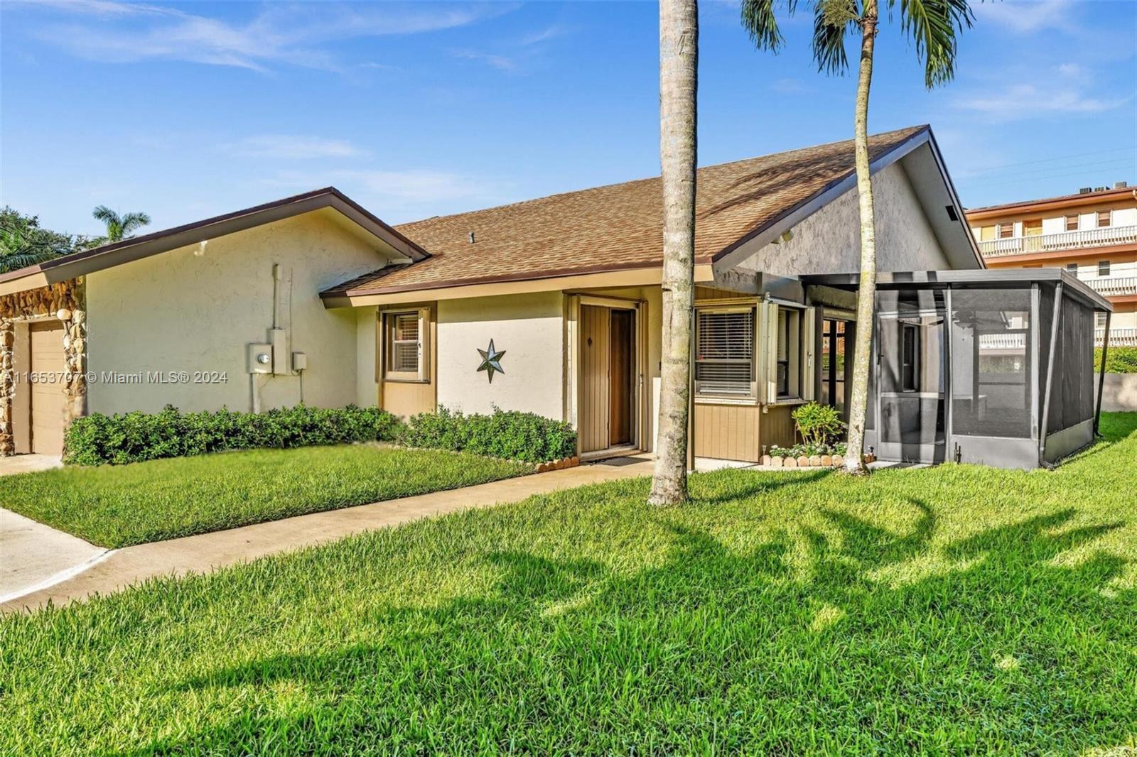 Charming 3/2 Villa in “Patios in the Park” located in the heart of Plantation. Move in ready. Fast close available. Comprehensive home warranty coverage until Nov 2025. Pets welcome and fences allowed. Lawn maintained by HOA. Freshly painted inside and out in neutral tones plus ceramic tile flooring- no carpet or popcorn here! Bright open concept with cathedral ceilings, spacious rooms, and custom barn doors. The kitchen features maple cabinets, granite countertops and stainless-steel appliances. The large, screened patio is a delightful and flexible outdoor space. One car garage and extended driveway provides parking for up to 4 vehicles. Plus, two attic storage spaces. Easy accordion style hurricane shutters and a generator plug-in circuit with small portable gas generator included!