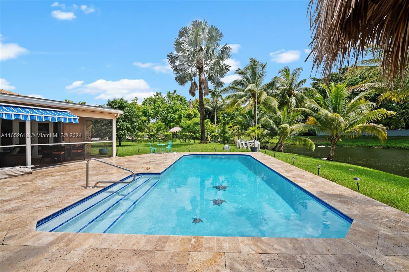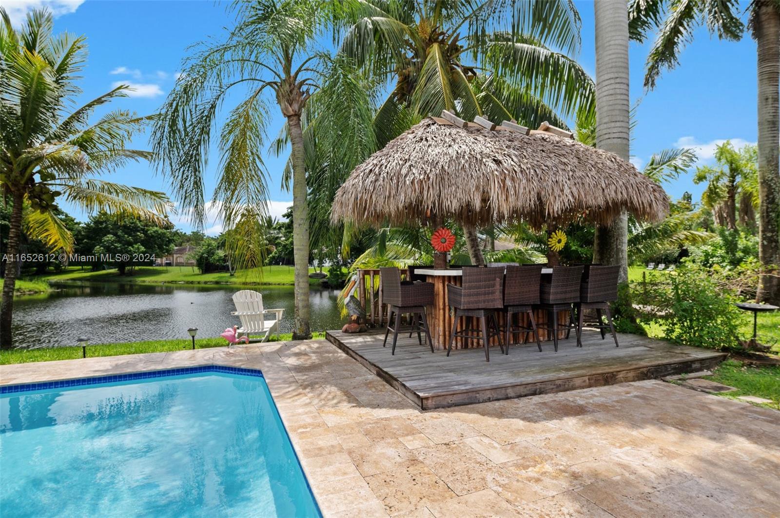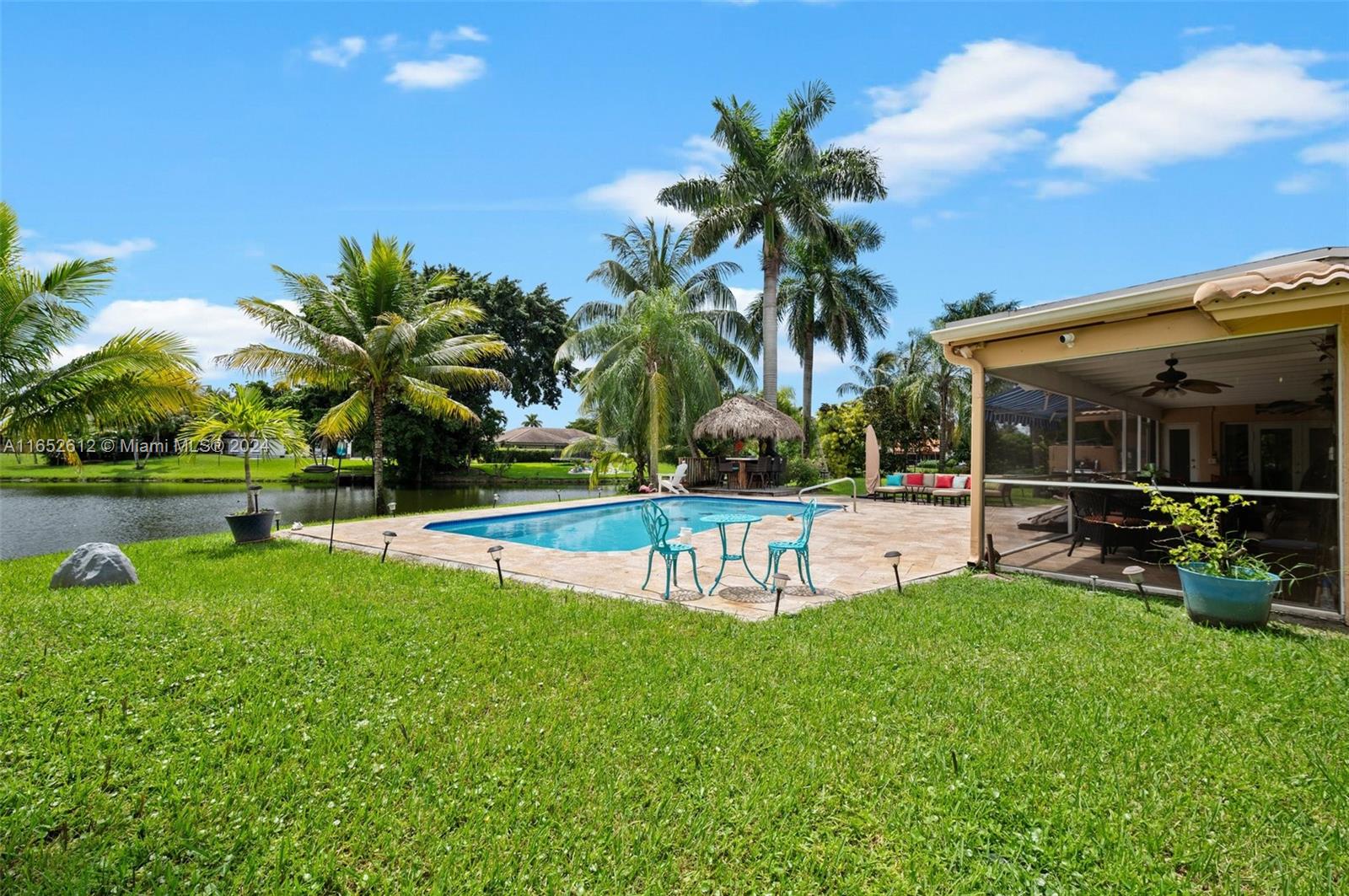 Beautiful home in a large corner lot with [a peaceful waterfront view. This Key-West-Inspired home is located at the heart of Coral Springs and has many upgrades that make it the family place you’re looking to enjoy. Open floor plan with 4 bedrooms and 2 baths, a resort-style pool, a renovated kitchen, two living rooms, beautiful bathrooms, blinds or curtains, screened patio, custom resort style backyard with Tiki Hut with splendid pool and tile roof and lots of room with extra space. An enclosed lanai and an extended new canopy for shade. . House has Impact Doors in the Front and Back along with Storm Windows! A Great PLUS for a home in South Florida! There are no HOA Fees - you truly don’t have to do a thing. MOVE IN READY!
