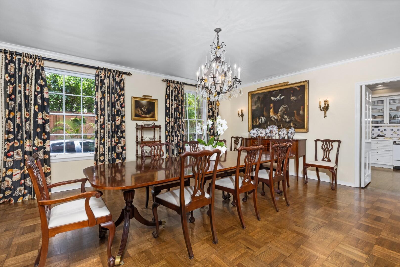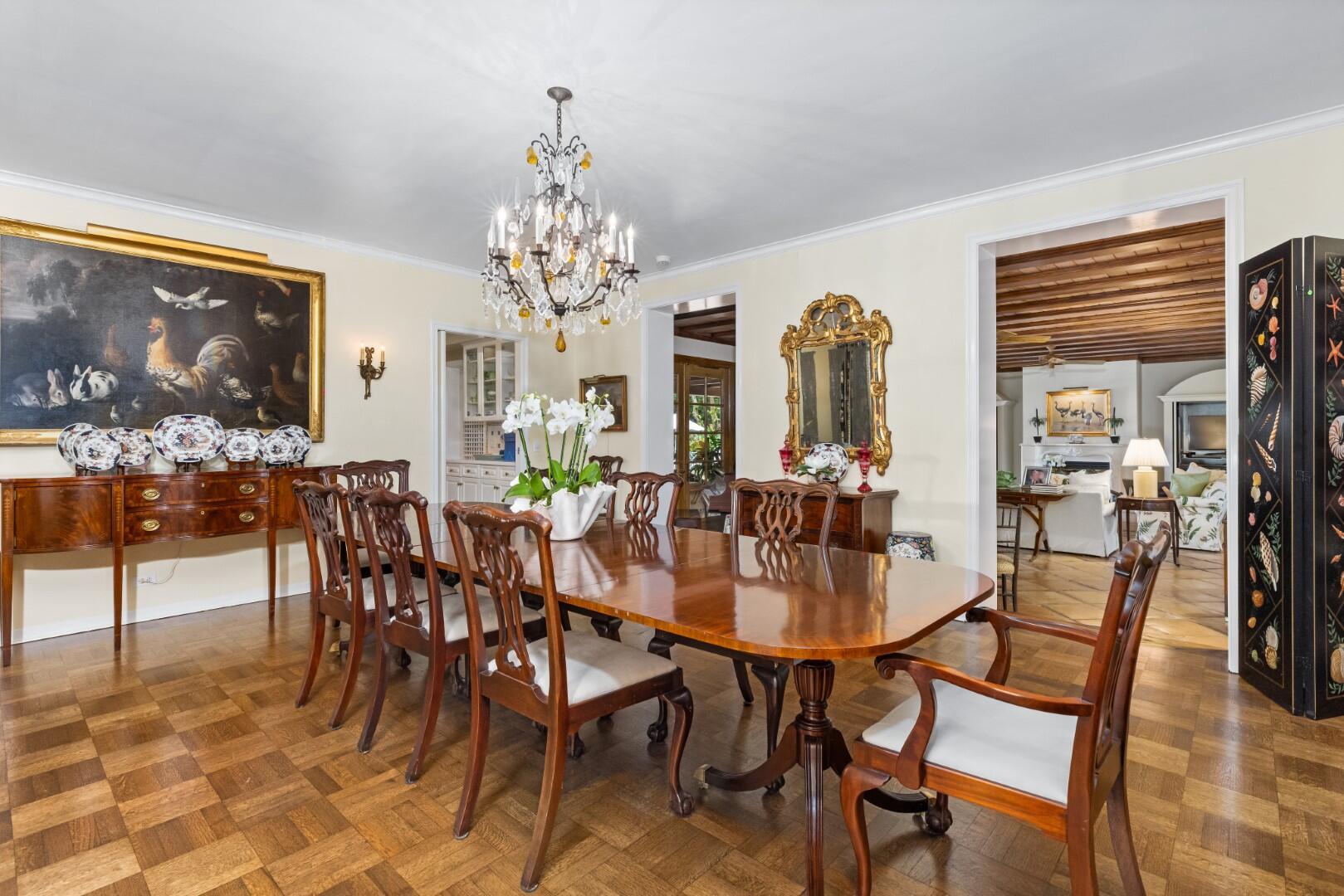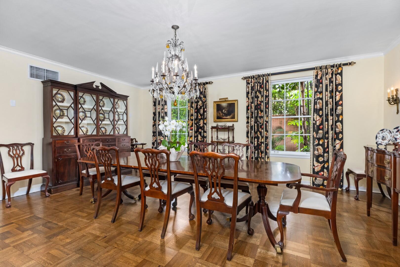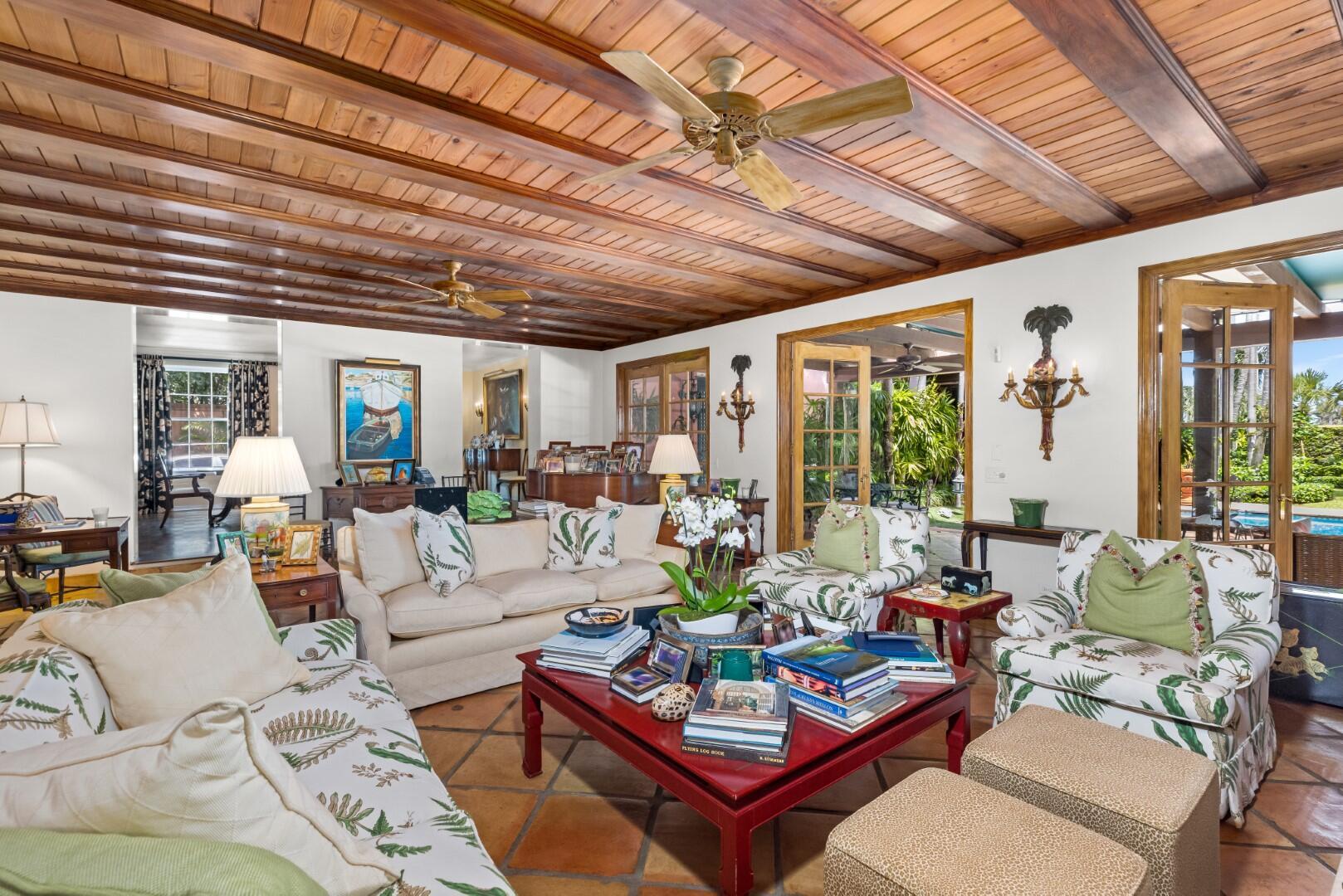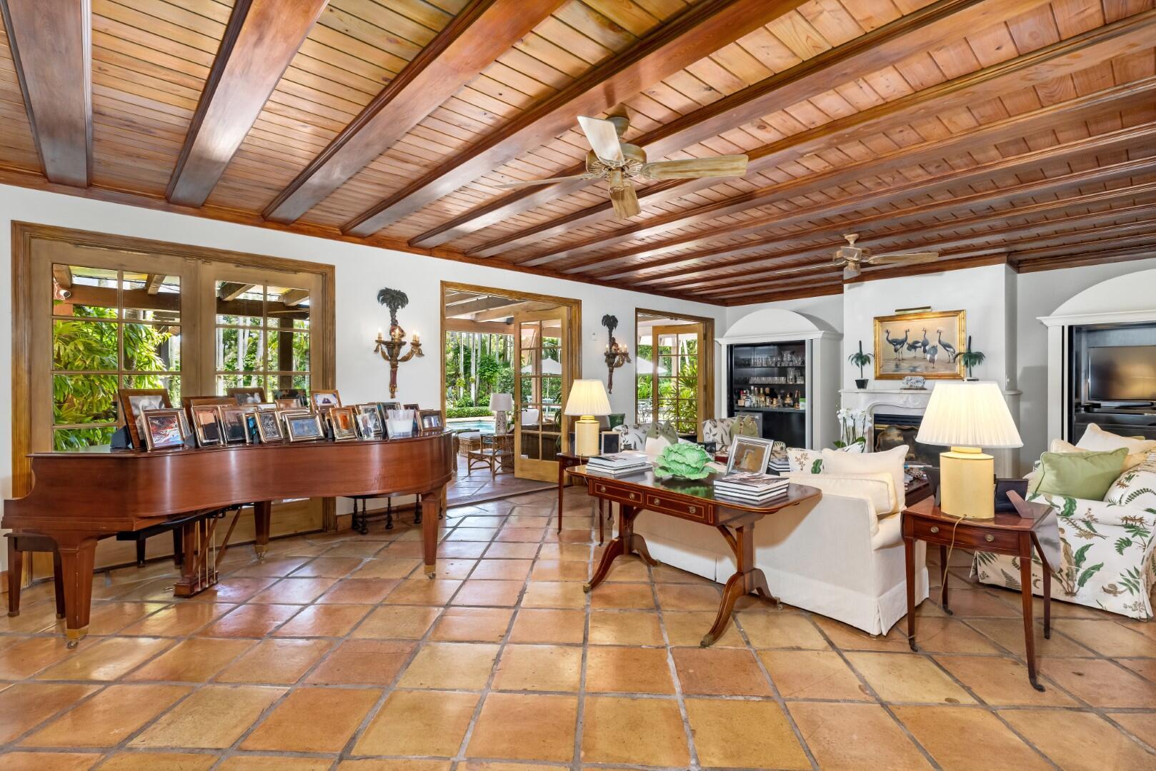 Rarely available Estate Section El Bravo Way 6BR/6.3BA home. Situated on one of three highly sought-after and significant ''El Streets'' in Palm Beach's Estate Section. Beautifully designed Monterey-Style Howard Major Landmarked home. Serene outdoor living with covered loggia, large swimming pool, and beautiful tropical landscaping. Oversized family room with fireplace, gorgeous beamed ceilings, and French doors that open to loggia. Additional highlights include cabana room with bar, formal dining room, library, and formal living room with fireplace. Expansive primary wing with separate sitting room with amazing views of the Everglades Country Club.