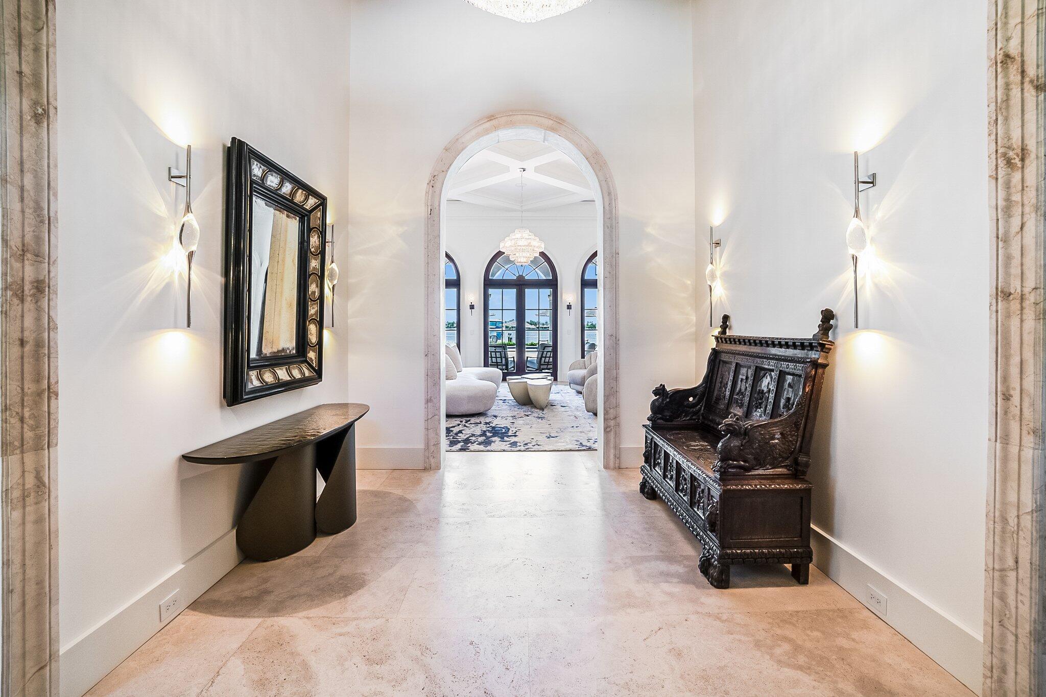 Introducing a remarkable waterfront masterpiece. This ultra-luxury estate spans over 33,000 sq ft of land & 13,000+ sq ft of air-conditioned living space across two stories. Featuring 7 bedrooms & 8.5 baths, the property showcases 140 ft of direct Intracoastal frontage, a private concrete dock, a 60,000-lb boat lift, & a covered jet ski lift. Enjoy an 8-car garage, designer furnishings, a commercial-grade gym, & private guest & staff quarters. With no HOA, this is the finest Intracoastal estate available, offering unmatched privacy, luxury, and convenience.