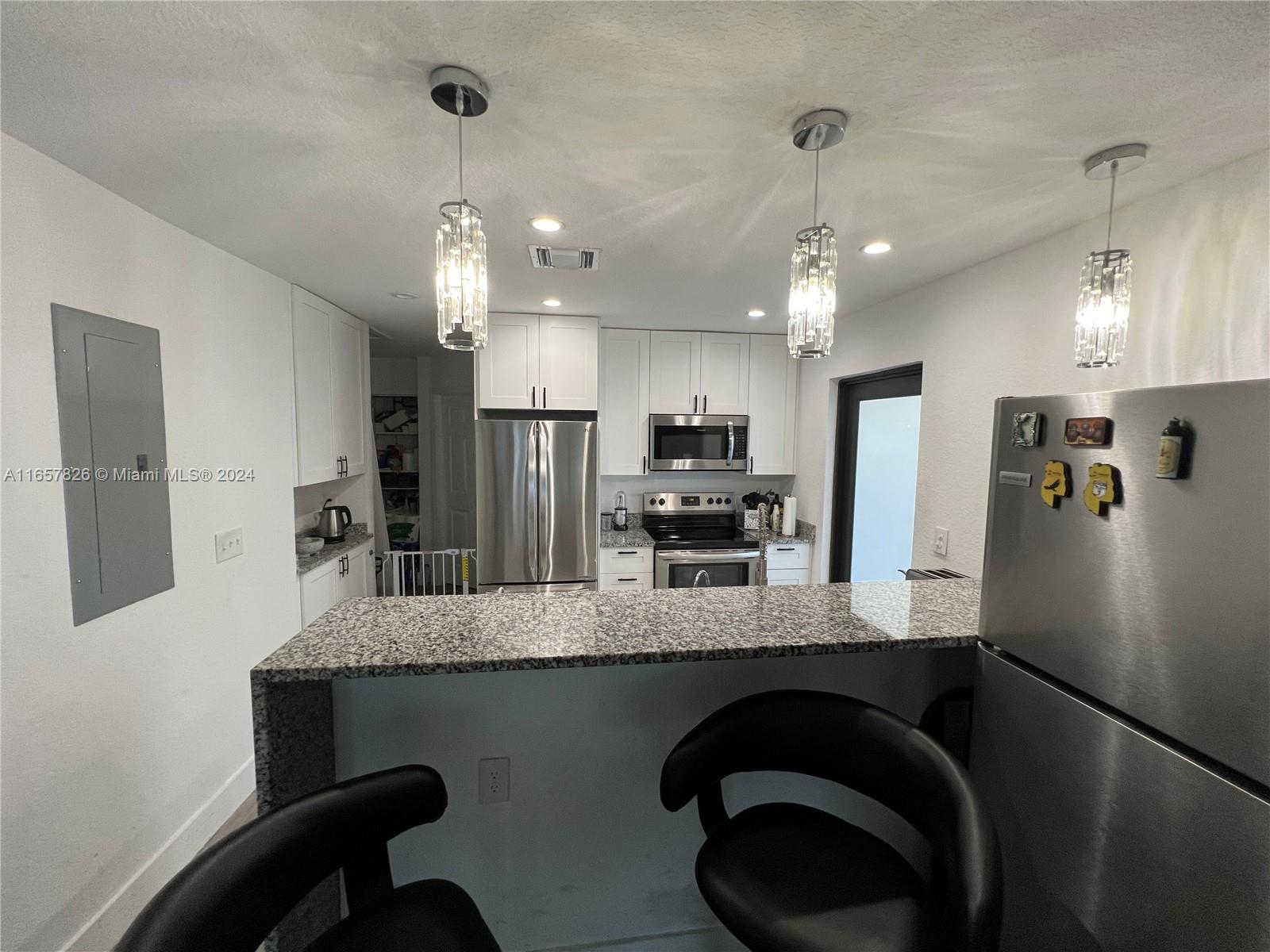 STUNNING THREE BEDROOMS, TWO BATHROOMS, TILE FLOORS, NEWLY REMOLDED BATHROOMS, NEW KITCHEN WITH GRANITE COUNTER TOPS AND STAINLESS STEEL APPLIANCES, WASHER AND DRYER, PRIVATE FENCING AND CUSTOM DRIVEWAY. NEW ROOF, NEW IMPACT WINDOWS, IMPACT DOORS