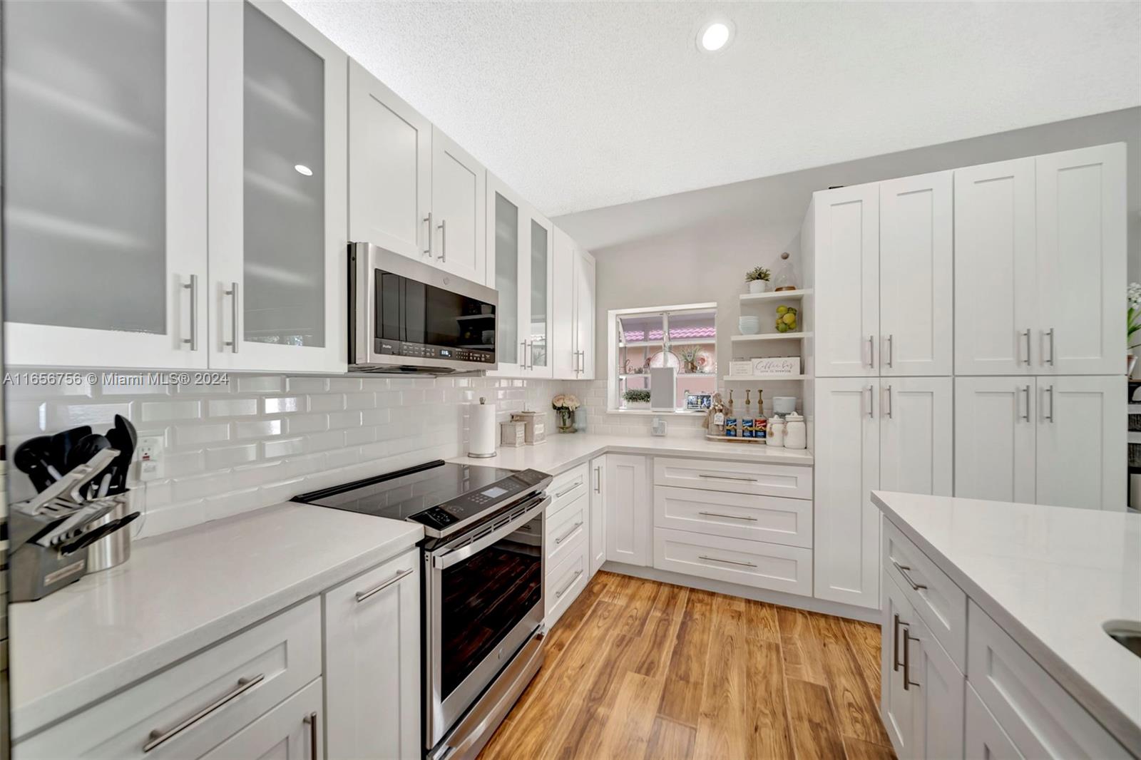 Discover the perfect blend of style and comfort at Osprey South at Savannah in Sunrise. This beautiful updated residence boasts 3 bedrooms, 2 bathrooms, spacious family room and 2 car garage. The contemporary design, enhances this home appeal. Offering volume high ceilings. elegant vinyl plank flooring throughout. Open concept layout. Custom kitchen featuring white shaker cabinets, SS appliances and sleek quartz countertops elevate your culinary experience. The master suite boasts a generously size bedroom with walking-closet and large en-suite remodeled bathroom with dual sinks and shower. Additional features include accordion shutters, 240 volt socket in the garage for EV charging and power inlet box for generator. Relax and entertain on the screened patio. Make it yours today!!