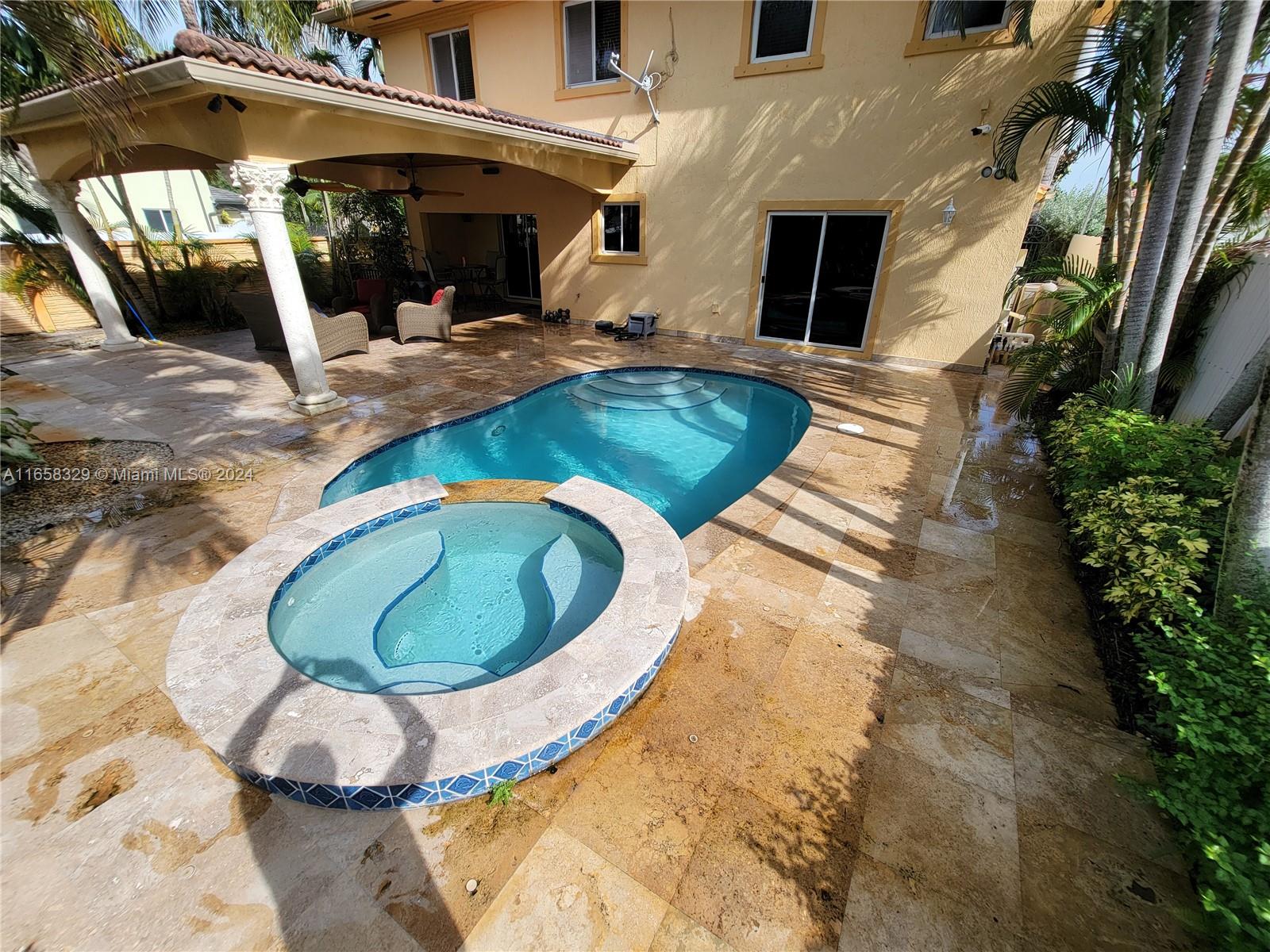 Charming 4 bed, 2.5 bath corner home that offers comfort and luxury. This inviting residence boasts a spacious layout with a thoughtful design ideal for both entertaining and everyday living. Step outside to your own private oasis: complete with a sparkling pool and relaxing jacuzzi, surrounded by a decorative concrete fence that ensures both privacy and style. Whether you’re hosting summer barbecues or simply unwinding after a long day, this backyard retreat is sure to become a favorite spot. 2 car garage with ample storage and parking space. Enjoy the freedom of a property with no HOA restrictions, giving you flexibility and control over your living space. Located just minutes away from schools,shopping centers,dining,banks, and major highways, making daily errands and commutes a breeze