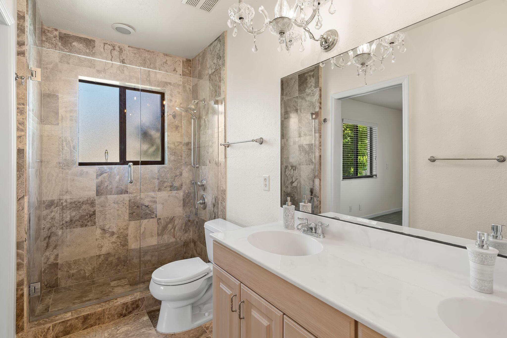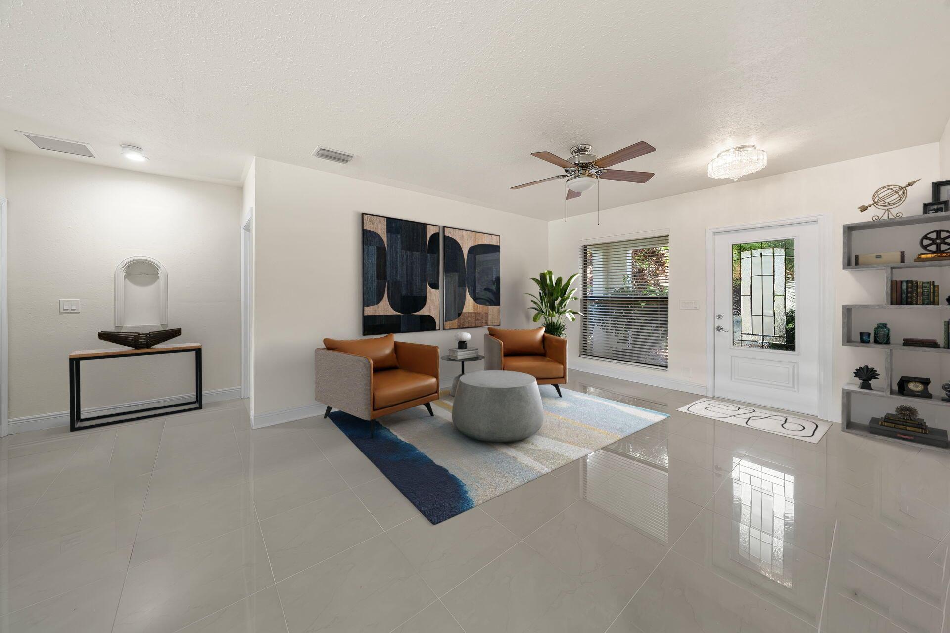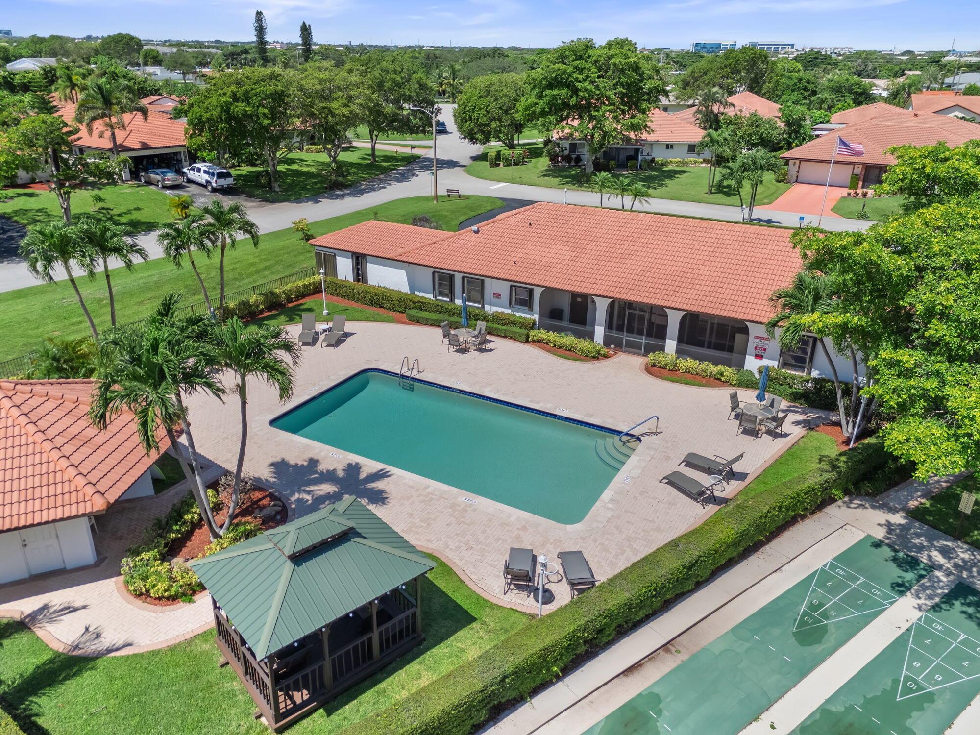 Beautiful 2 bed, 2.5 bath home in East Boca Raton's Knob Hill 55+ community. Built in 2006, this home boasts hurricane impact windows, updated tile floors, and a modern open-concept kitchen with slate stainless steel appliances and granite countertops. Spacious bedrooms with en-suite baths, including a renovated primary bathroom and large walk-in closet. 2020 AC. Enjoy the front patio, 2-car garage, and low-maintenance lifestyle with lawn care and basic cable included. Community features a clubhouse, w/ heated salt water pool, and shuffle board. Located just 1 mile from the beach and close to Mizner Park, FAU, and downtown Boca. Don't miss this opportunity to own a home in one of Boca Raton's best active adult communities. Quick walk to house of worship