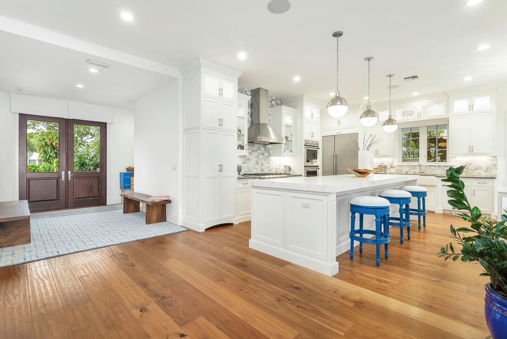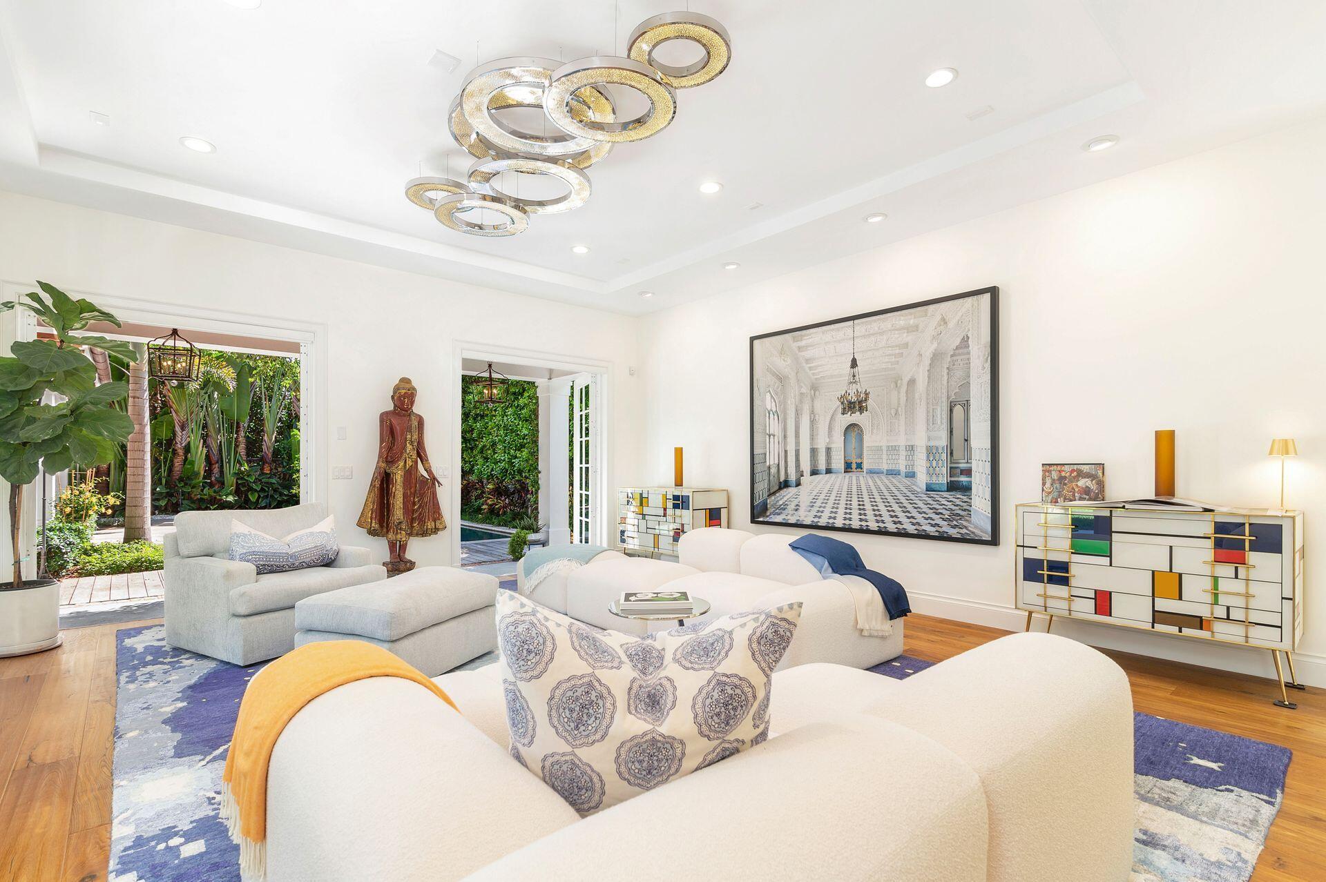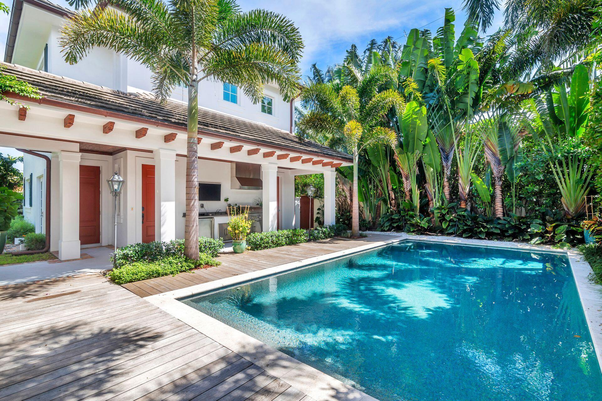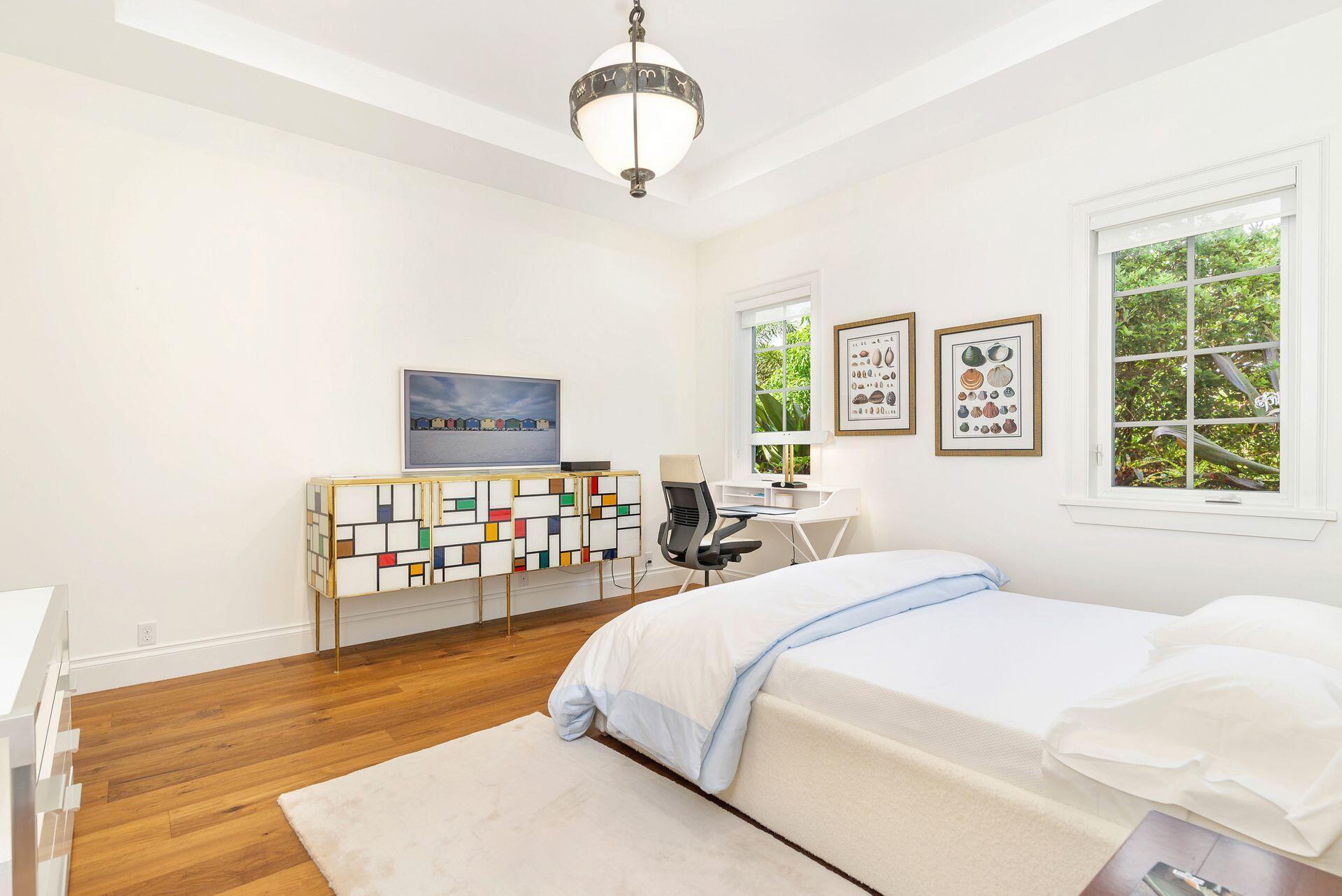 Nestled in West Palm Beach's prestigious South End, ''So So'' neighborhood, located one block from the Intracoastal. this home features 4 bedrooms, 4 baths, 2 half baths in the main house plus a 1BR/1BTH + den guest cottage. This well appointed compound merges modern sophistication in construction with architecturally centered serenity. The thoughtful design originates at the entry and extends through the 'spine' of the home to the gardens, uniting bright and airy interiors with 10+ foot ceilings to lush and private grounds, impeccably landscaped with mature tropical plants providing the utmost privacy. The first floor centralizes the living space around the modern chef's kitchen with gas cooktop, high-end appliances, centered island, abundant cabinetry and a walk-in butler's pantry.
