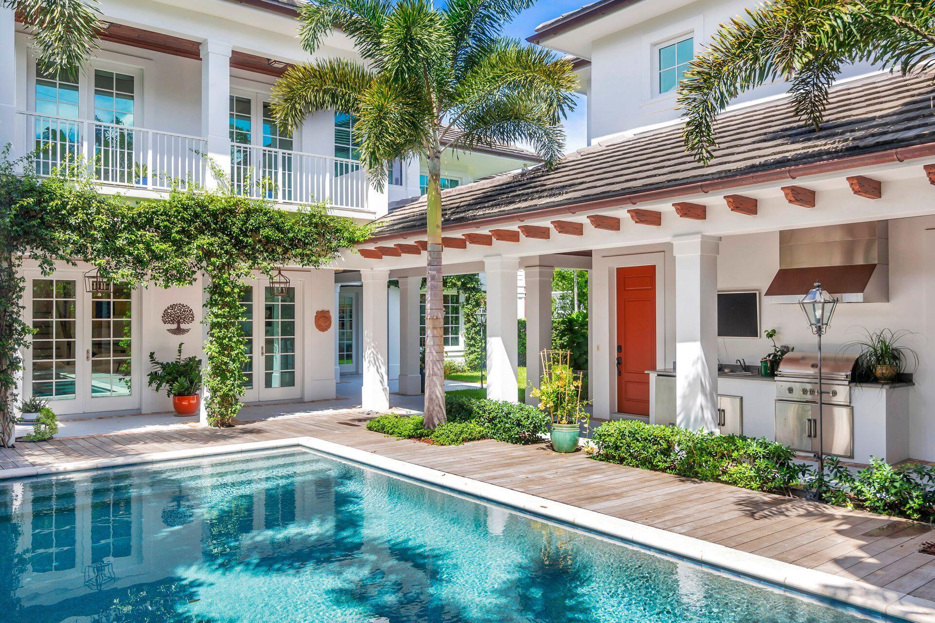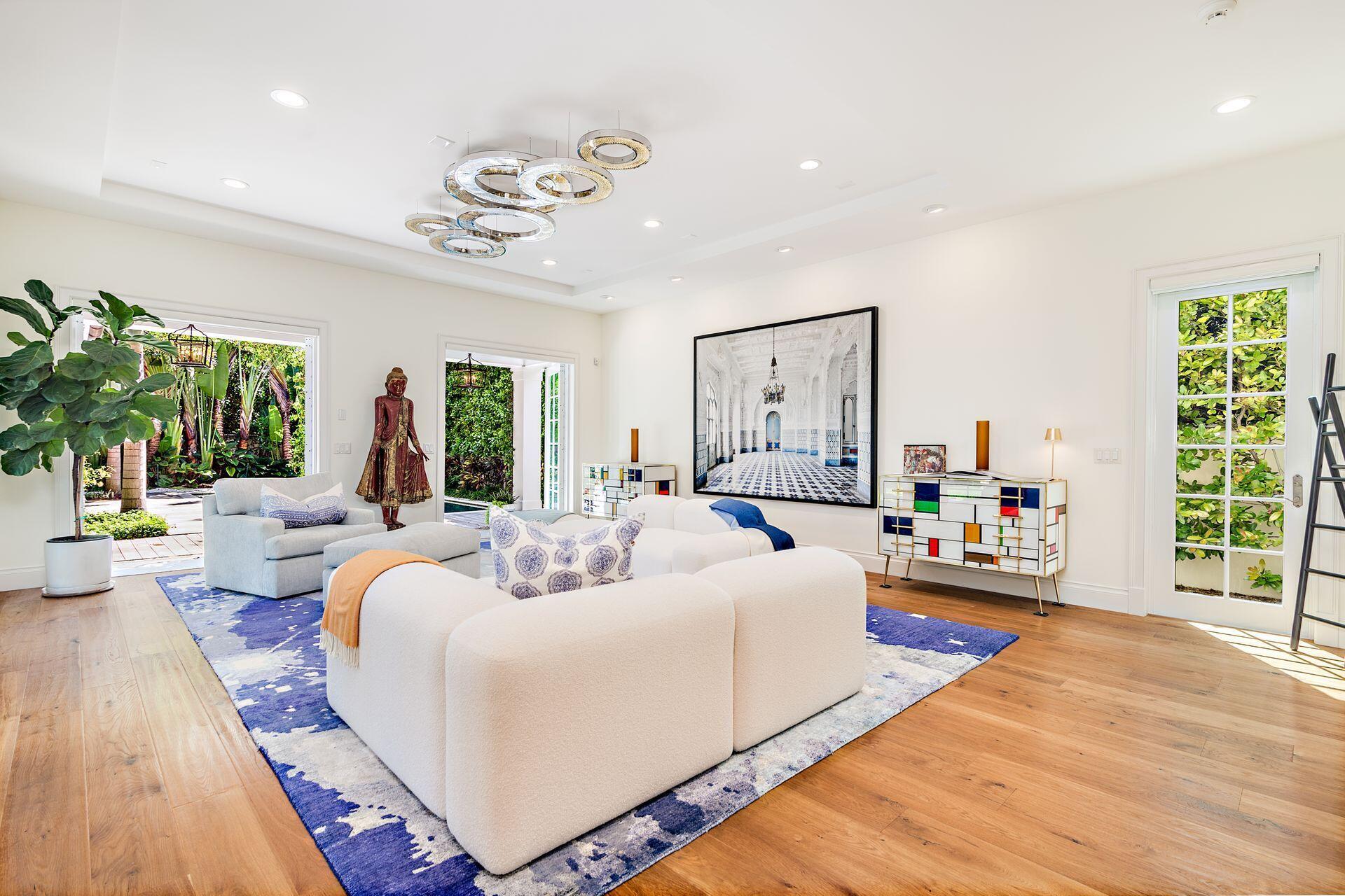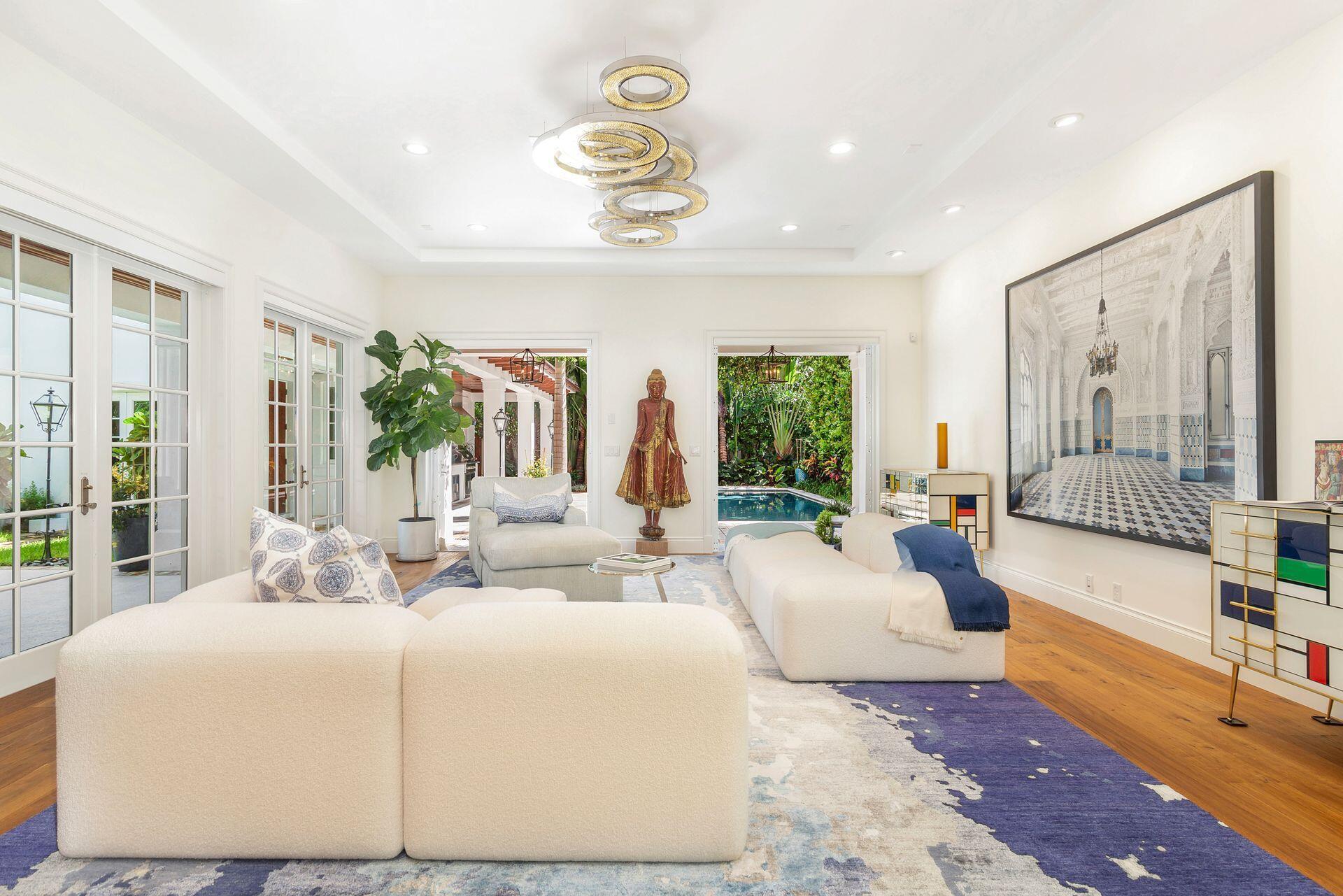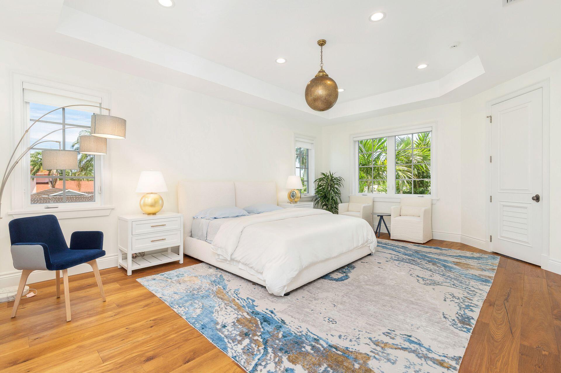Nestled in West Palm Beach's prestigious South End, ''So So'' neighborhood, located one block from the Intracoastal. this home features 4 bedrooms, 4 baths, 2 half baths in the main house plus a 1BR/1BTH + den guest cottage. This well appointed compound merges modern sophistication in construction with architecturally centered serenity. The thoughtful design originates at the entry and extends through the 'spine' of the home to the gardens, uniting bright and airy interiors with 10+ foot ceilings to lush and private grounds, impeccably landscaped with mature tropical plants providing the utmost privacy. The first floor centralizes the living space around the modern chef's kitchen with gas cooktop, high-end appliances, centered island, abundant cabinetry and a walk-in butler's pantry.