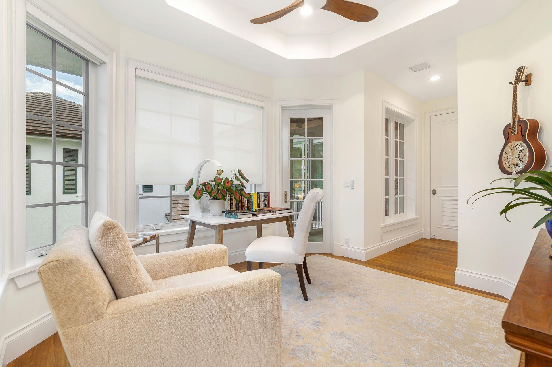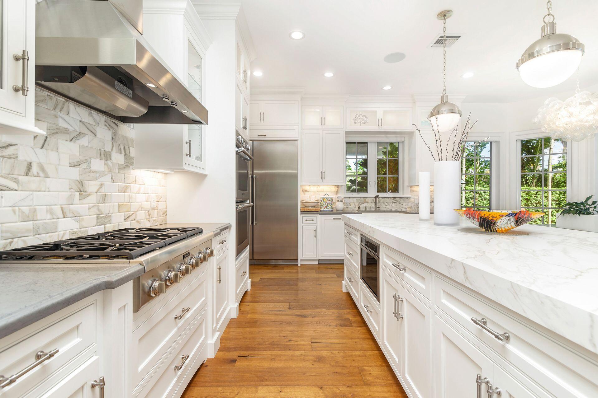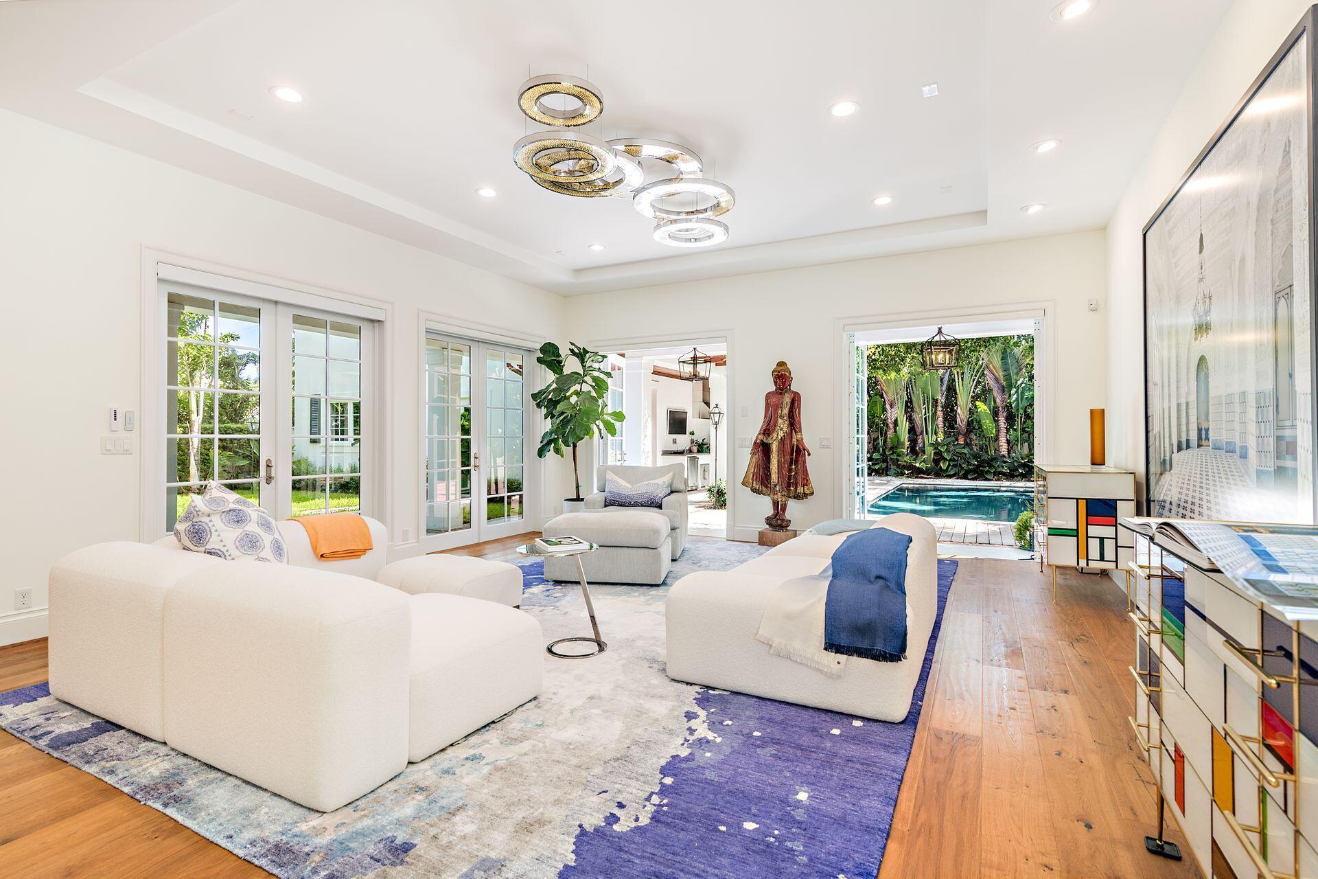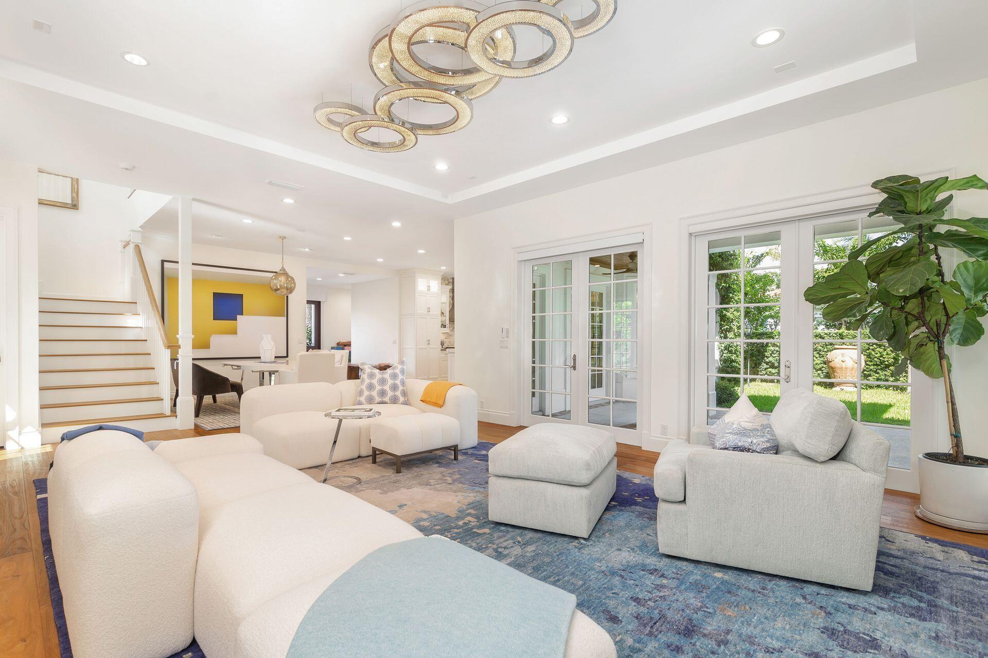 Nestled in West Palm Beach's prestigious South End, ''So So'' neighborhood, located one block from the Intracoastal. this home features 4 bedrooms, 4 baths, 2 half baths in the main house plus a 1BR/1BTH + den guest cottage. This well appointed compound merges modern sophistication in construction with architecturally centered serenity. The thoughtful design originates at the entry and extends through the 'spine' of the home to the gardens, uniting bright and airy interiors with 10+ foot ceilings to lush and private grounds, impeccably landscaped with mature tropical plants providing the utmost privacy. The first floor centralizes the living space around the modern chef's kitchen with gas cooktop, high-end appliances, centered island, abundant cabinetry and a walk-in butler's pantry.