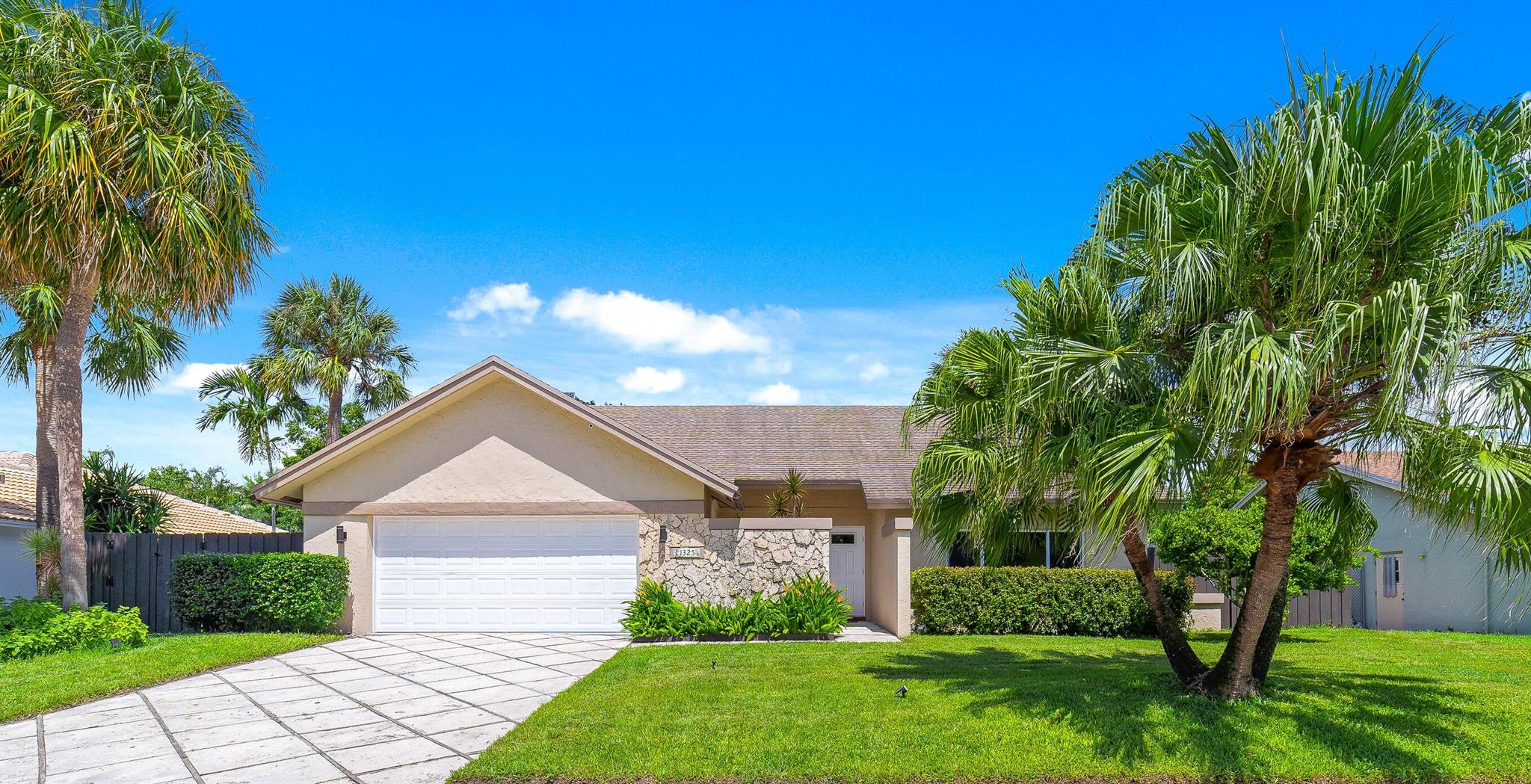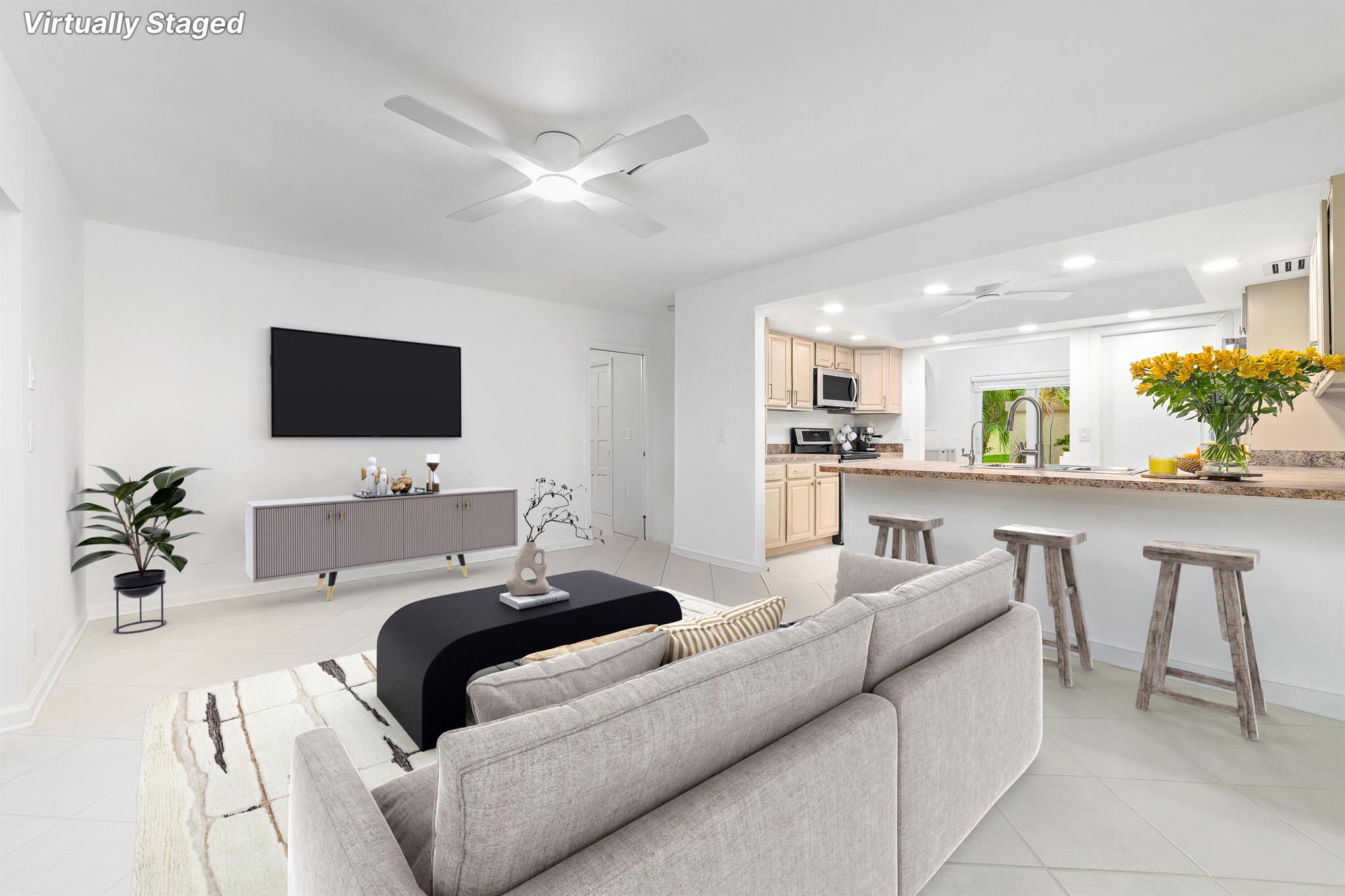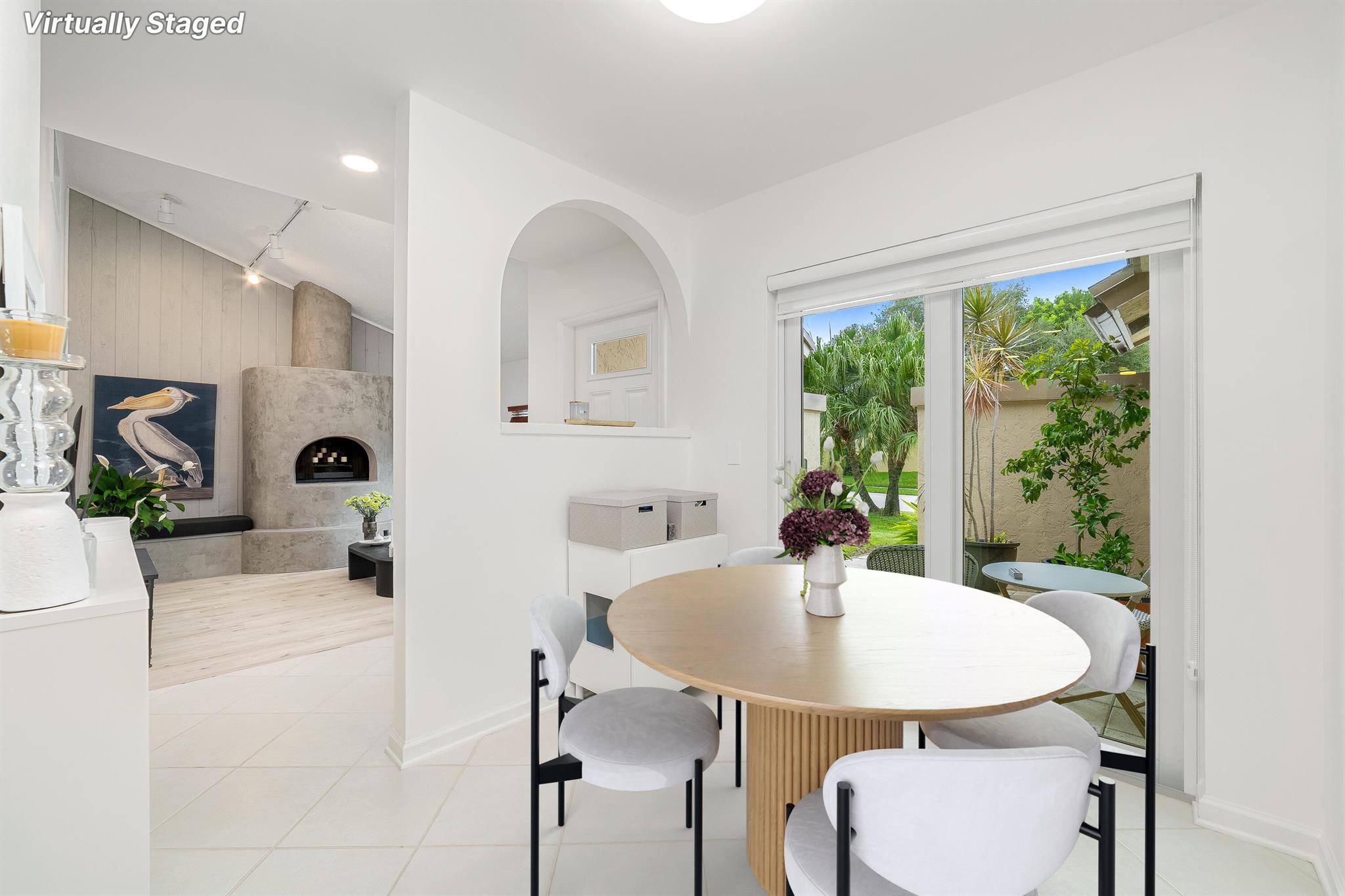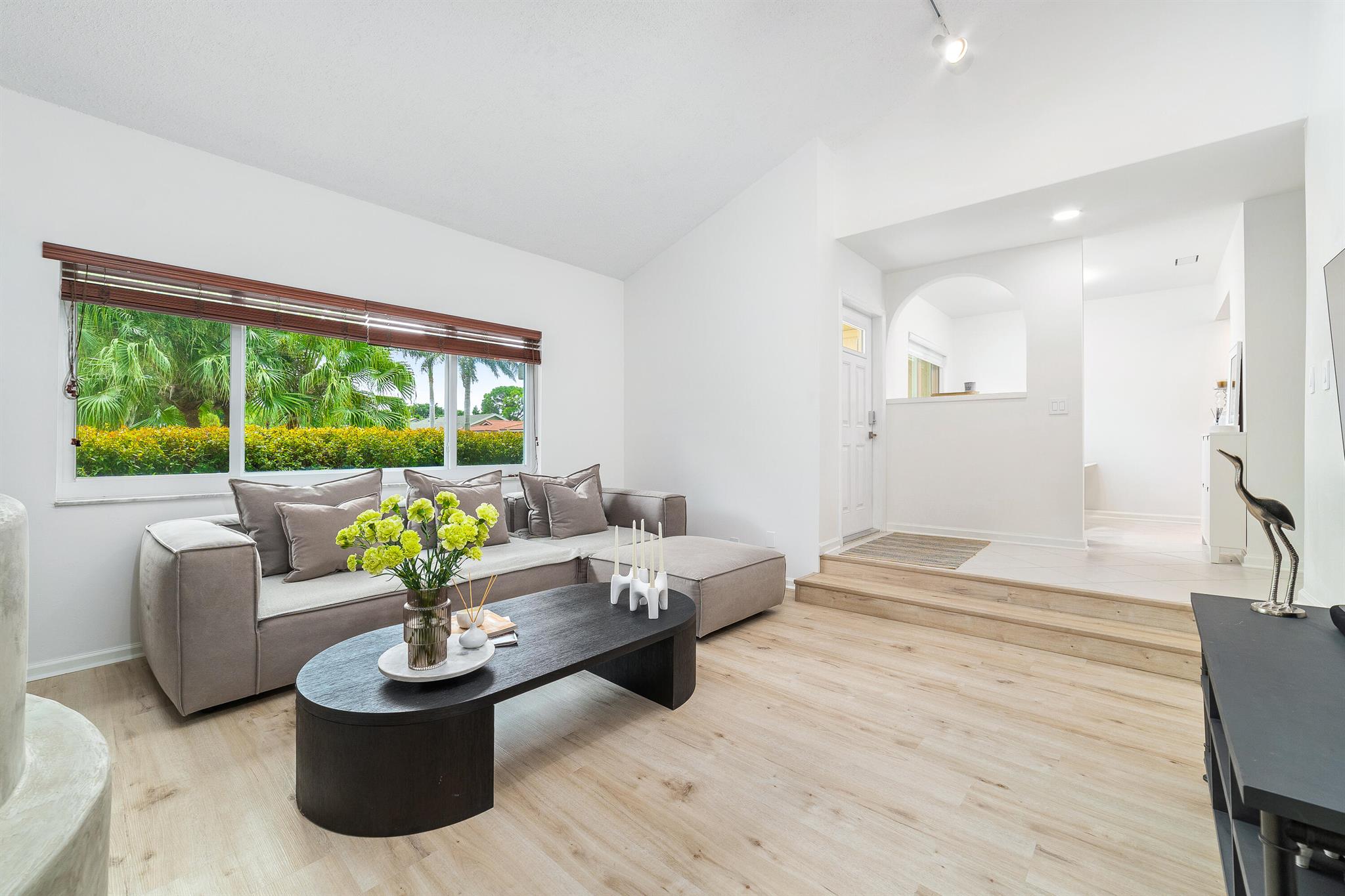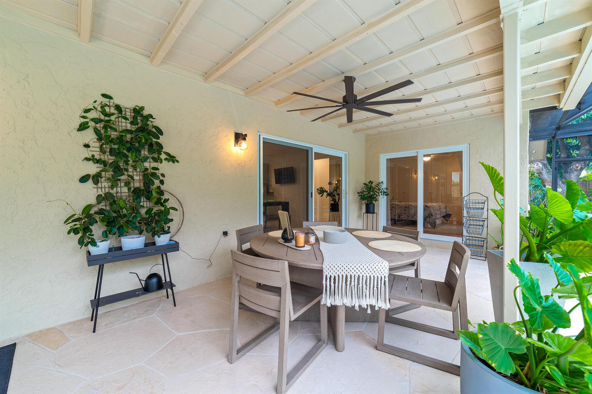 Freedom from an HOA exists! East Boca home located in an A-rated school district with stylish interior for today's aesthetic. This 3 bedroom, 2 bathroom features modern 2024 updates: smooth ceilings, updated bathrooms, custom closet, sleek A/C vents, new ceiling fans/lighting, and smart home technology. Micro-cement covered wood-burning fireplace is the centerpiece of the vaulted living room with new flooring. Your primary bedroom comes with a multi-purpose loft with a skylight. The heart of the home, your recently updated kitchen, overlooks the screened pool and grounds with large bedrooms on either side of it. Outside, you'll enjoy no rear neighbors and your own fruit trees in the fully fenced space. Close to George Snow Park and Whole Foods and restaurants.