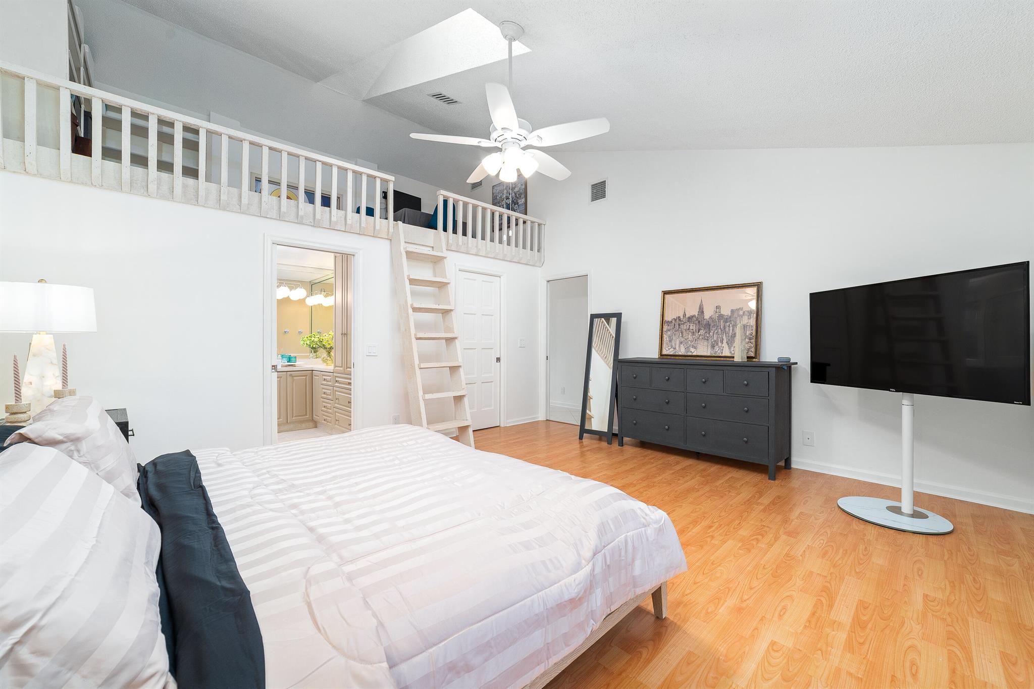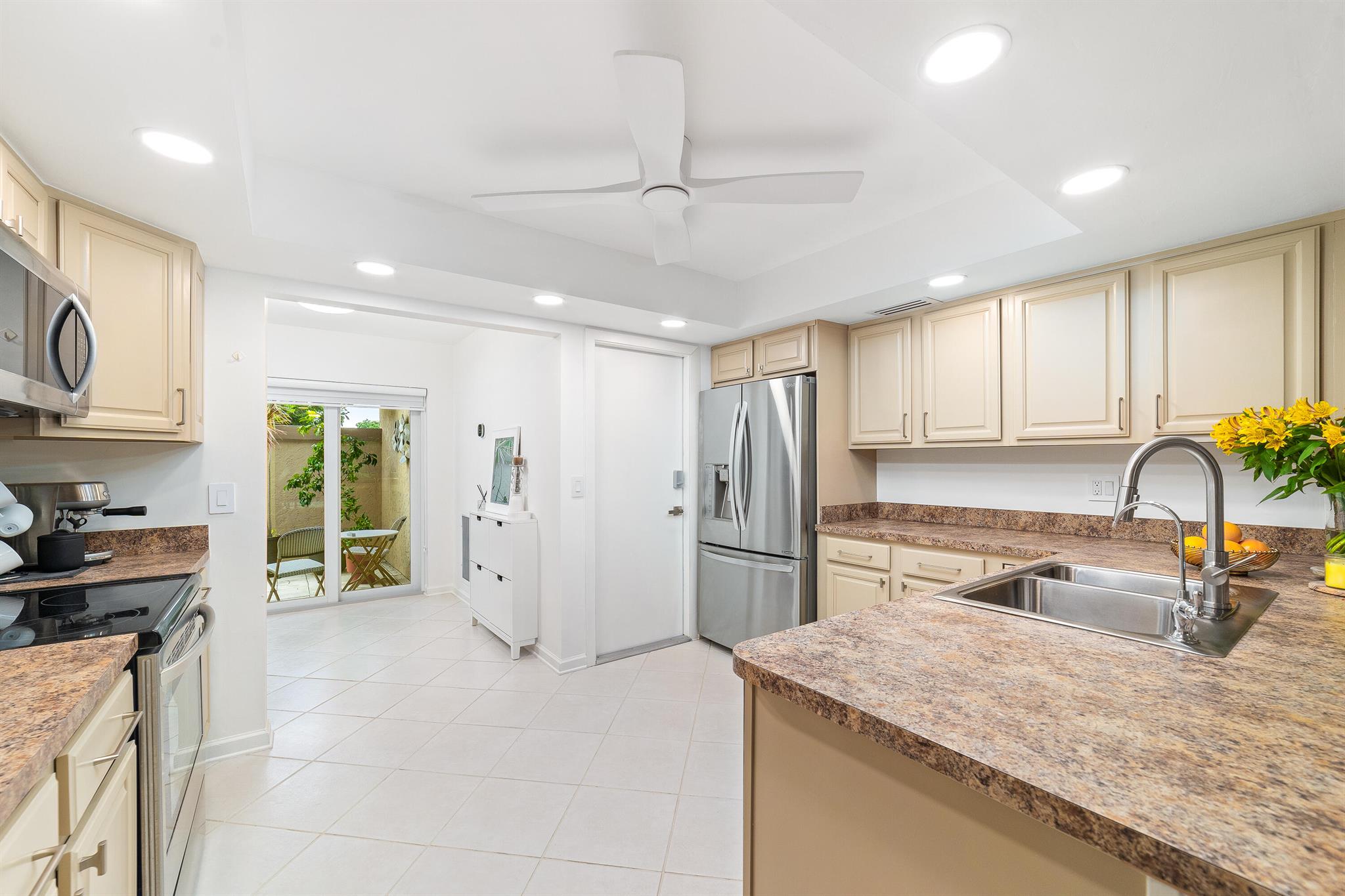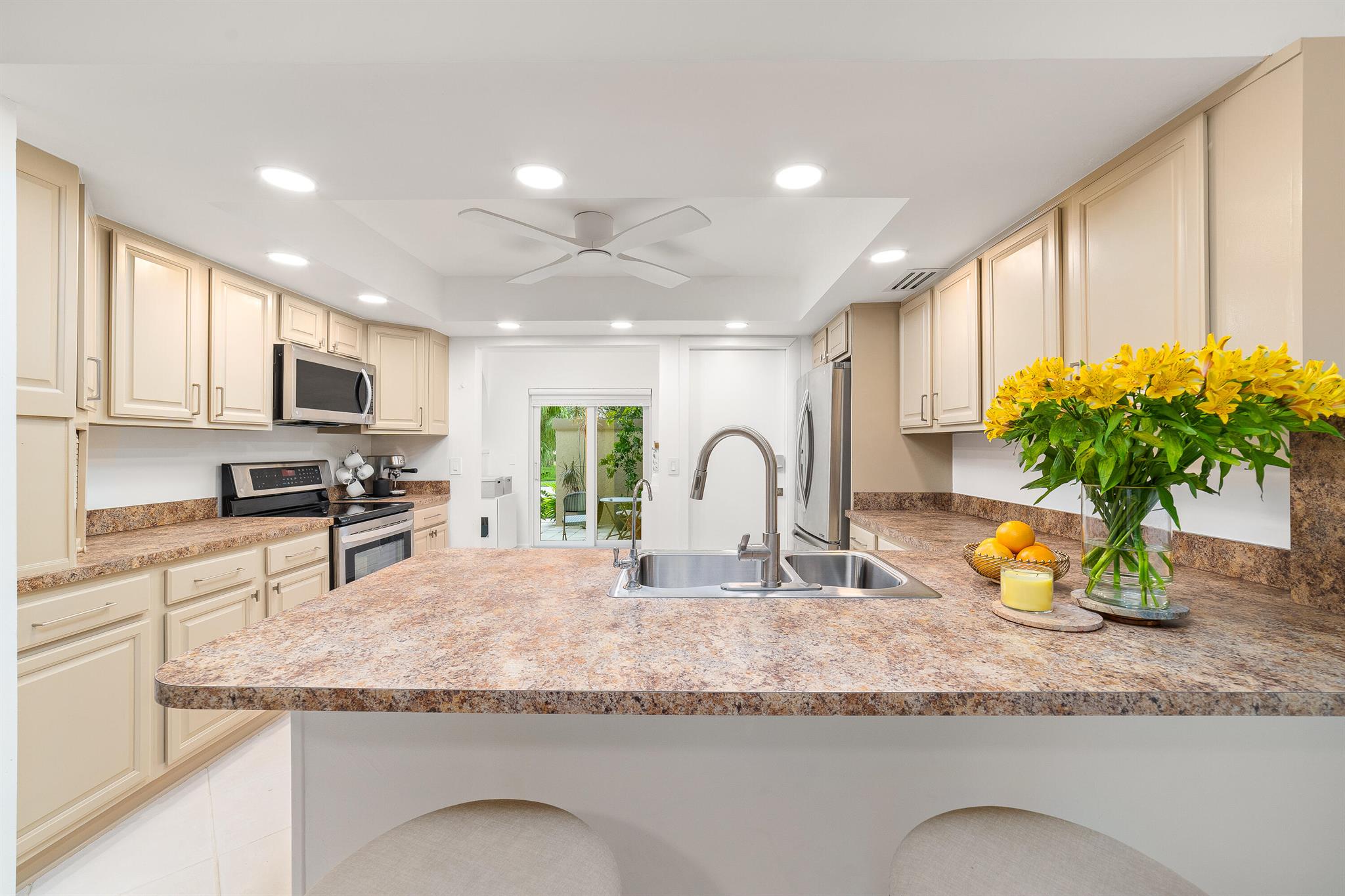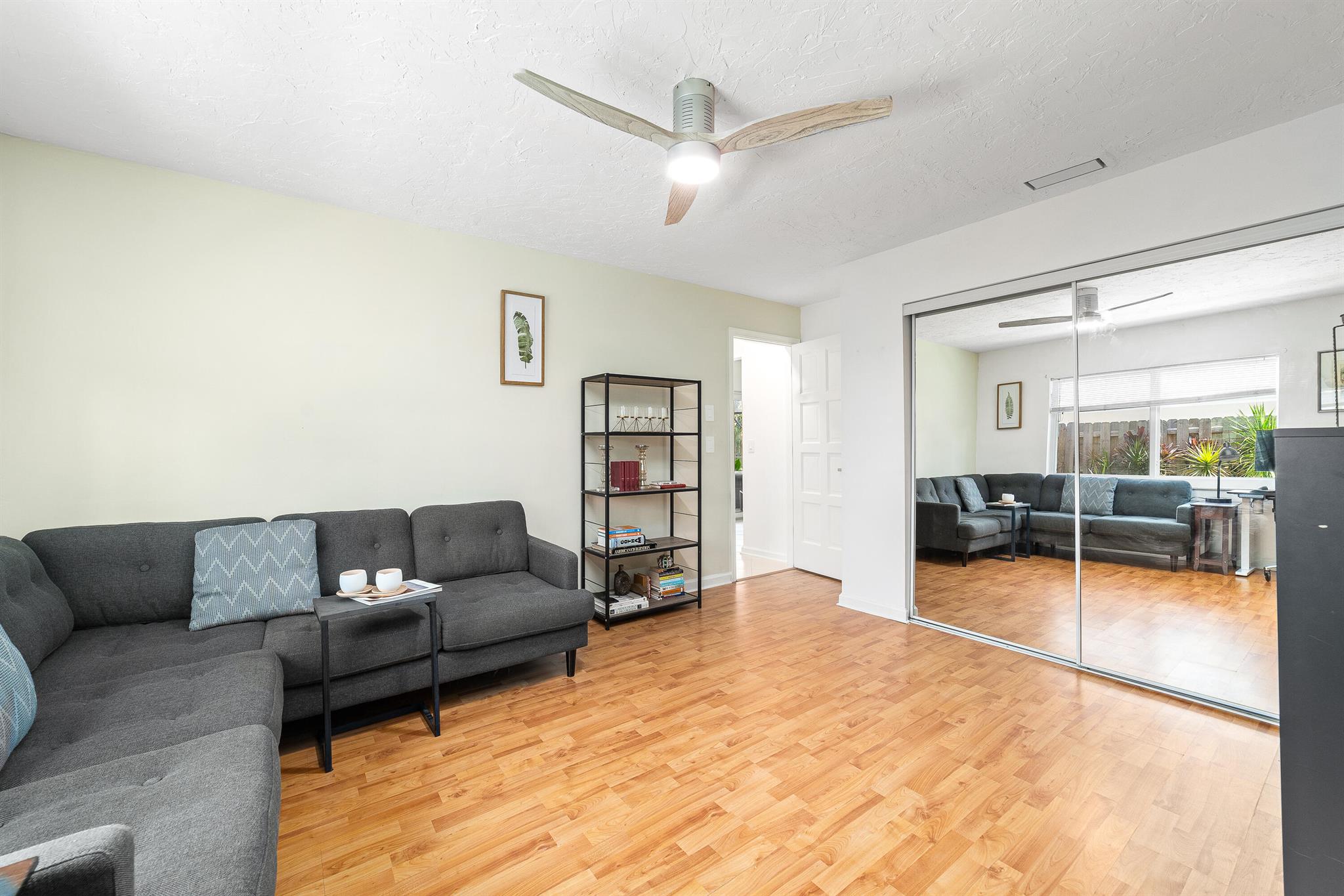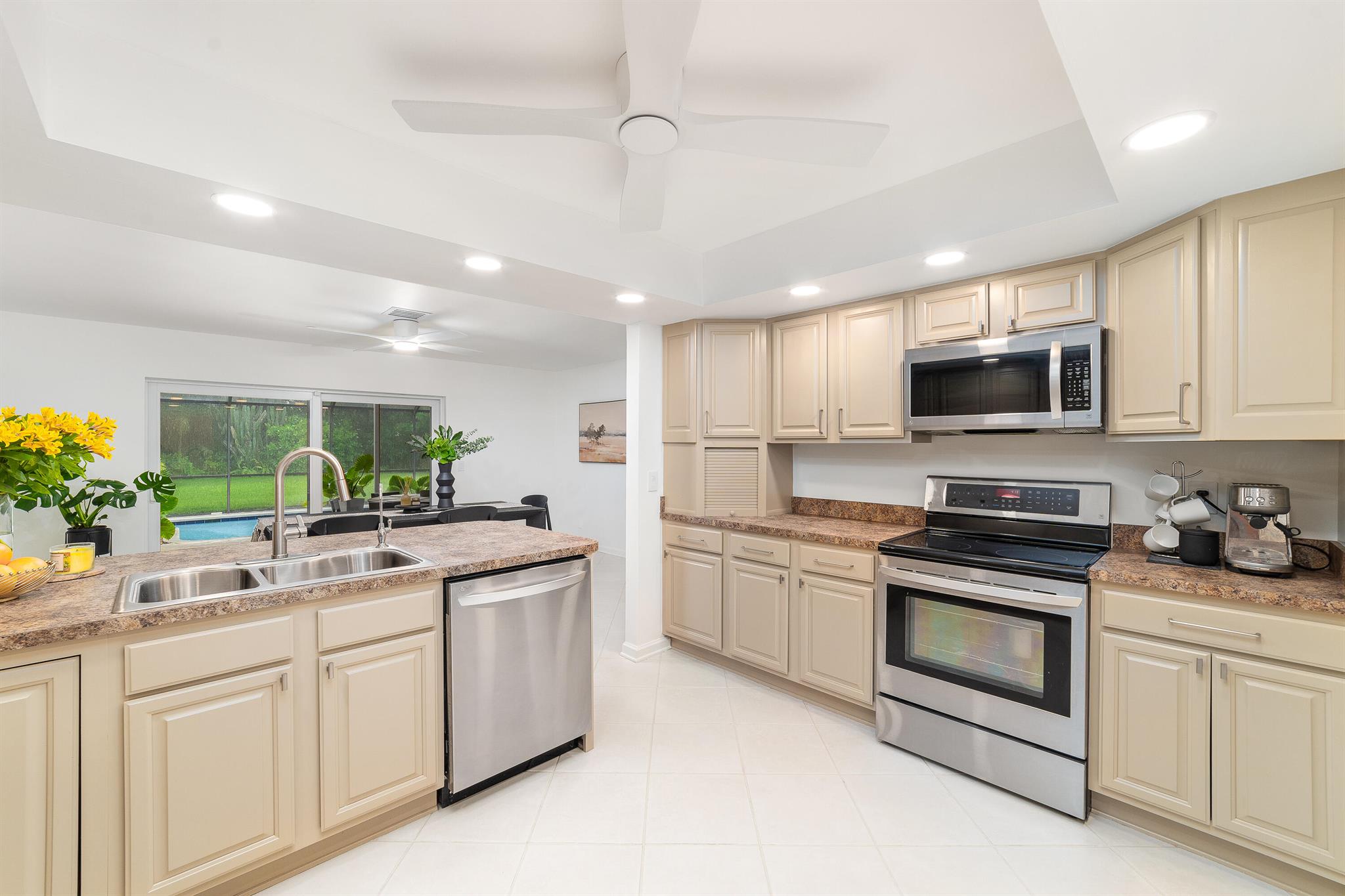 Freedom from an HOA exists! East Boca home located in an A-rated school district with stylish interior for today's aesthetic. This 3 bedroom, 2 bathroom features modern 2024 updates: smooth ceilings, updated bathrooms, custom closet, sleek A/C vents, new ceiling fans/lighting, and smart home technology. Micro-cement covered wood-burning fireplace is the centerpiece of the vaulted living room with new flooring. Your primary bedroom comes with a multi-purpose loft with a skylight. The heart of the home, your recently updated kitchen, overlooks the screened pool and grounds with large bedrooms on either side of it. Outside, you'll enjoy no rear neighbors and your own fruit trees in the fully fenced space. Close to George Snow Park and Whole Foods and restaurants.
