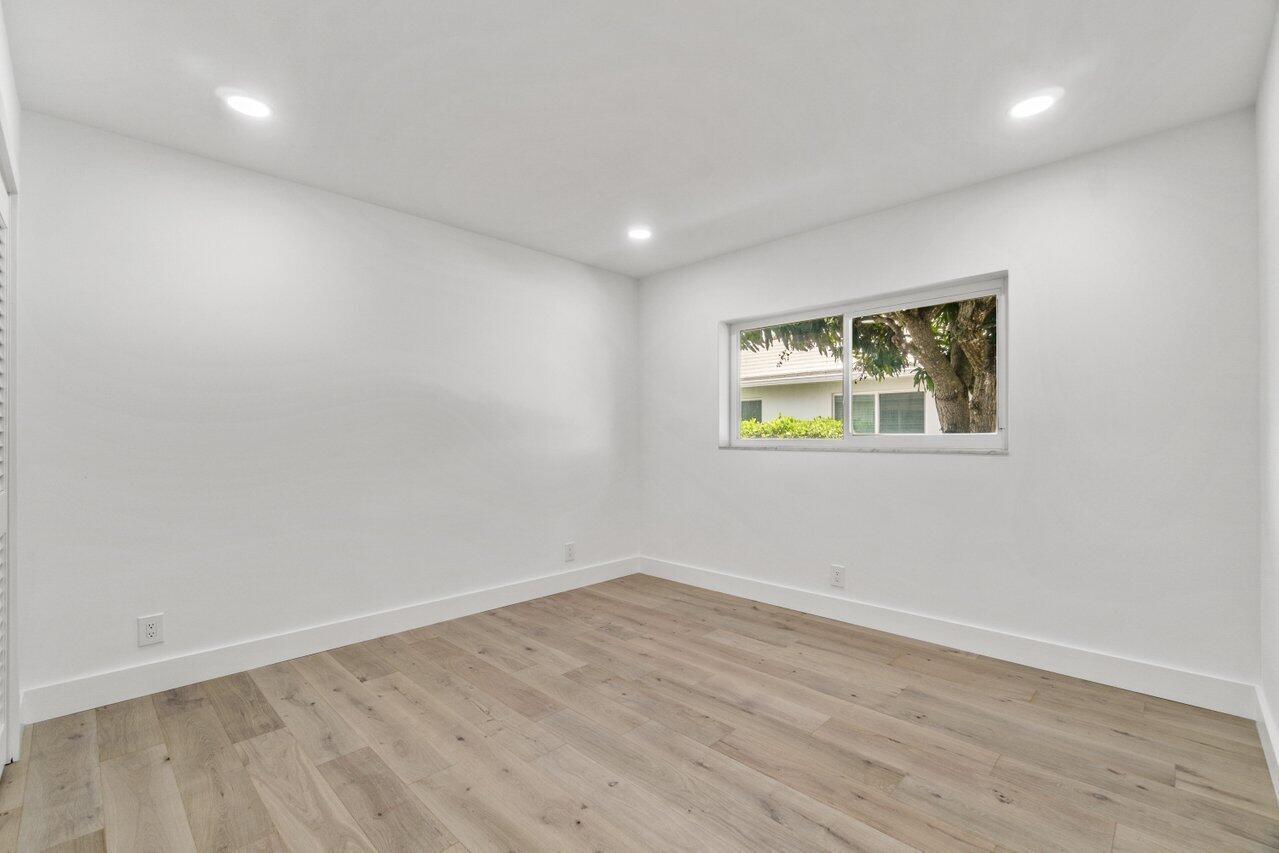 This single-story home in the highly sought-after Camino Gardens community of East Boca Raton has been meticulously renovated with top-of-the-line finishes. Featuring a bright and open split floor plan, the residence offers three bedrooms and two full bathrooms. Every detail is brand new. Roof - 2023, all HURRICANE impact windows and sliders. The kitchen is a showpiece, outfitted with custom Italian cabinetry, Bosch appliances, marble countertops, and a stunning waterfall edge backsplash. Throughout the home, you'll find French white oak wood flooring, custom-built closets, and updated doors, hardware, and trim. The bathrooms are beautifully finished with Italian porcelain tile and custom quartz countertops.Outside, a spacious covered patio overlooks a turfed backyard, while the brand