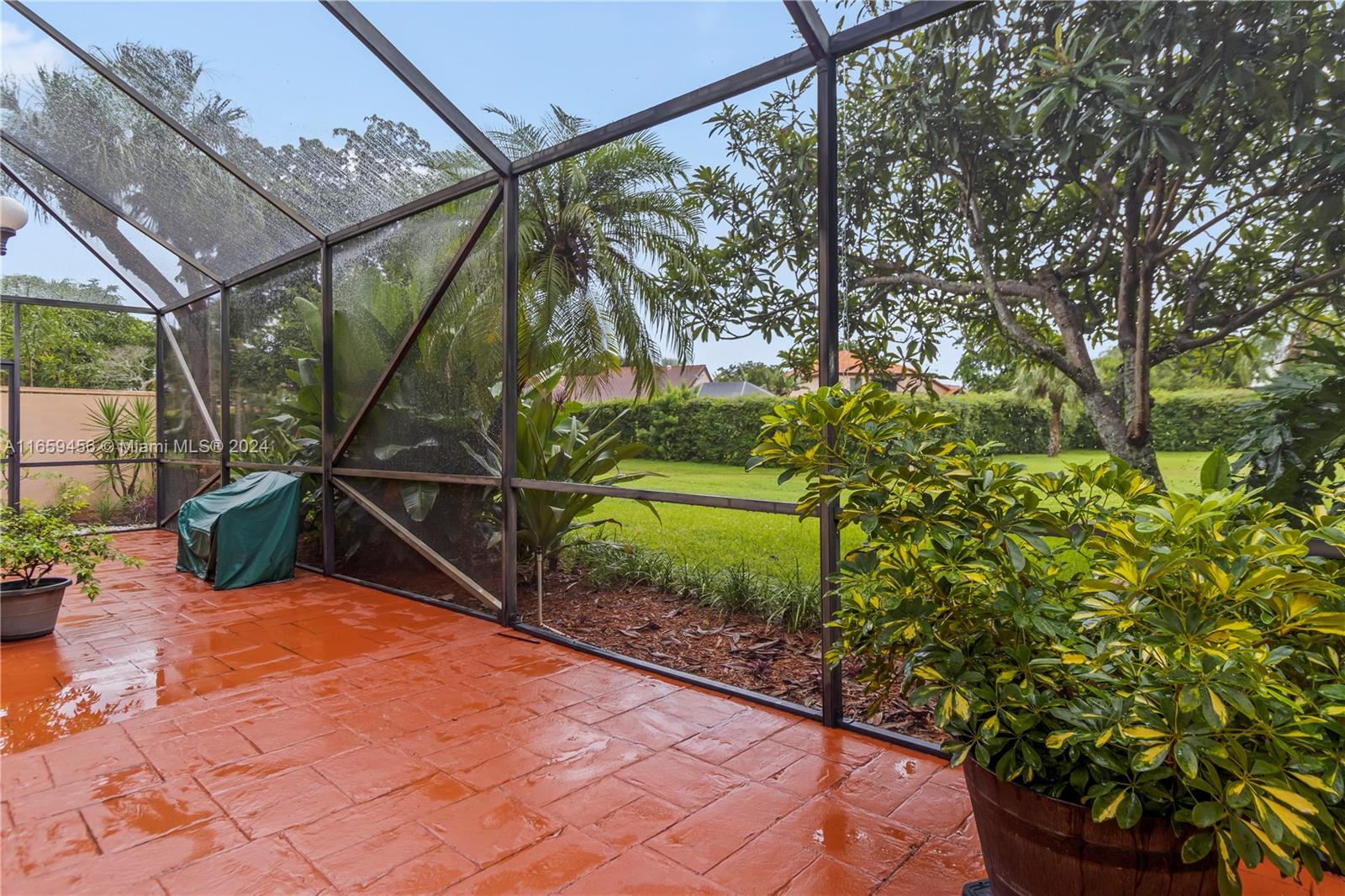 Charming Mediterranean-inspired home in the scenic Villa Flora community of Boca Pointe. This single-family gem boasts 3 bedrooms, 2 baths, and a spacious open floor plan with vaulted ceilings and plenty of natural light. Each bedroom includes a walk-in closet. The centerpiece is the large eat-in kitchen with an island, perfect for meals. Close to I-95, turnpike, and beautiful beaches, with access to A+ schools. Step out to the screened porch, ideal for outdoor living. Features include a laundry room, 2-car garage, and lush landscaping with fruit trees. Don't miss out on this delightful home!