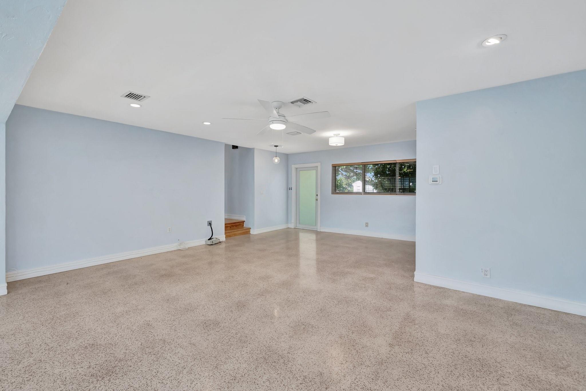This home has the perfect blend of value and convenience on the east side of I-95. The property is double gated with both the back yard & front yard being fully gated. Circular drive & carport offer ease when pulling out of the driveway and plenty of parking space. Impact windows throughout for a quiet interior. Fresh paint on the exterior & a new raised floor in the sunroom to level the living space to match. Terrazzo and Wood floors have been refinished. New gutters & 2, 50 gallon rain barrels with down spouts help to efficiently manage and re-use rain water. Appliances are new and storage space is abundant. Screened back porch & lush tropical landscape for enjoyment of the outdoors await. Indoor Laundry room. Walk-in closet in primary suite. Spacious kitchen.