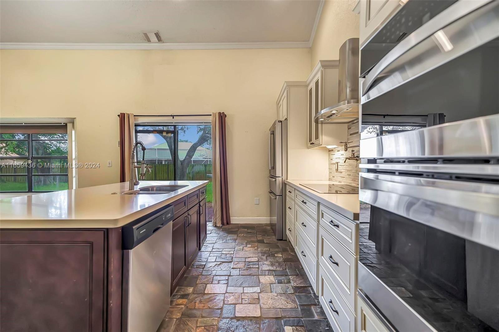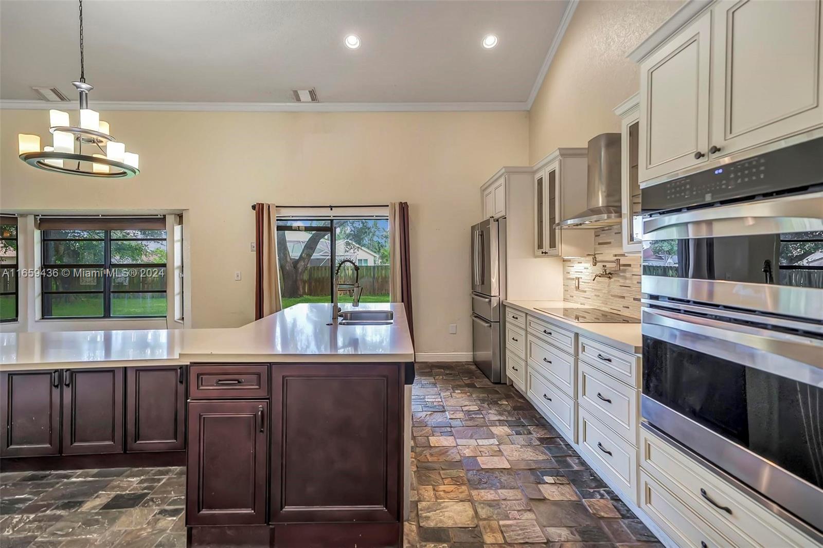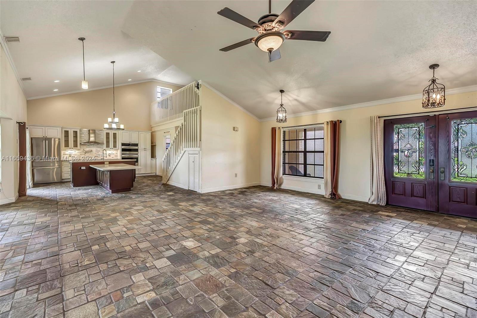 Welcome to this stunning residence, perfectly positioned at the end of a quiet cul-de-sac. This beautiful home features a spacious, fenced-in yard, offering both privacy and room for a pool.Inside, you'll be greeted by elegant slate flooring that extends through the main living areas. New AC! The gourmet kitchen is a true highlight, recently updated with a large quartz island for both everyday meals and entertaining guests.The main bedroom, conveniently located on the first floor, provides a peaceful retreat with its tastefully updated en-suite bathroom. Upstairs, you'll find two additional bedrooms and loft, each offering comfort.For added security and convenience, the home is equipped with accordion shutters.Don’t miss the opportunity to make this exceptional property your new home!