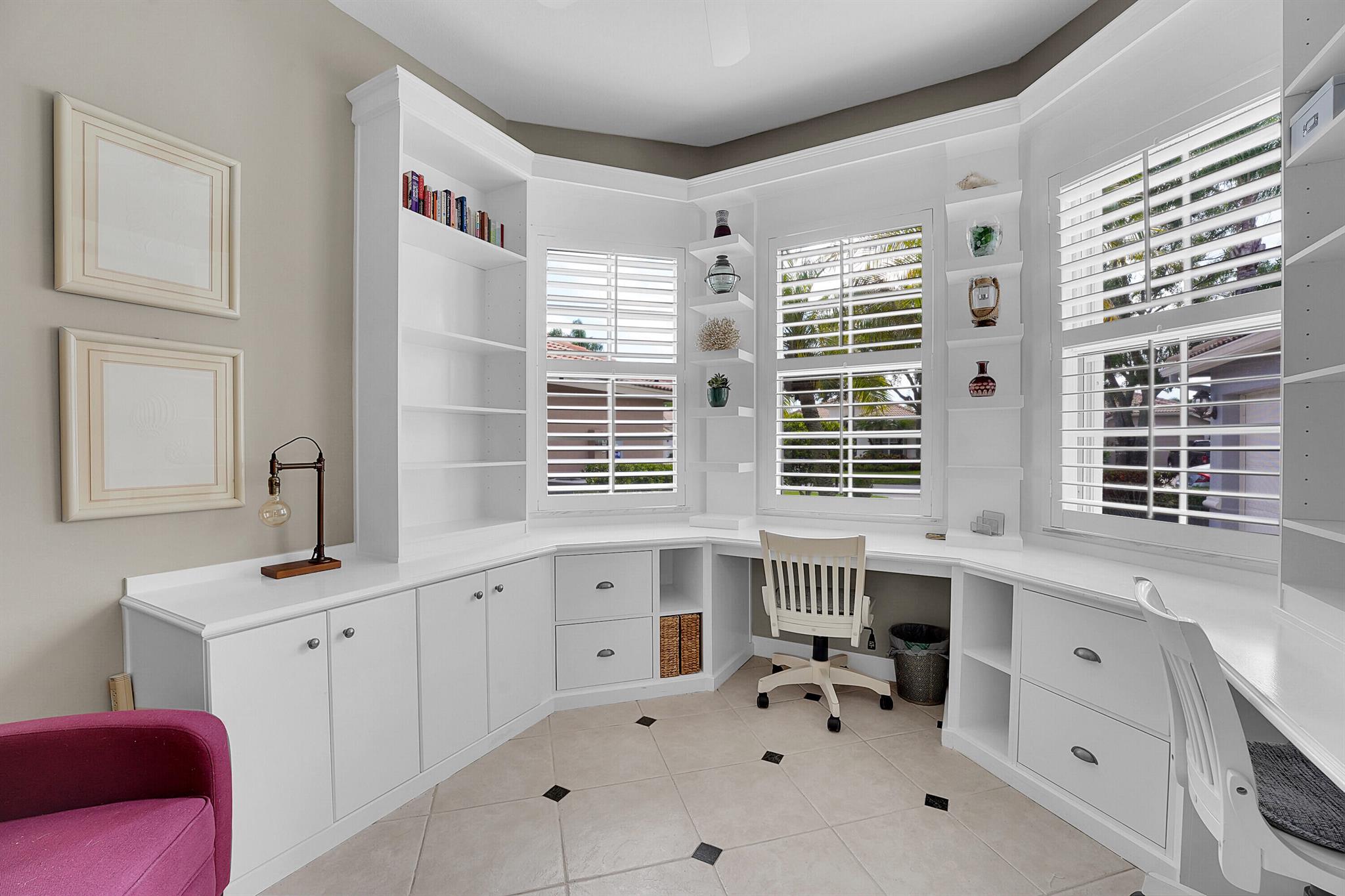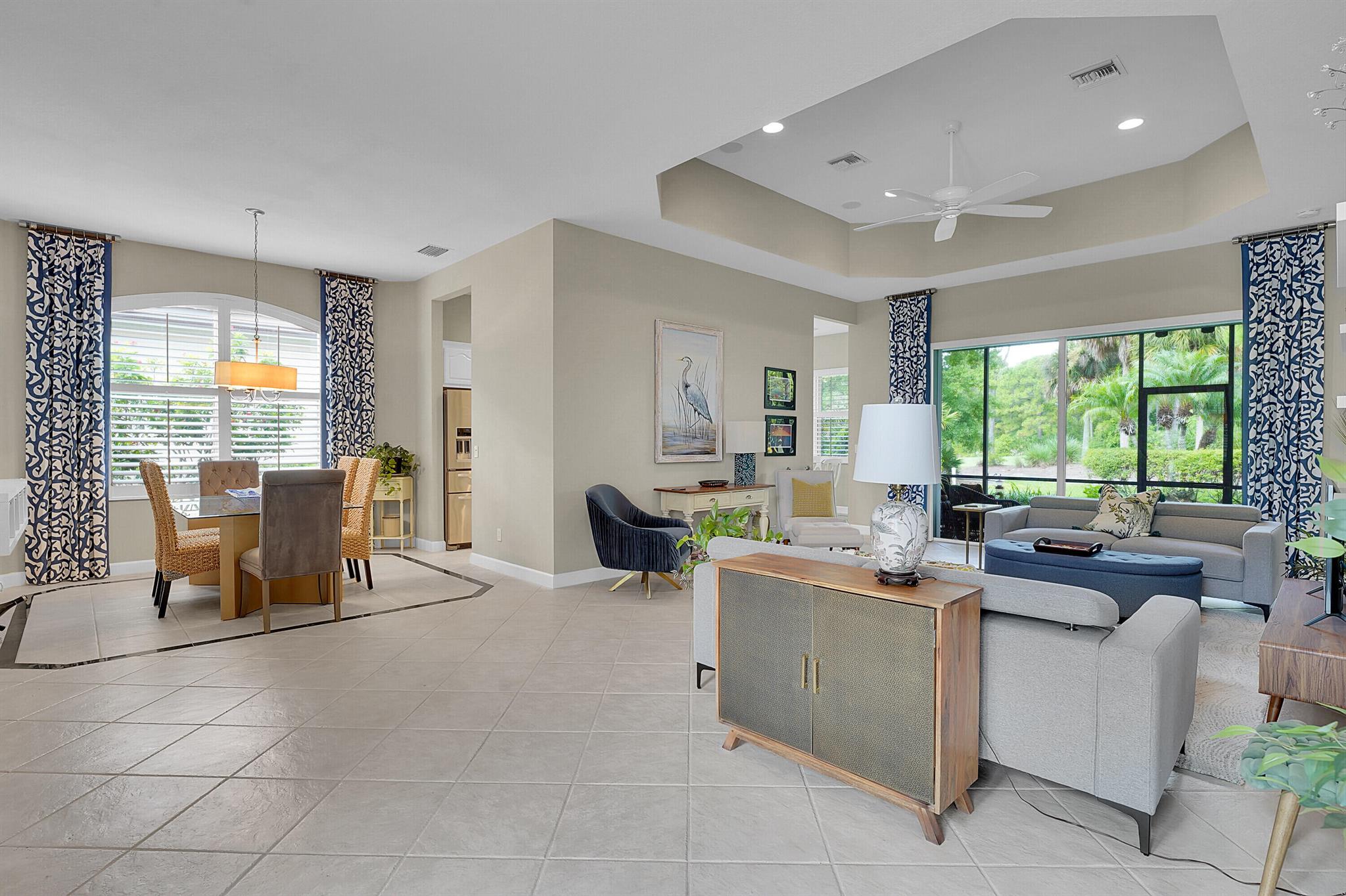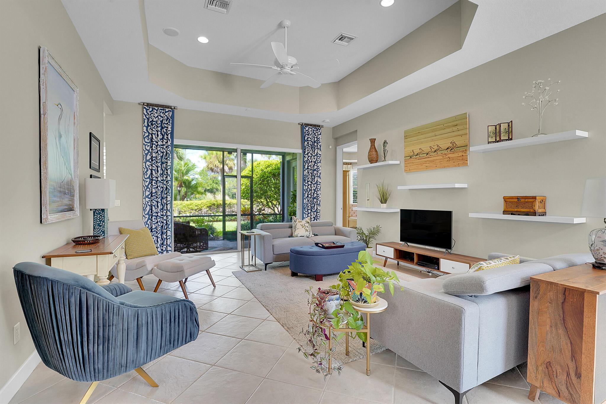 MUIRFIELD NEIGHBORHOOD IN THE HEART OF PGA VILLAGE, just a stone's throw away from PGA driving range, and 3 world class championship golf courses. In addition, within the community the Private Legacy Golf & Tennis Club is a short golf cart ride. To enjoy your resort style home even more, the Island Club offers a fabulous pool, fitness center, exercise room for yoga, a library, billiards, game rooms, and so much more. This move in ready home has a great floor plan with...* bright kitchen with 42'' white cabinets, stainless appliances & adjacent breakfast nook, an extra-large primary bedroom with 2 walk-in closets and an ensuite with 2 sinks, a walk-in shower & soaking tub; *an office/den with built-in cabinets & desks; *a comfortable living room with tray ceiling and sliders leading to l