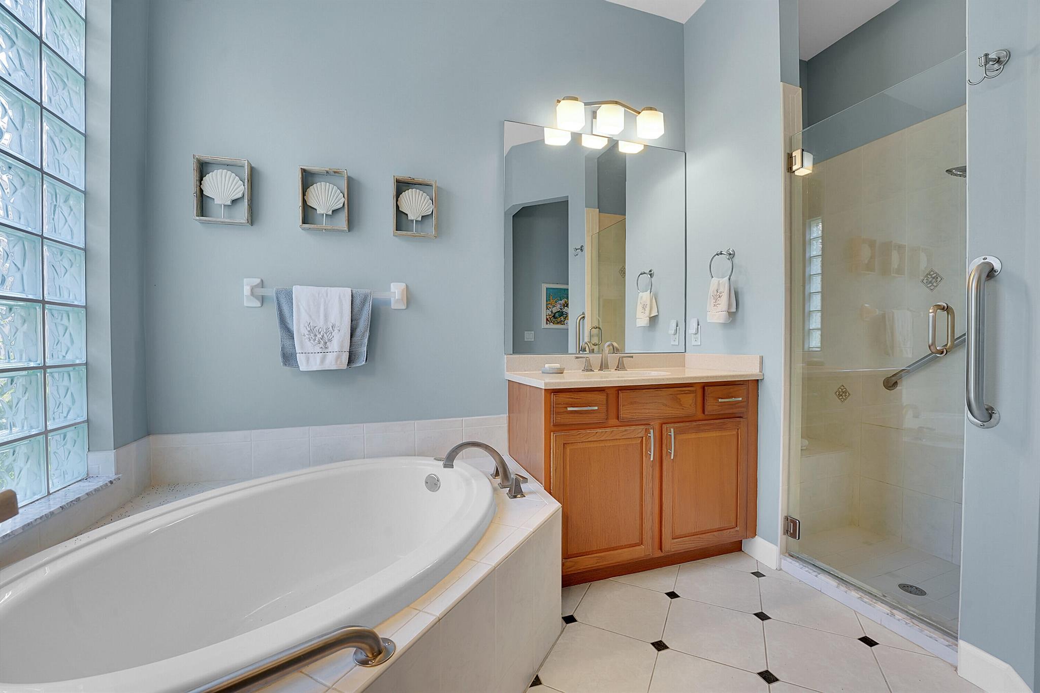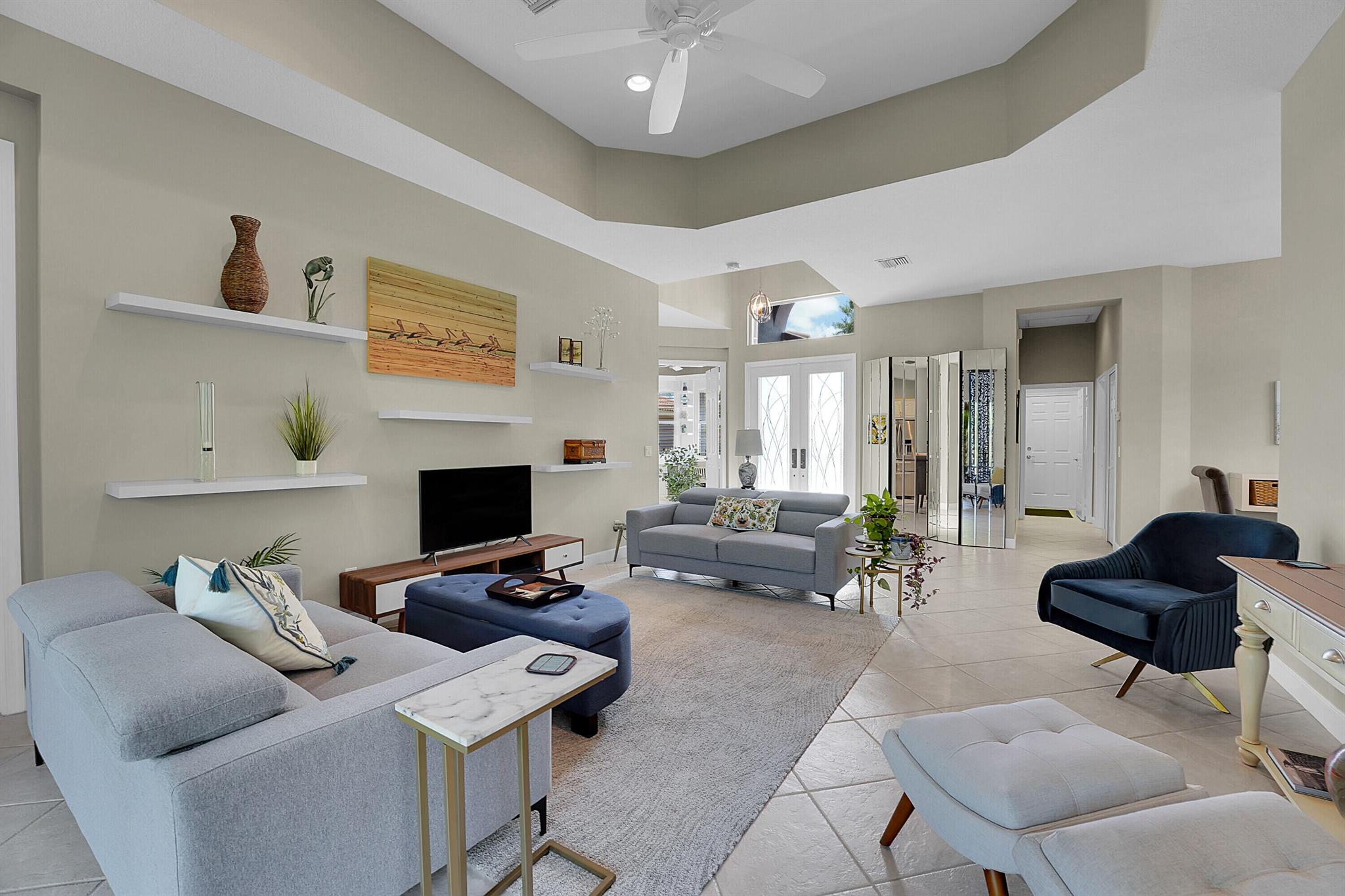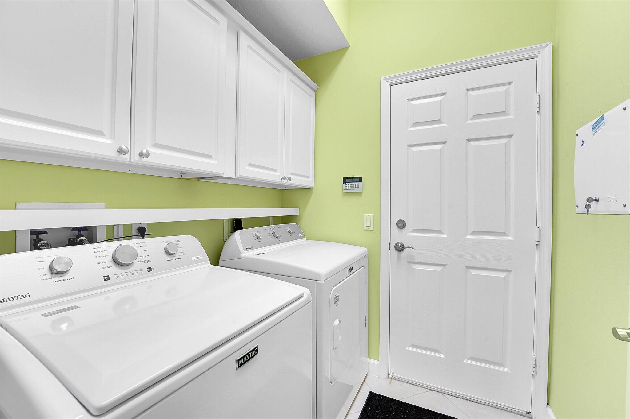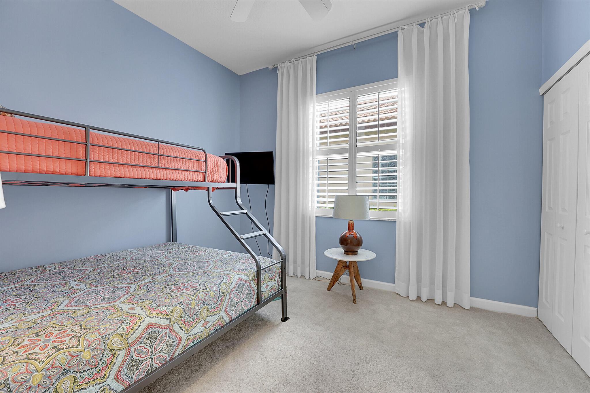 MUIRFIELD NEIGHBORHOOD IN THE HEART OF PGA VILLAGE, just a stone's throw away from PGA driving range, and 3 world class championship golf courses. In addition, within the community the Private Legacy Golf & Tennis Club is a short golf cart ride. To enjoy your resort style home even more, the Island Club offers a fabulous pool, fitness center, exercise room for yoga, a library, billiards, game rooms, and so much more. This move in ready home has a great floor plan with...* bright kitchen with 42'' white cabinets, stainless appliances & adjacent breakfast nook, an extra-large primary bedroom with 2 walk-in closets and an ensuite with 2 sinks, a walk-in shower & soaking tub; *an office/den with built-in cabinets & desks; *a comfortable living room with tray ceiling and sliders leading to l