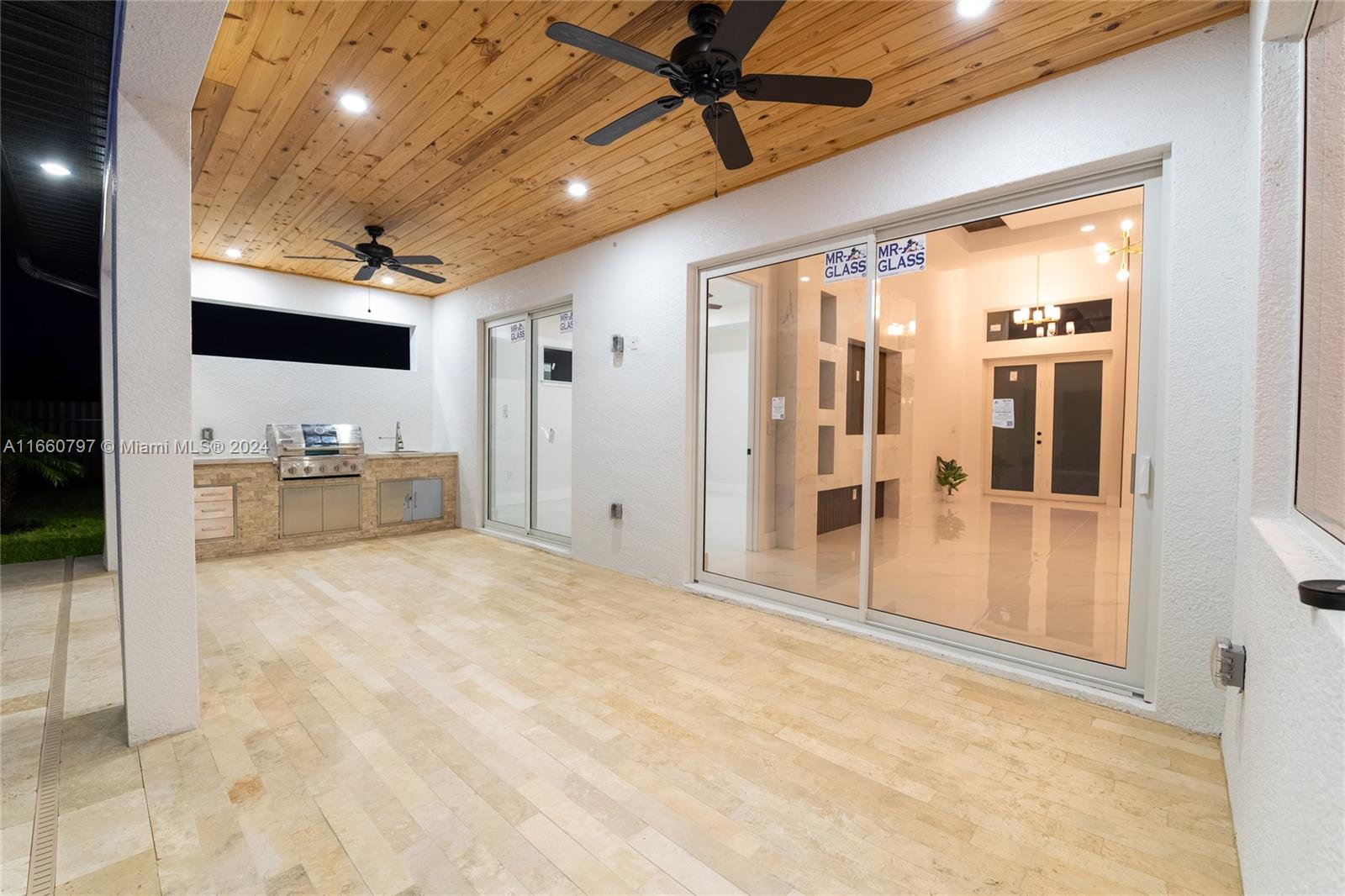 Introducing a stunning waterfront estate that epitomizes luxury living. This newly constructed home features 4 spacious bedrooms and 3 elegant bathrooms, complemented by a three-car garage. Step outside to discover a breathtaking pool with a waterfall, a cozy firepit, and a built-in BBQ, perfect for outdoor gatherings. Inside, the residence boasts a gourmet kitchen with sleek European-style cabinets, a stone wine rack, and pristine quartz countertops. The open-concept layout and soaring ceilings create a bright and inviting atmosphere, enhanced by sophisticated tile flooring. Hurricane-impact windows provide both security and peace of mind. Enjoy the outdoor space with ceiling fans on the patio ensuring optimal airflow.