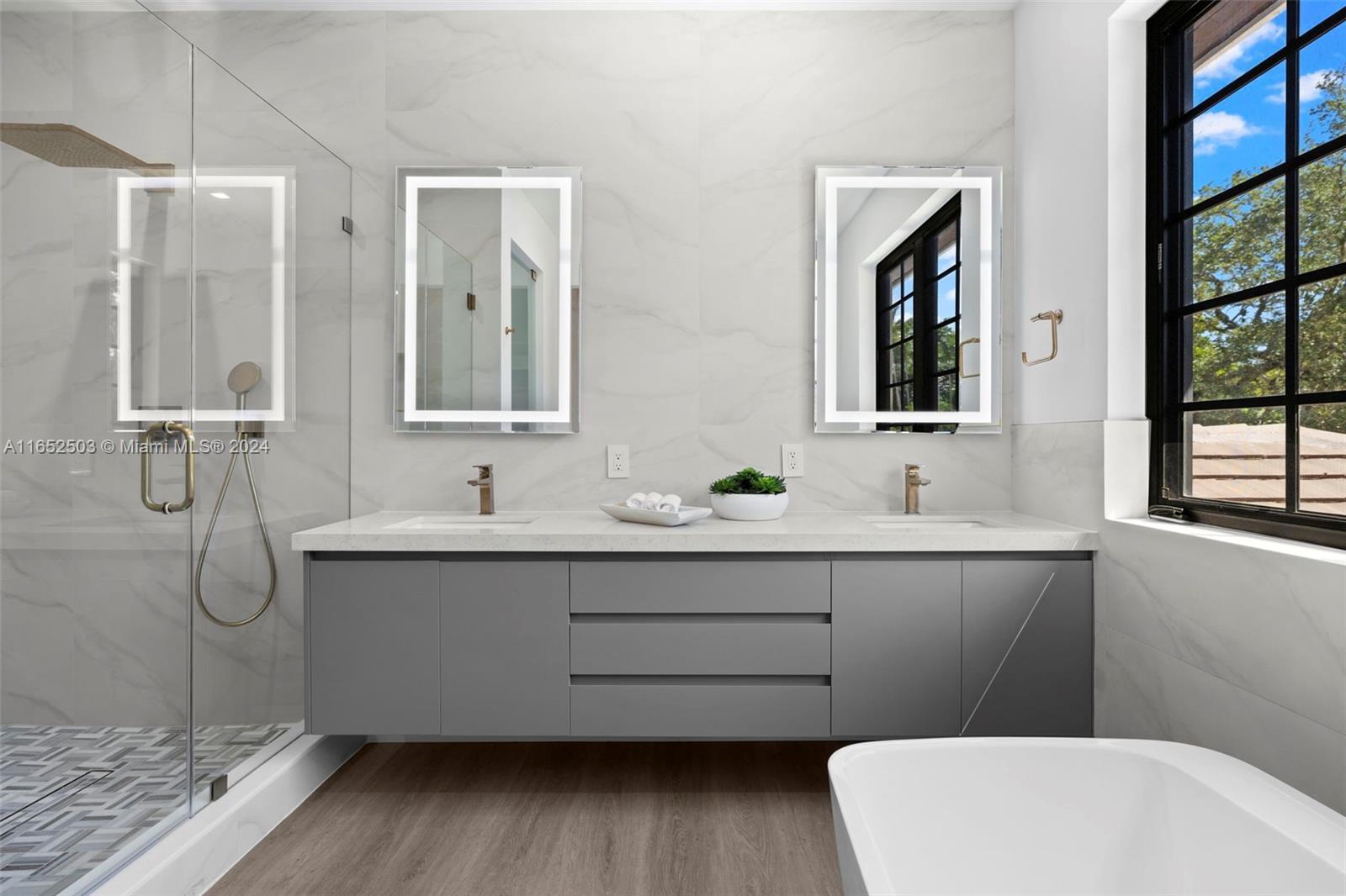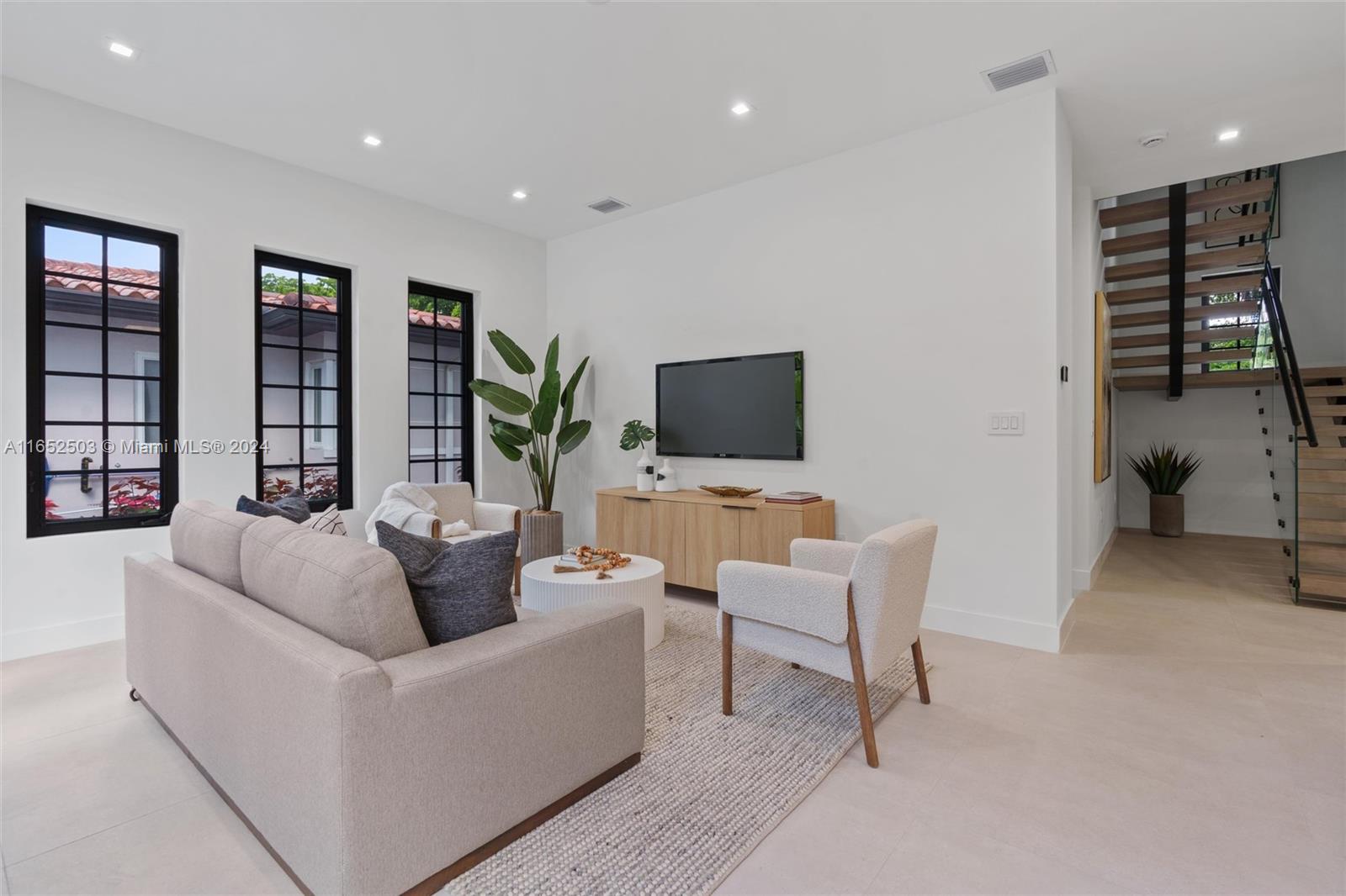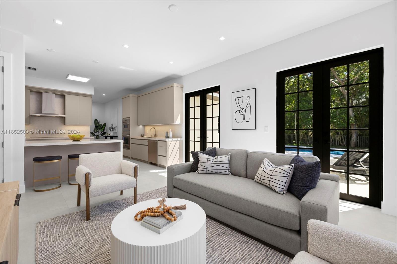 [A Miami Signature Home] Now unveiling this newly-built transitional home in North Gables. Sited on a corner lot under the Gables' verdant canopy, the home features a 2-car garage, pool, and patio—perfect for lounging. The downstairs area includes flowing spaces and a guest bed and bath. Upstairs, the main suite is joined by two additional bedrooms, a hall bath, a laundry room, and a sitting area. Located within walking distance to downtown Coral Gables, residents will enjoy easy access to restaurants, shops, theaters, parks, and recreational facilities. Just a 15-minute drive to MIA, this home is ideal for frequent travelers. New construction at this price point in Coral Gables is rare. Don't miss your chance to acquire this imposing residence in a prime location. Time is of the essence.
