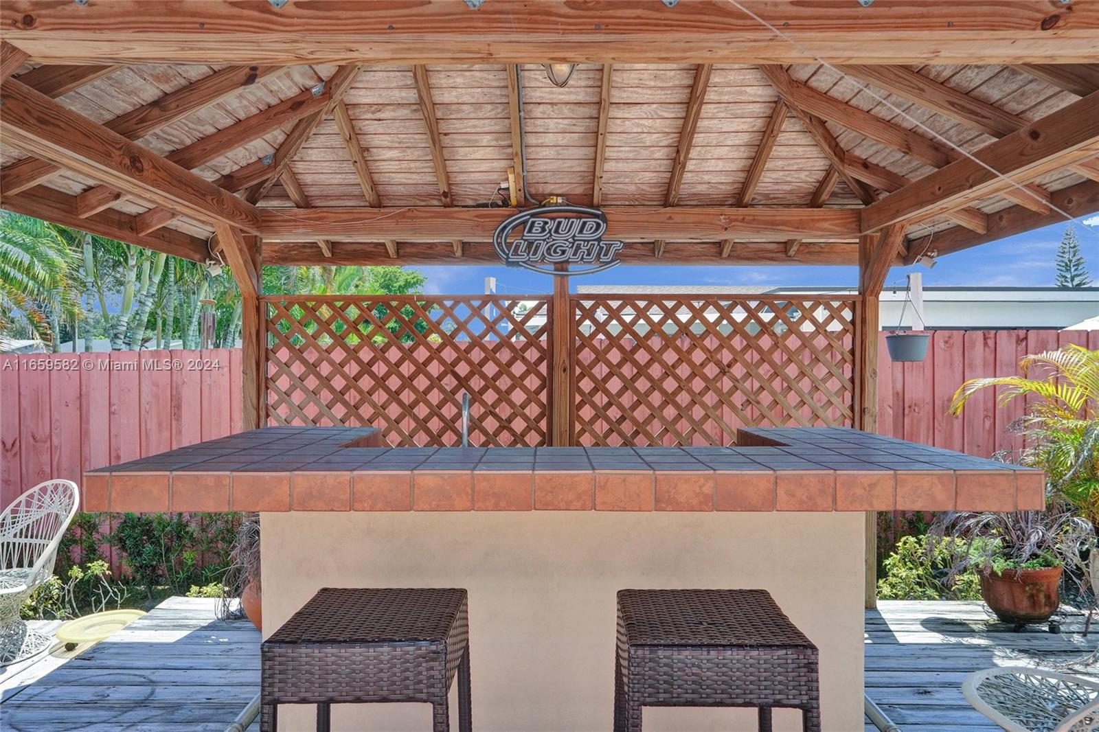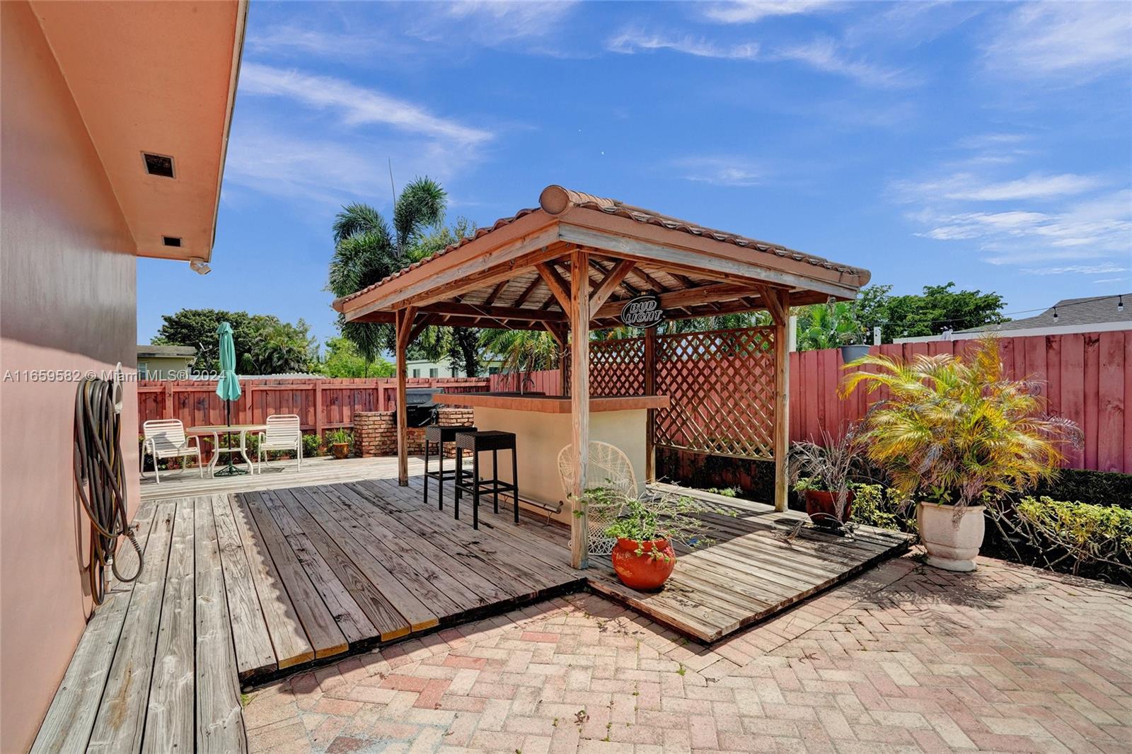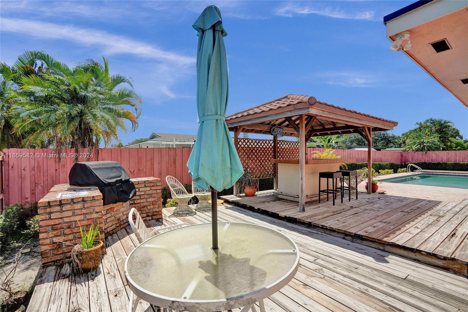 This home has been priced to sell! The home is situated on an oversized corner lot and features 3 bedrooms*2 bathrooms and located on an oversized corner lot. Interior features: double door entry*master bedroom with walk in closet and remodeled master bath (cabana)headlining an oversized tub with seamless glass doors*sunken living room* ceramic tile throughout the home*6 ceiling fans*remodeled kitchen with hi-end wood cabinets*s*granite countertops*stainless appliances*pull out drawers*built in wall units*interior laundry room*wood burning fireplace which can be converted to gas*plantation shutters. The exterior features a great backyard*large heated pool*whole house generator*gazebo with water*summer kitchen with an Alfresco Grill*completely fenced*auto sprinkler system*shed & decking.