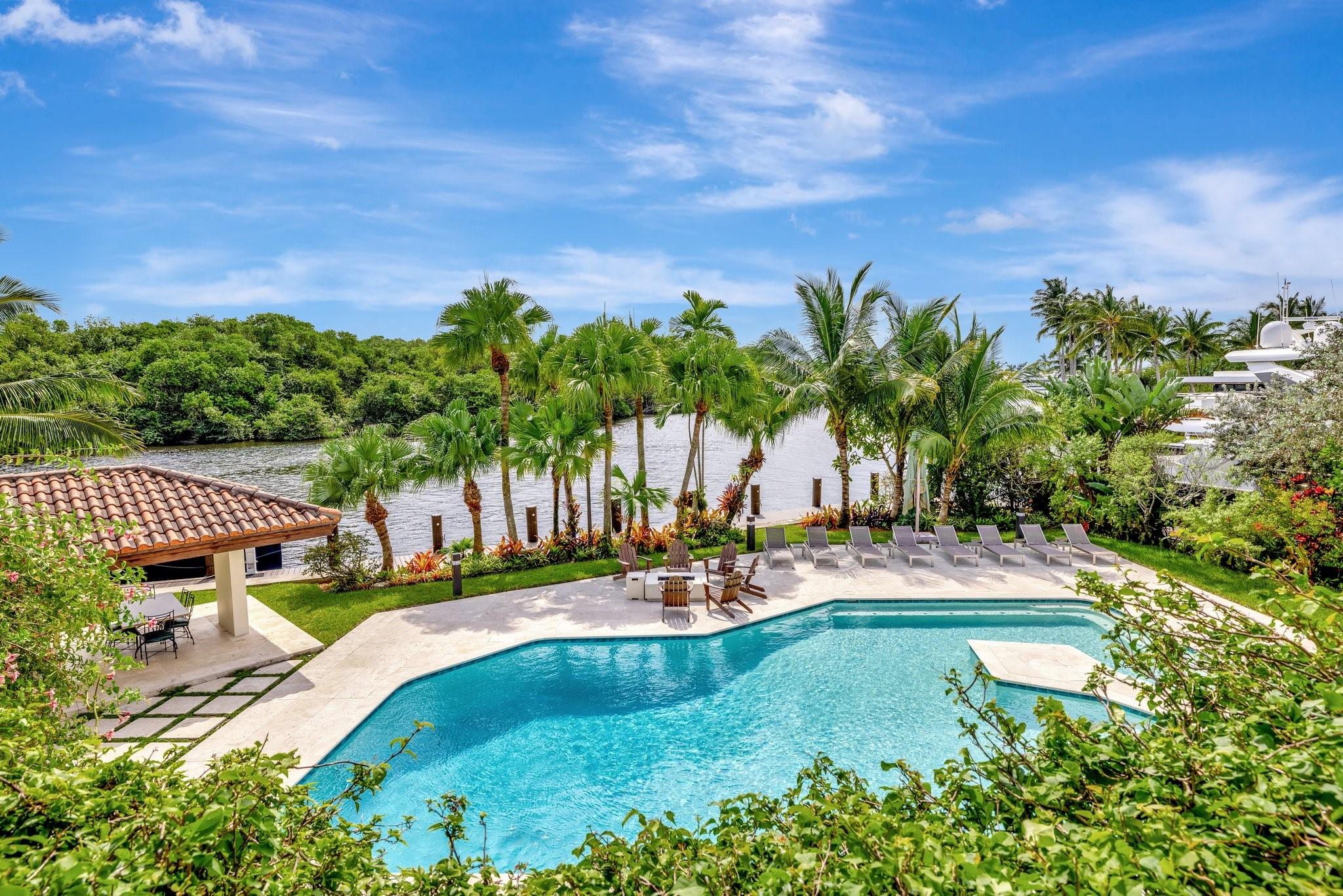 This rare & unique point (almost full acre) offers a valuable blend of deep water dockage! 540ft+/- waterfront & serene wide views of the New River it is an irreplaceable opportunity! Walled & gated at the end of a semi-private street. Park-like setting overlooks Secret Woods Preserve & inspires private island resort ambiance with a large pool, Cabana Bath, Summer kitchen & covered terraces. Residence itself is concrete built & substantial with easy flowing indoor & outdoor entertaining areas, flexible floorplan, a gourmet kitchen & expansive bedroom suites, updated custom baths. Luxurious Primary Suite offers expansive terrace. New South dock connects to the West side dockage creating a continuous walkaround dock with new power pedestals & underwater lighting. Potential Seller Financing!