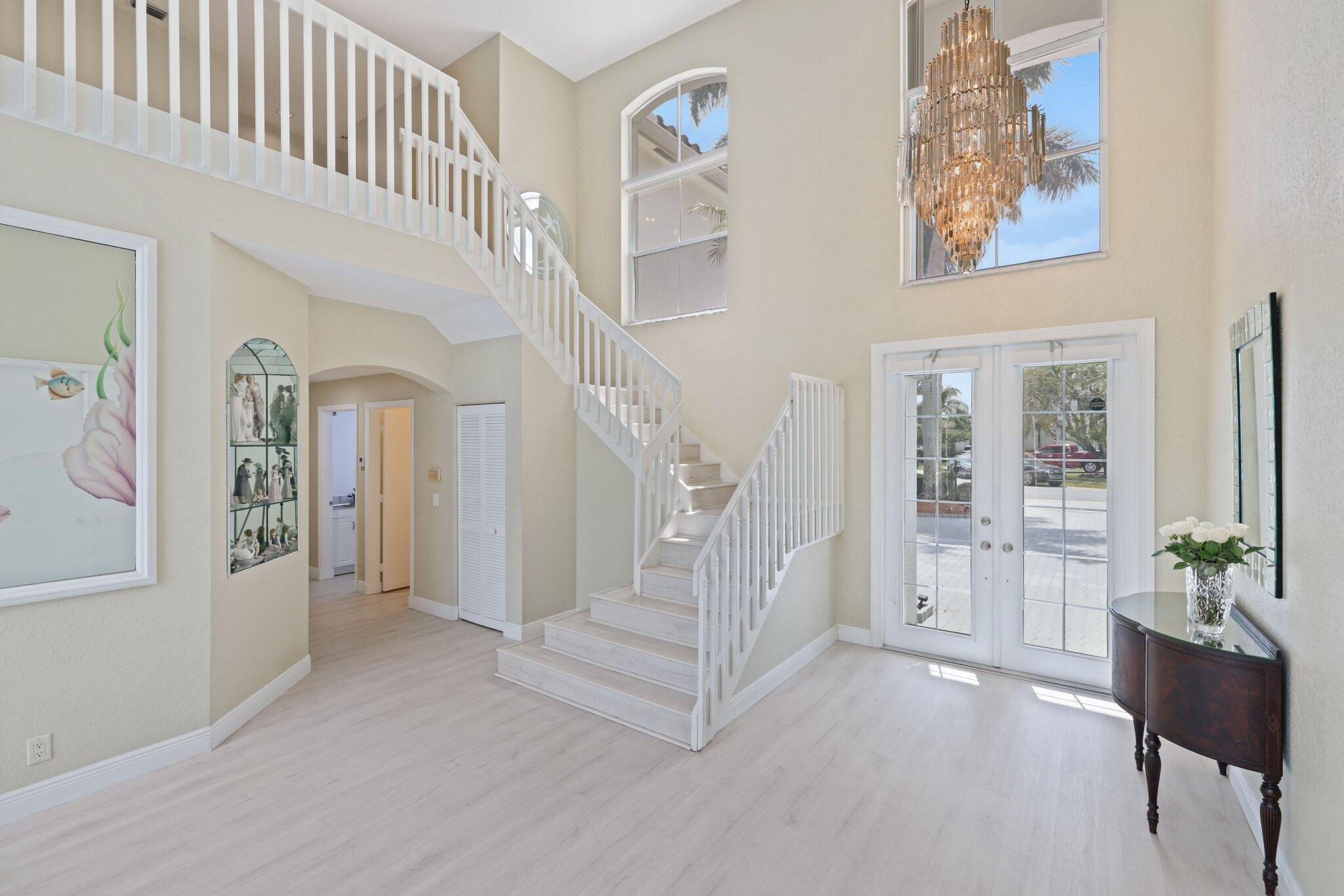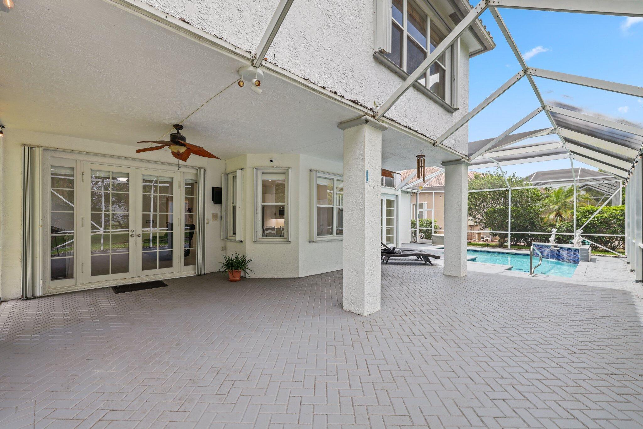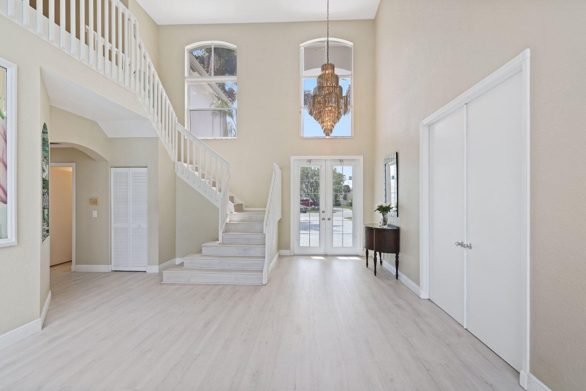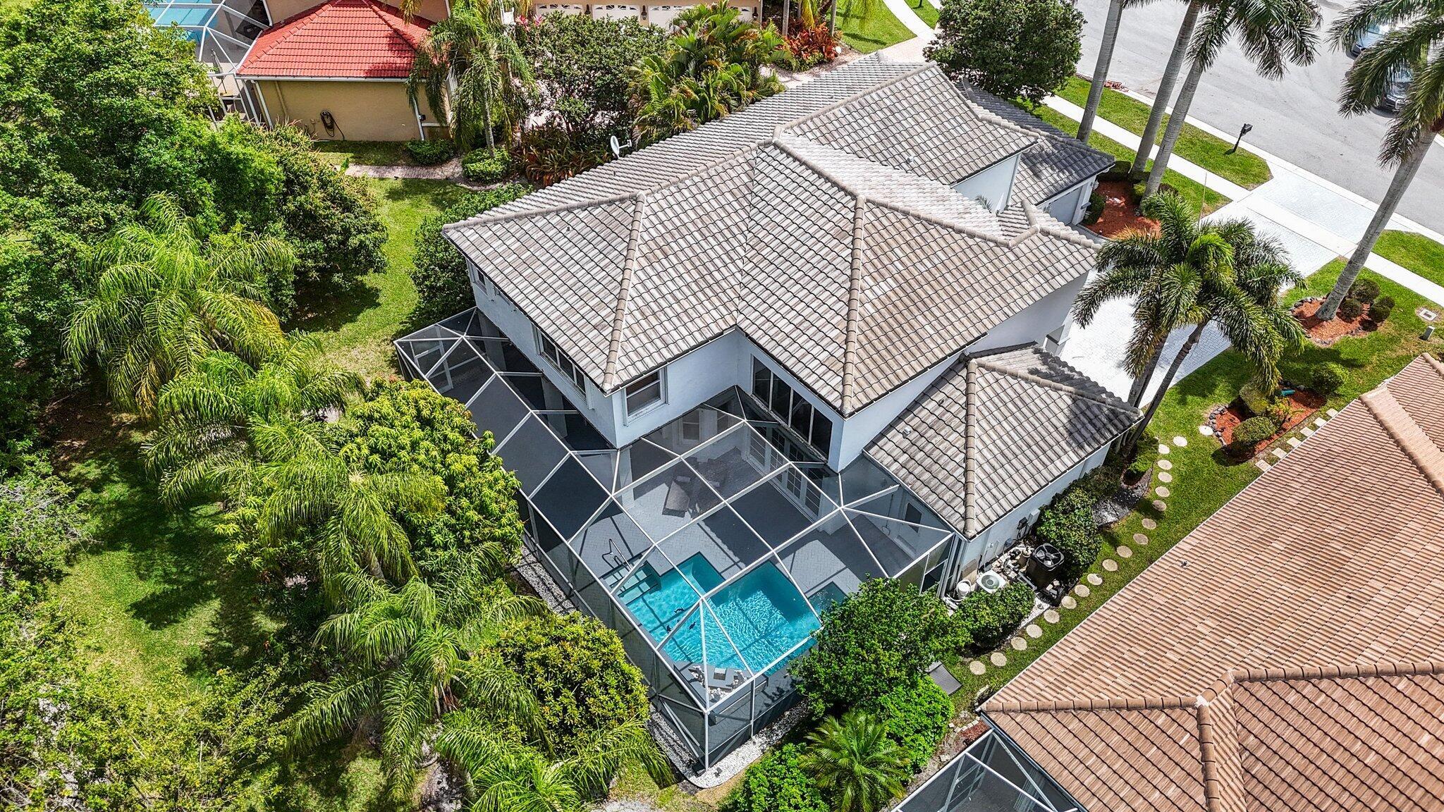 Welcome to this stunning 3,366 sq. ft., 5-bedroom + loft, 3.5-bath home in the highly sought-after, family-friendly community of The Shores at Boca Raton. Hitting the market for the first time, this home is nestled at the end of a peaceful cul-de-sac, offering both privacy and space, perfect for families. Featuring a new roof, accordion shutters, a spacious 3-car garage, upgraded flooring throughout, and a large kitchen with double ovens and ample room for cooking and entertaining, this home is designed for both comfort and functionality.Step inside to a grand entrance with soaring 20-foot ceilings, creating a bright and airy atmosphere. The first floor includes a versatile en suite bedroom with a cabana bath. The expansive screened-in patio, complete with a newly heated pool, is