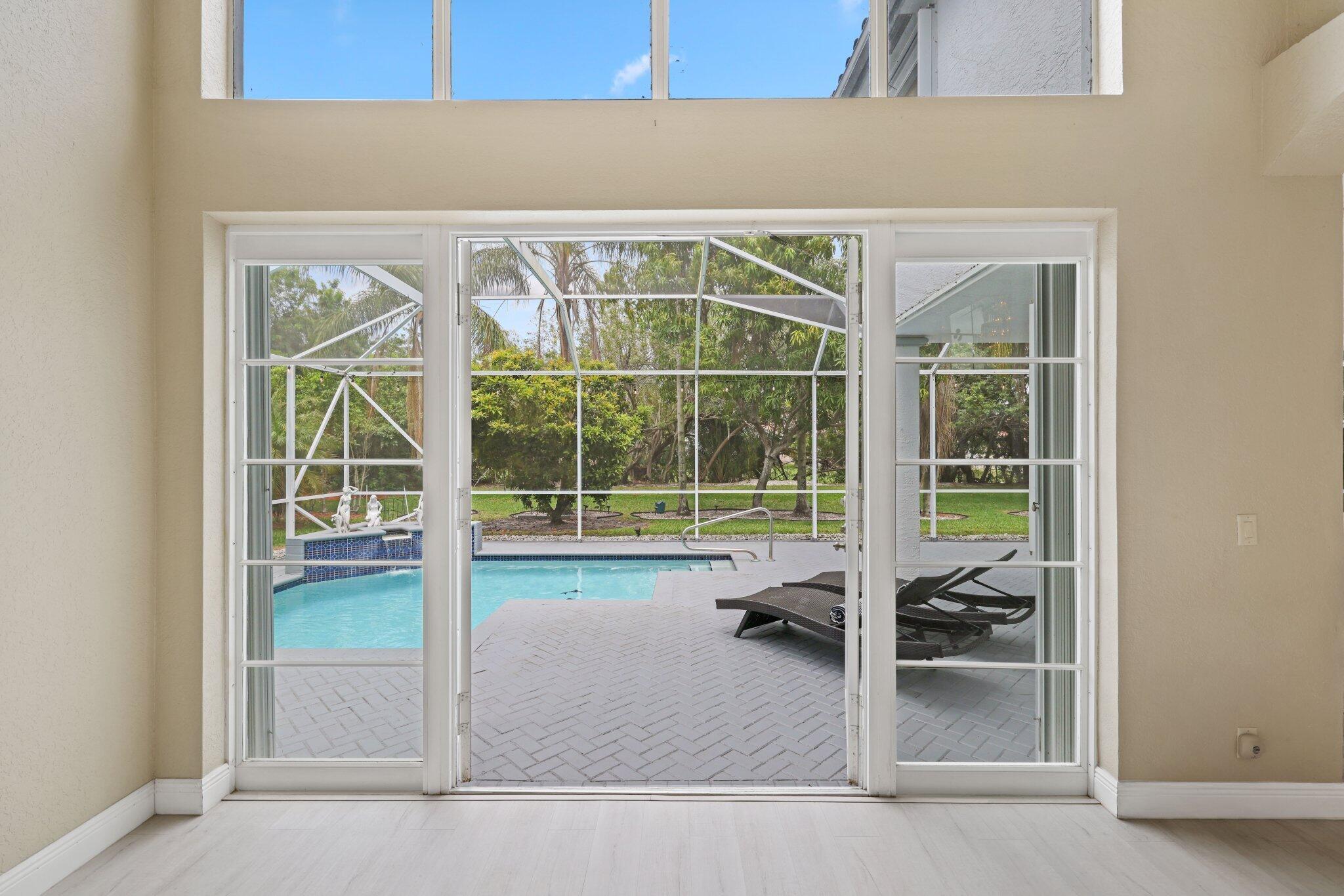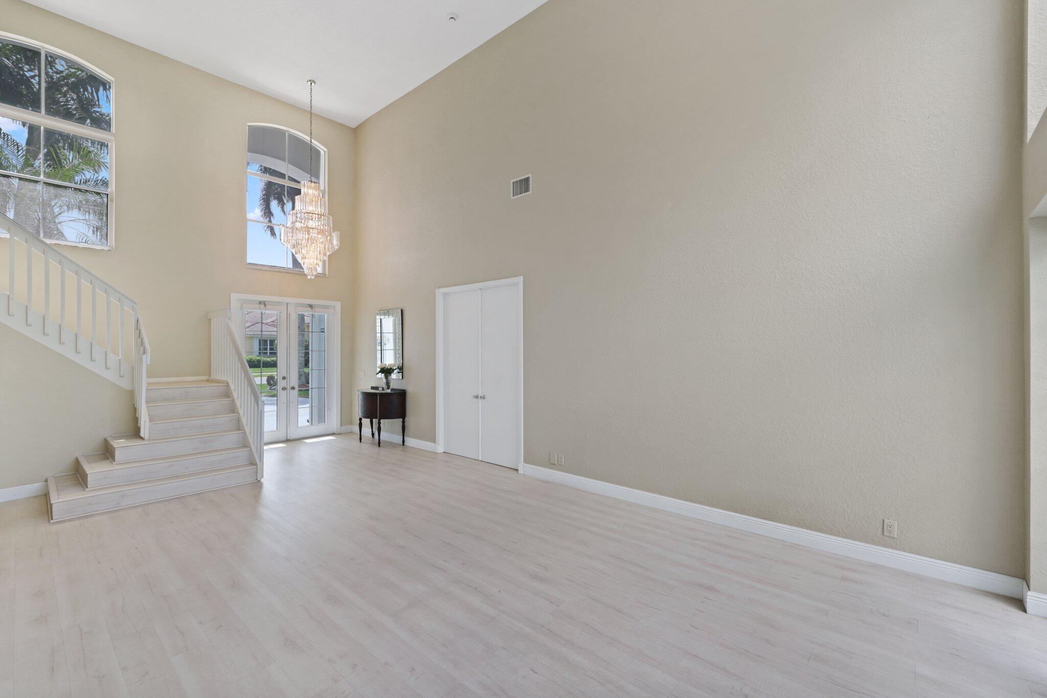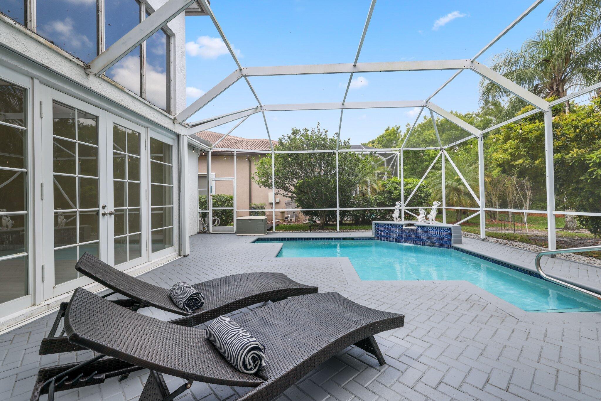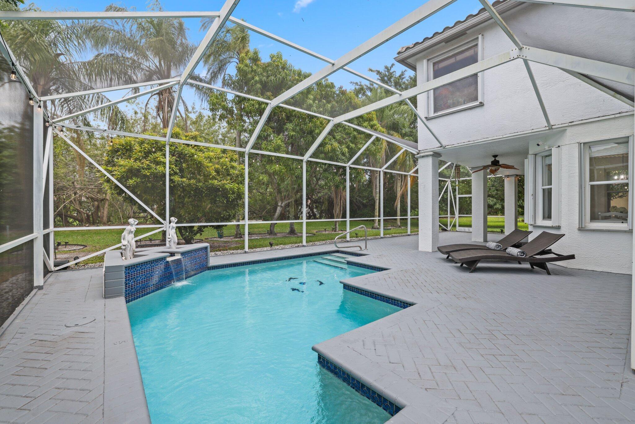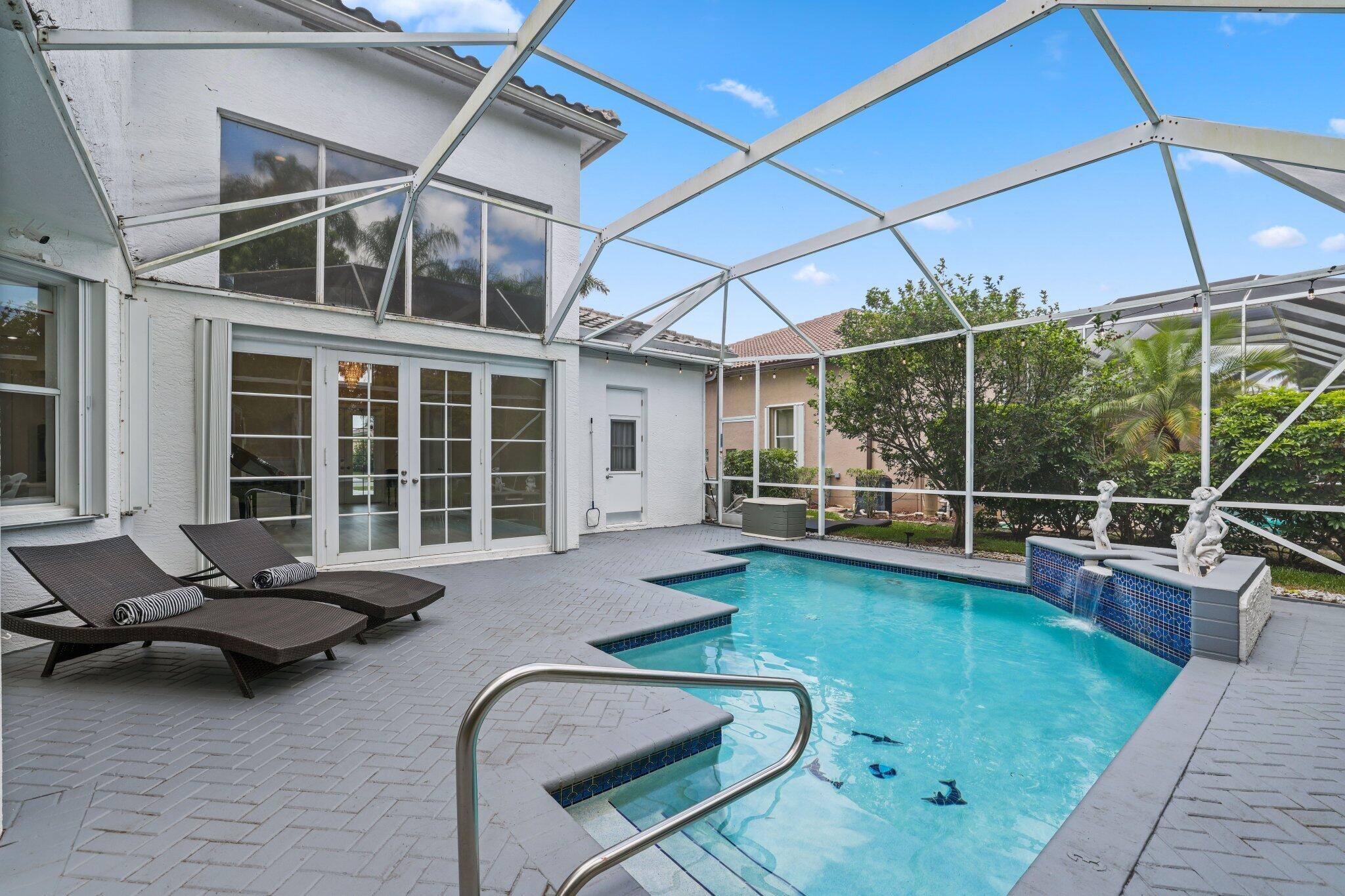 Welcome to this stunning 3,366 sq. ft., 5-bedroom + loft, 3.5-bath home in the highly sought-after, family-friendly community of The Shores at Boca Raton. Hitting the market for the first time, this home is nestled at the end of a peaceful cul-de-sac, offering both privacy and space, perfect for families. Featuring a new roof, accordion shutters, a spacious 3-car garage, upgraded flooring throughout, and a large kitchen with double ovens and ample room for cooking and entertaining, this home is designed for both comfort and functionality.Step inside to a grand entrance with soaring 20-foot ceilings, creating a bright and airy atmosphere. The first floor includes a versatile en suite bedroom with a cabana bath. The expansive screened-in patio, complete with a newly heated pool, is