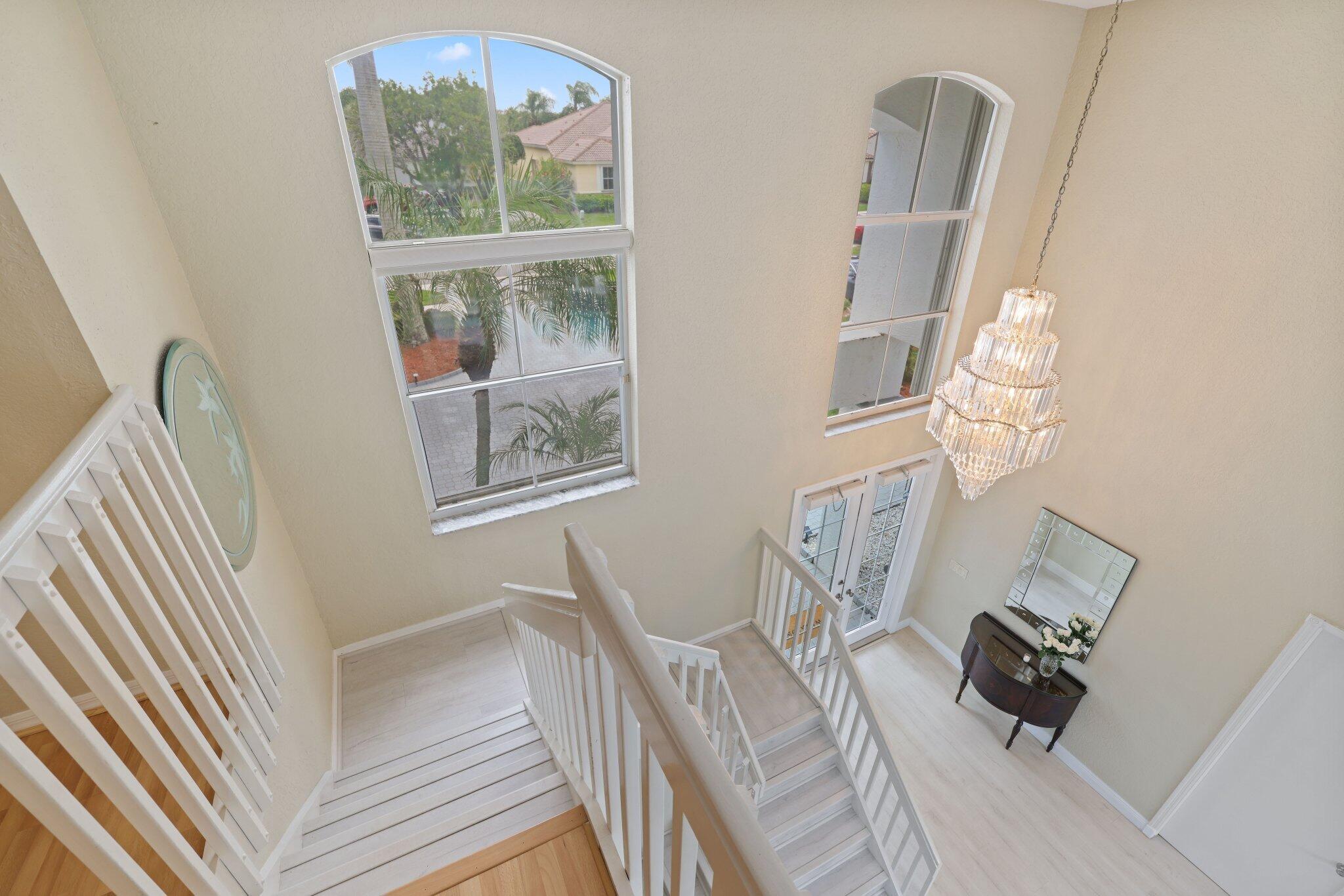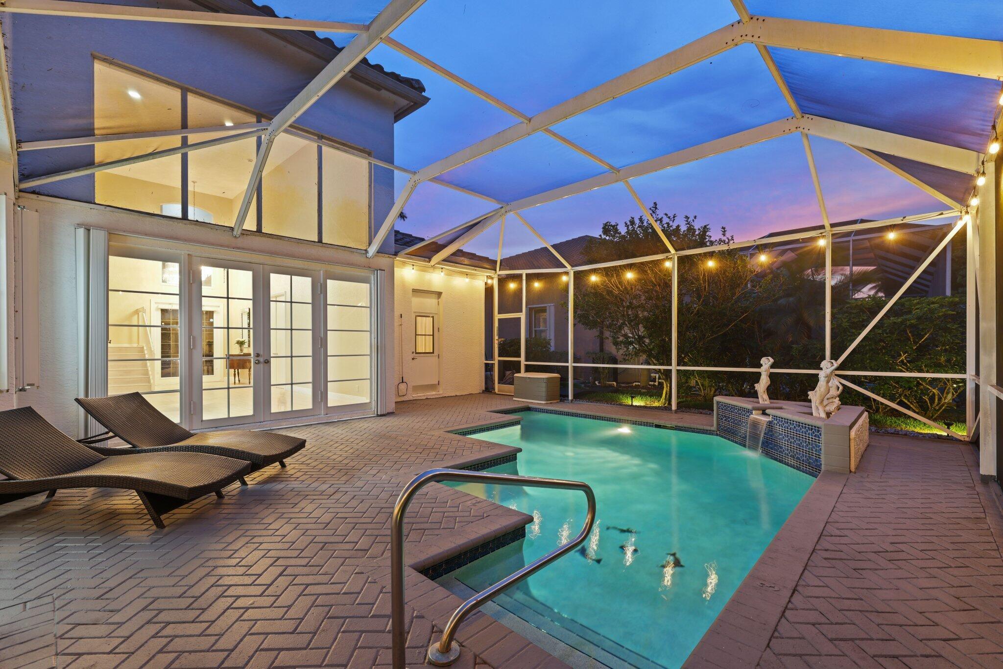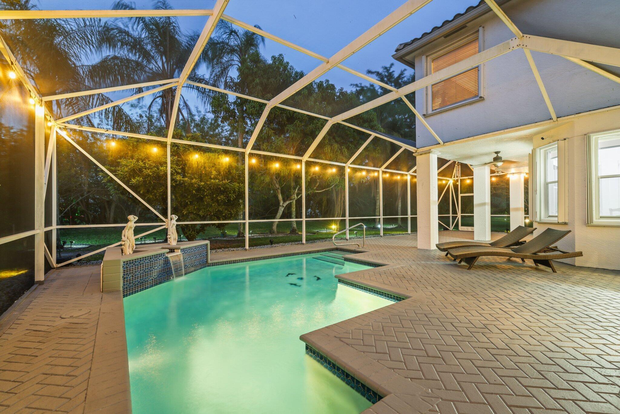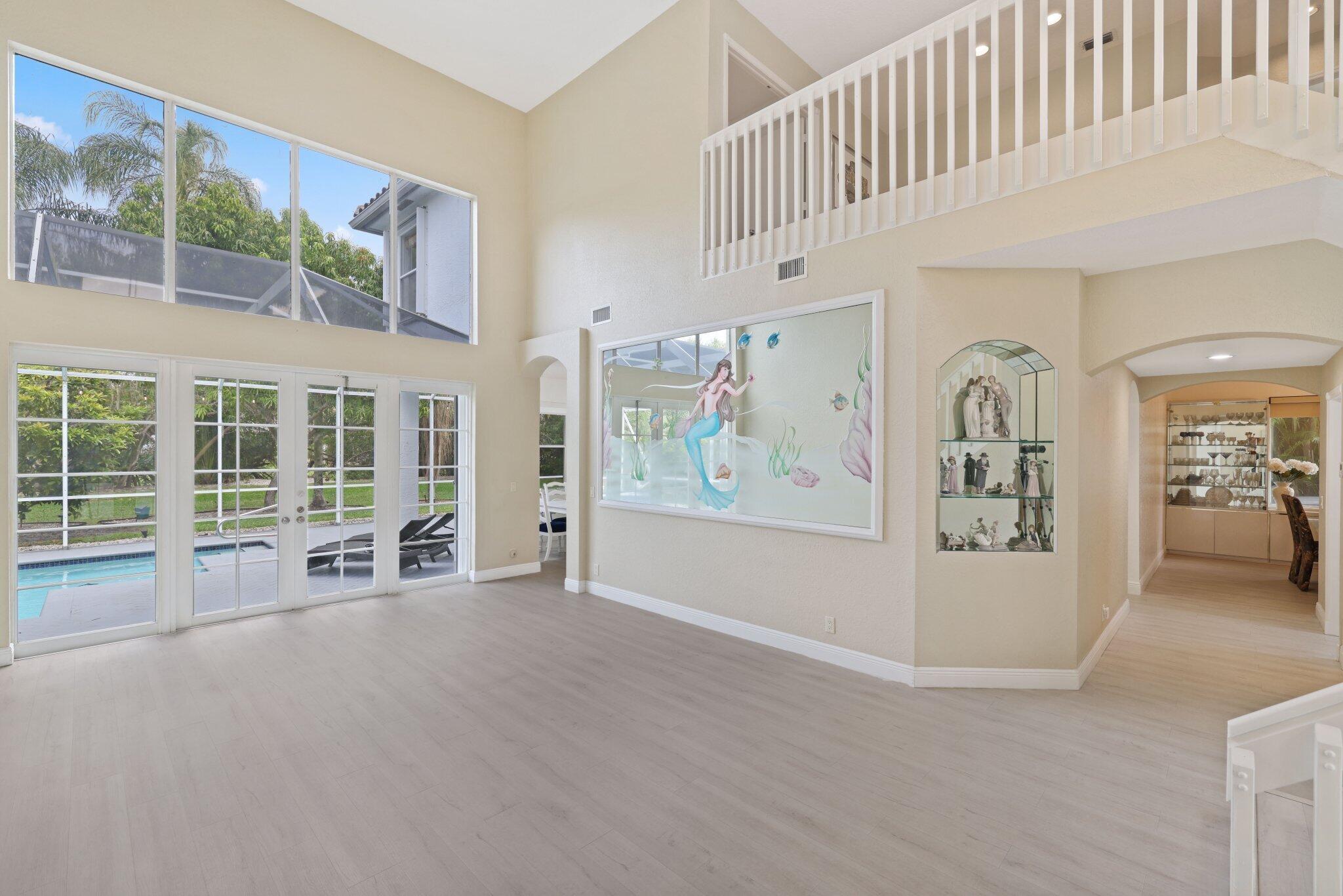 Welcome to this stunning 3,366 sq. ft., 5-bedroom + loft, 3.5-bath home in the highly sought-after, family-friendly community of The Shores at Boca Raton. Hitting the market for the first time, this home is nestled at the end of a peaceful cul-de-sac, offering both privacy and space, perfect for families. Featuring a new roof, accordion shutters, a spacious 3-car garage, upgraded flooring throughout, and a large kitchen with double ovens and ample room for cooking and entertaining, this home is designed for both comfort and functionality.Step inside to a grand entrance with soaring 20-foot ceilings, creating a bright and airy atmosphere. The first floor includes a versatile en suite bedroom with a cabana bath. The expansive screened-in patio, complete with a newly heated pool, is