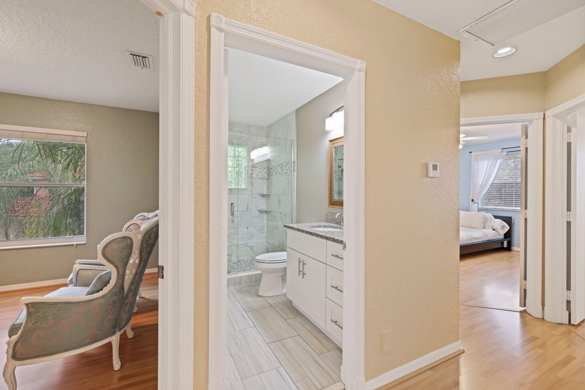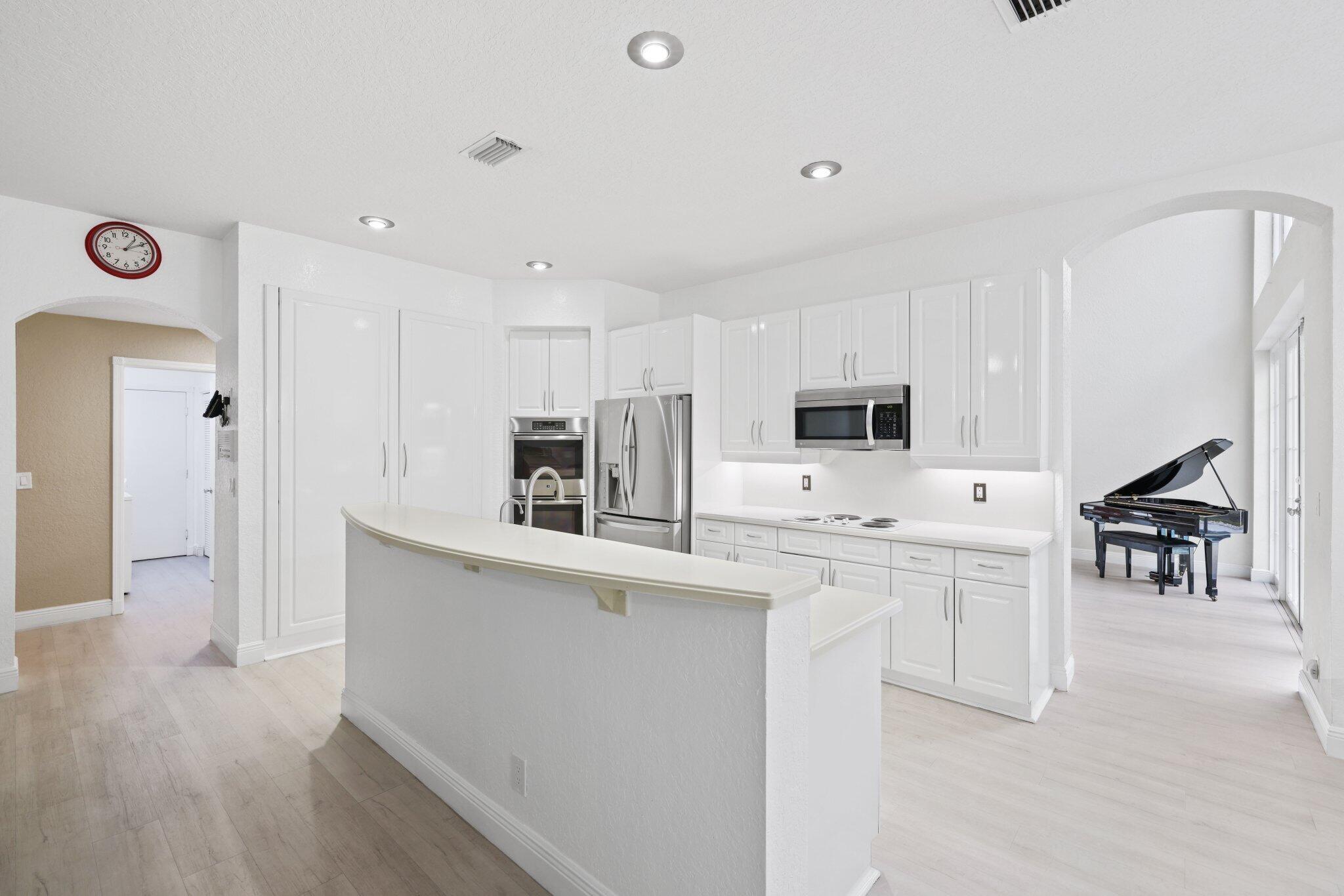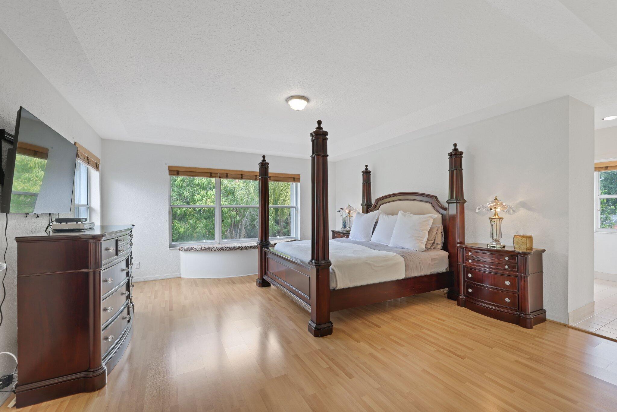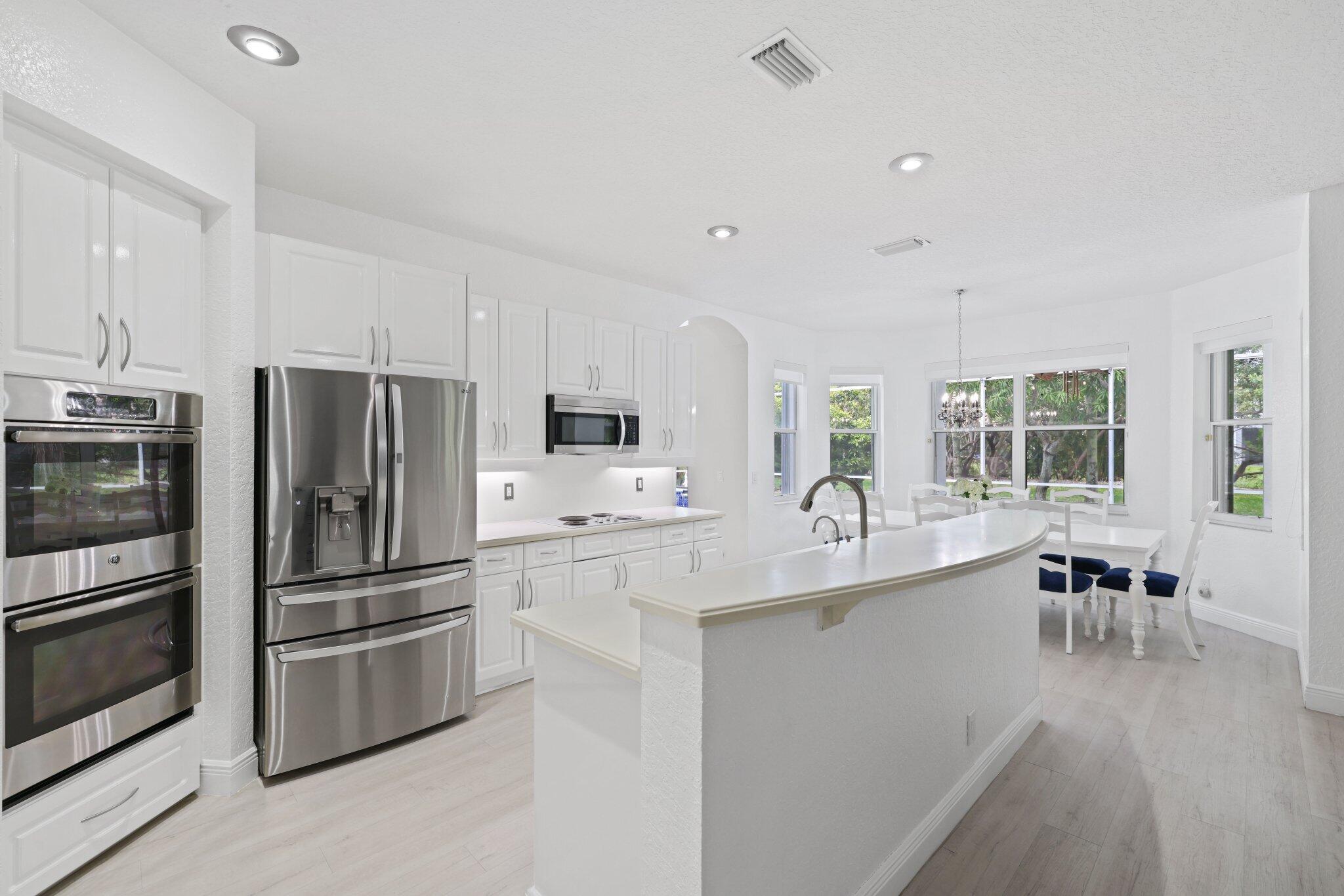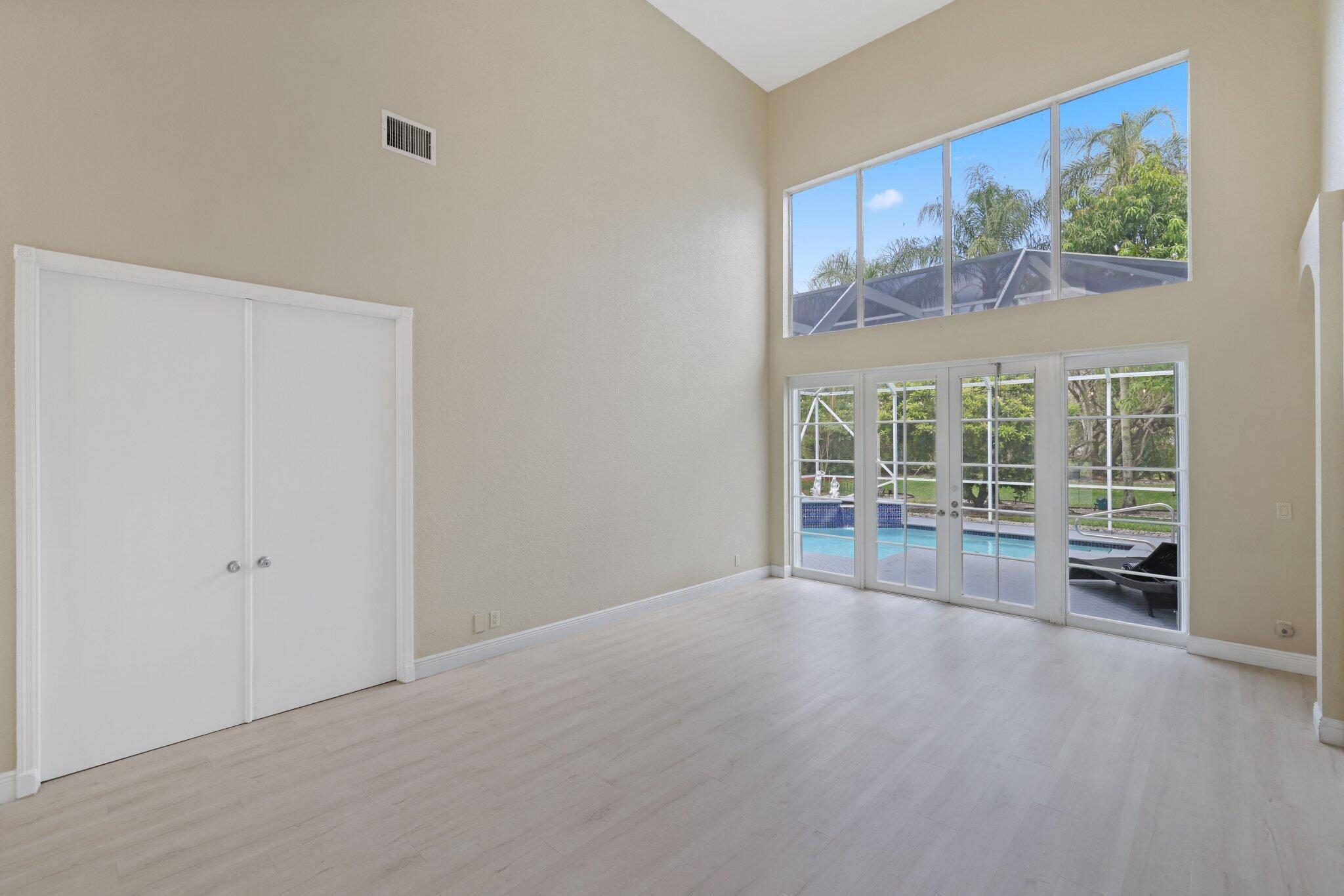 Welcome to this stunning 3,366 sq. ft., 5-bedroom + loft, 3.5-bath home in the highly sought-after, family-friendly community of The Shores at Boca Raton. Hitting the market for the first time, this home is nestled at the end of a peaceful cul-de-sac, offering both privacy and space, perfect for families. Featuring a new roof, accordion shutters, a spacious 3-car garage, upgraded flooring throughout, and a large kitchen with double ovens and ample room for cooking and entertaining, this home is designed for both comfort and functionality.Step inside to a grand entrance with soaring 20-foot ceilings, creating a bright and airy atmosphere. The first floor includes a versatile en suite bedroom with a cabana bath. The expansive screened-in patio, complete with a newly heated pool, is