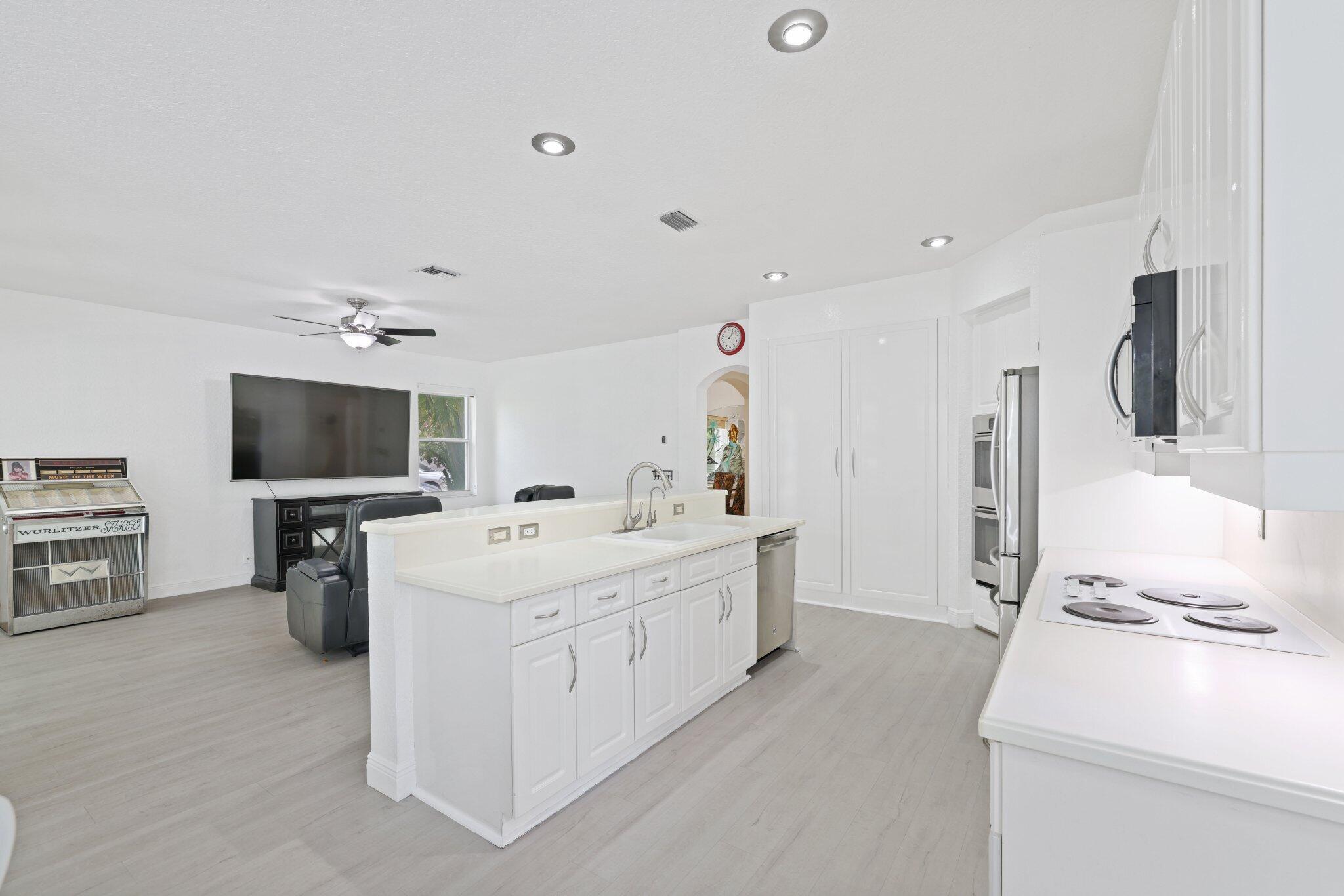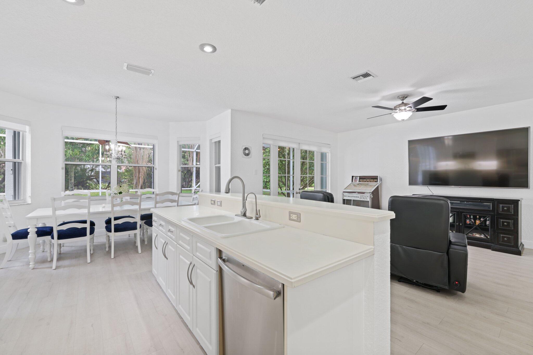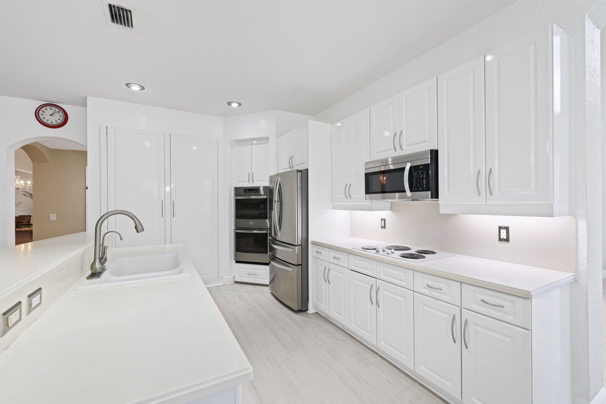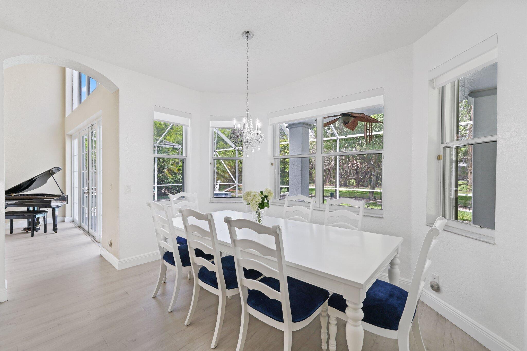 Welcome to this stunning 3,366 sq. ft., 5-bedroom + loft, 3.5-bath home in the highly sought-after, family-friendly community of The Shores at Boca Raton. Hitting the market for the first time, this home is nestled at the end of a peaceful cul-de-sac, offering both privacy and space, perfect for families. Featuring a new roof, accordion shutters, a spacious 3-car garage, upgraded flooring throughout, and a large kitchen with double ovens and ample room for cooking and entertaining, this home is designed for both comfort and functionality.Step inside to a grand entrance with soaring 20-foot ceilings, creating a bright and airy atmosphere. The first floor includes a versatile en suite bedroom with a cabana bath. The expansive screened-in patio, complete with a newly heated pool, is