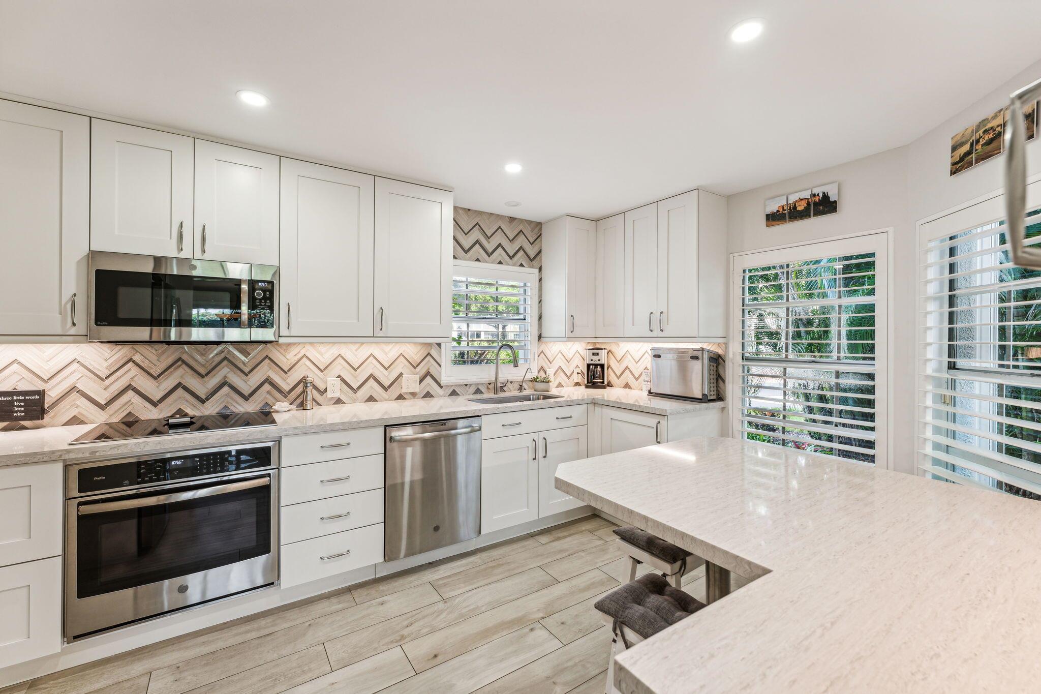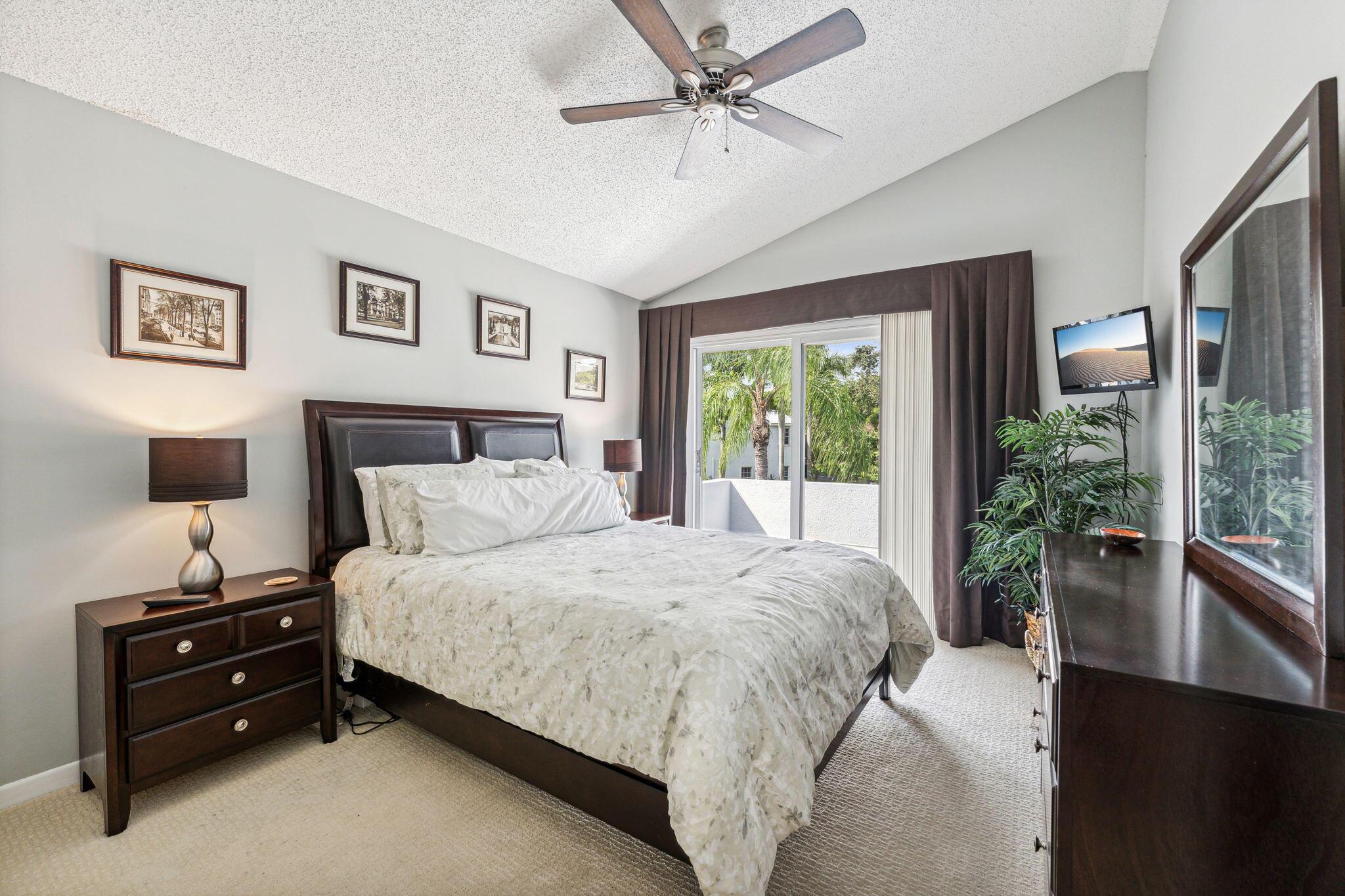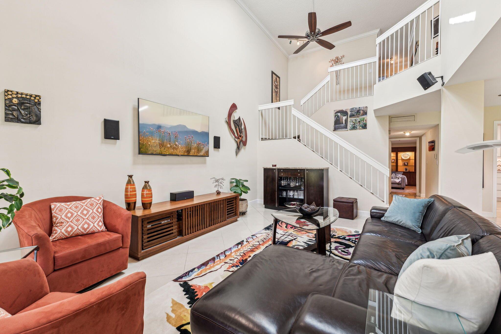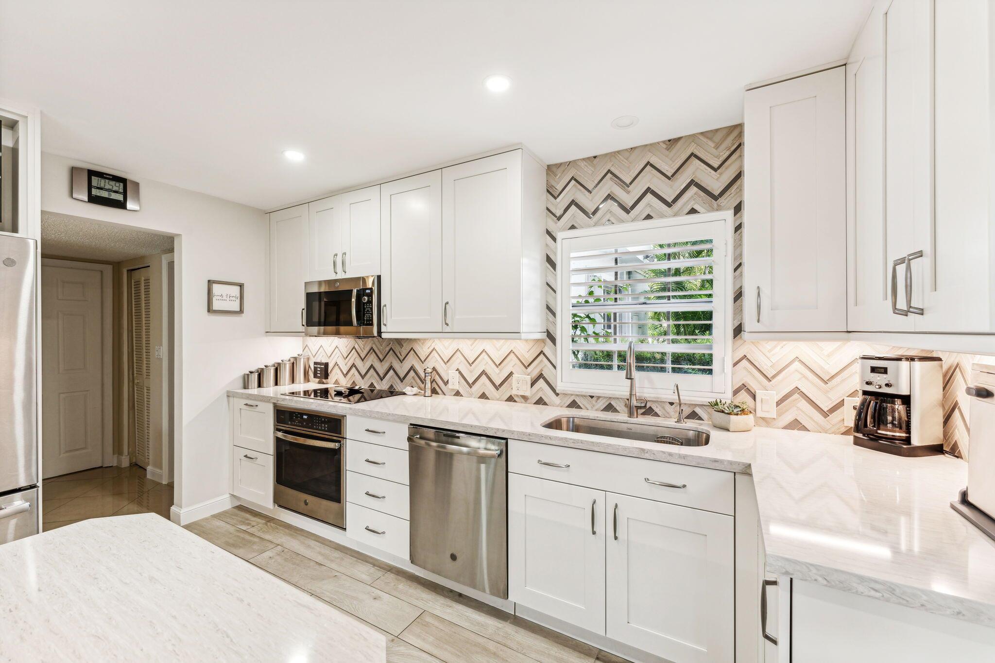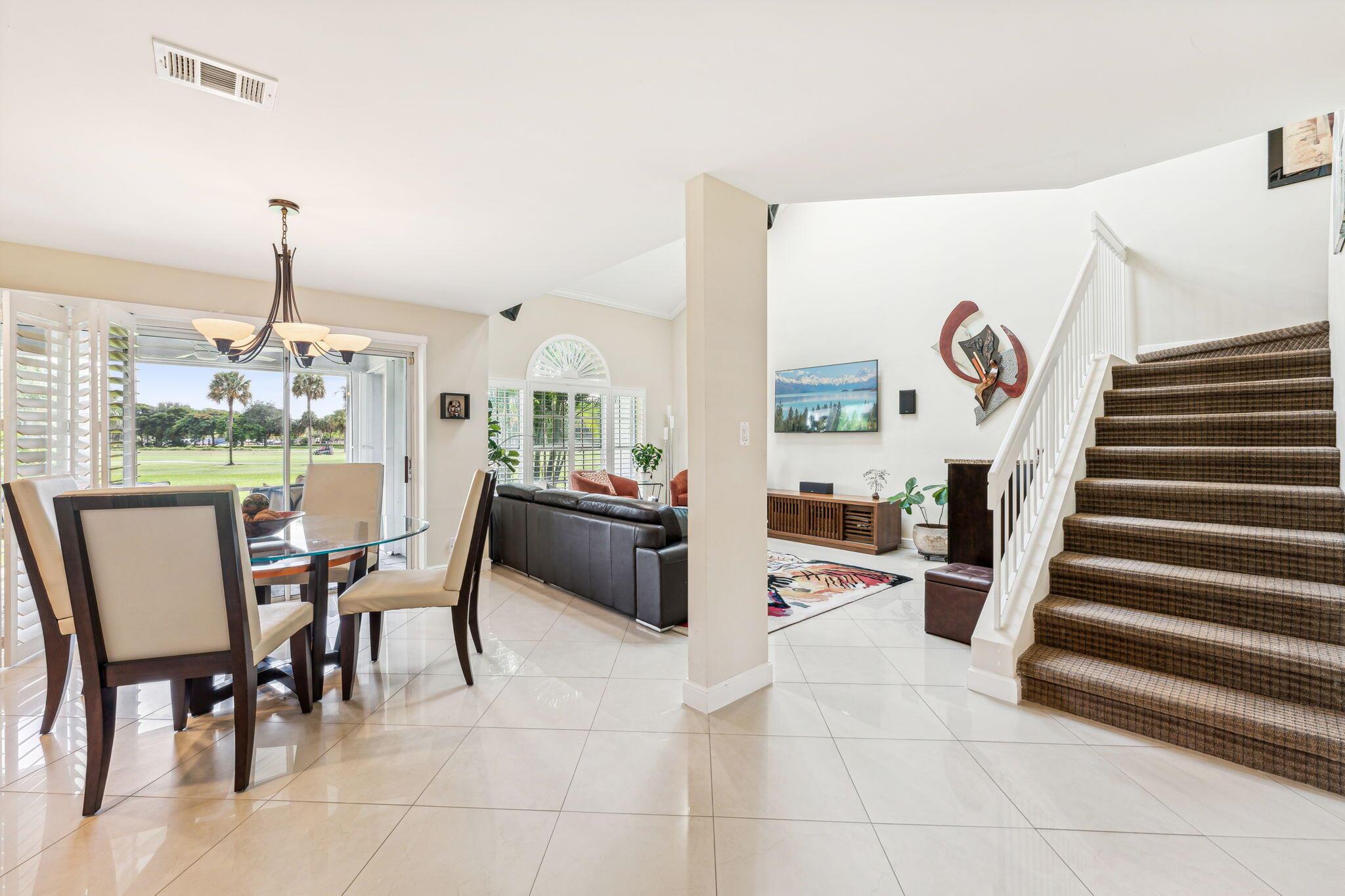 Discover this rarely available townhouse in the prestigious Boca Country Club, offering 3 spacious bedrooms and 2.5 beautifully renovated bathrooms. Embrace the luxury of country club living without membership fees! The home boasts new tile floors on the first level, elegant custom plantation shutters, and a modern kitchen featuring stainless steel appliances, quartz countertops, and soft-close shaker cabinets. Upstairs, enjoy the vaulted ceilings in oversized bedrooms, including the primary suite with a private balcony, and an opulent bathroom with a large shower, soaking tub, and double sinks. Accordion shutters ensure safety, and the converted garage offers additional living space. All this, paired with breathtaking golf course views. Live the dream in Boca!
