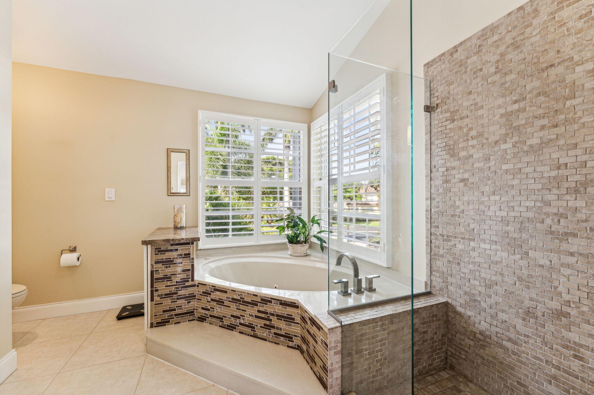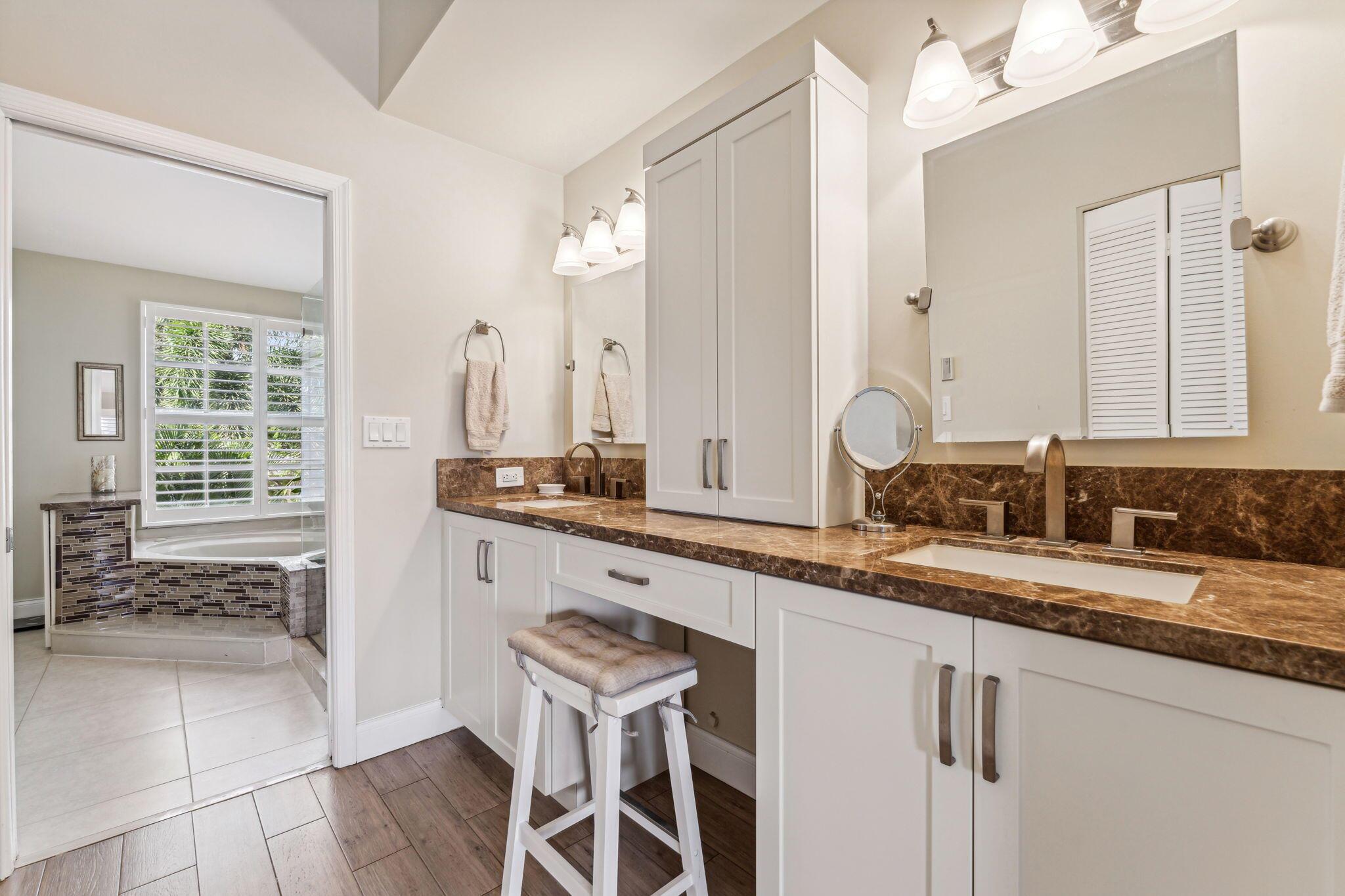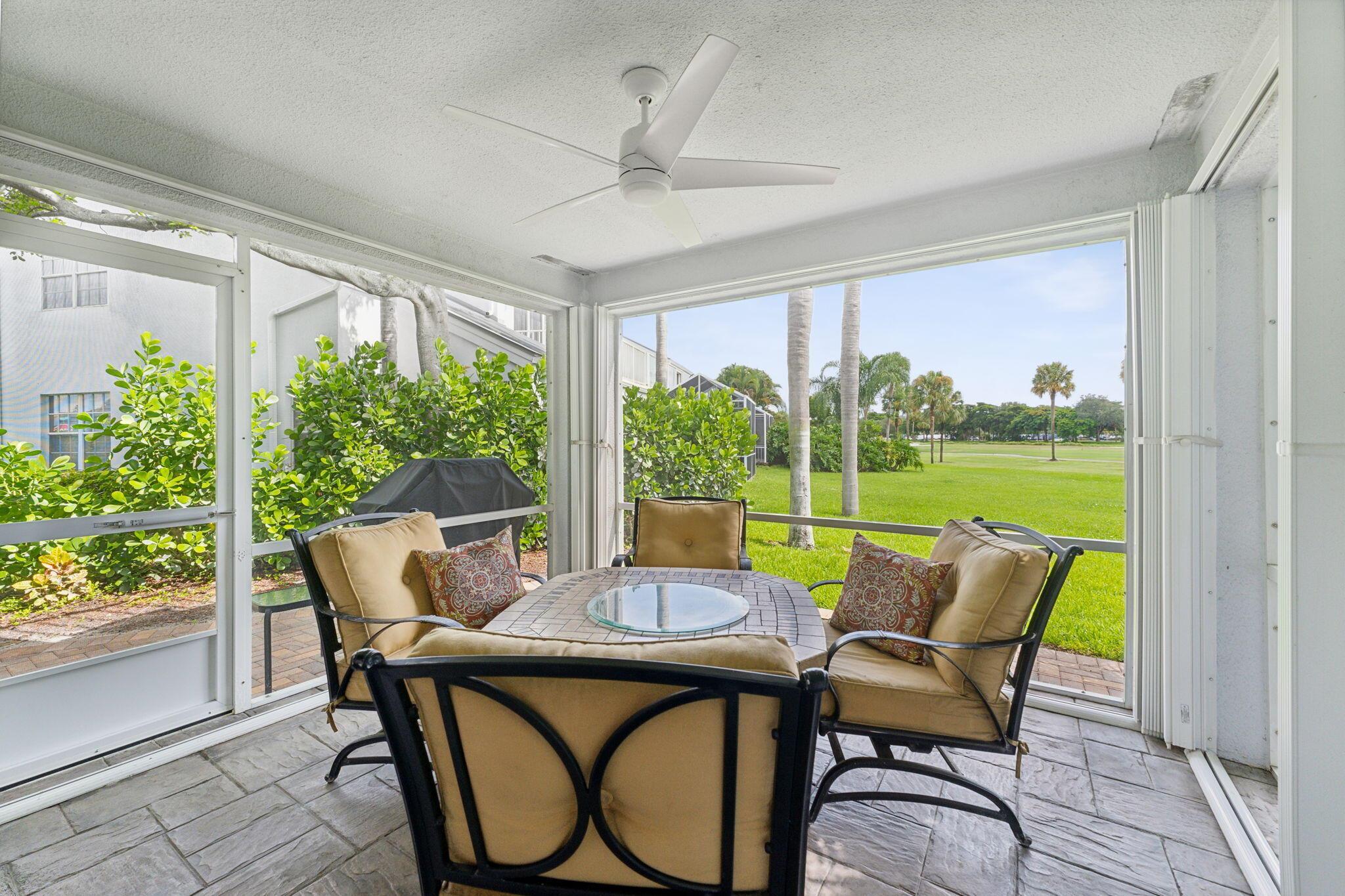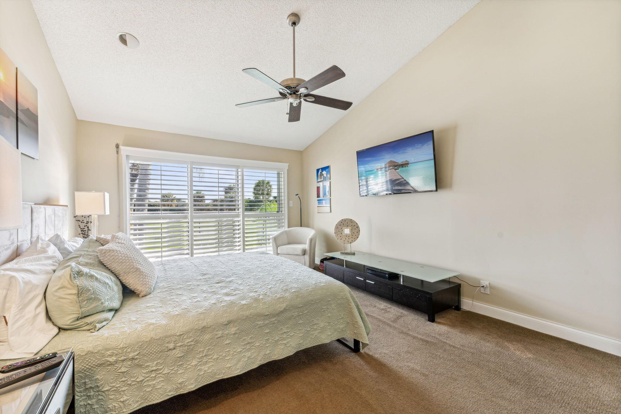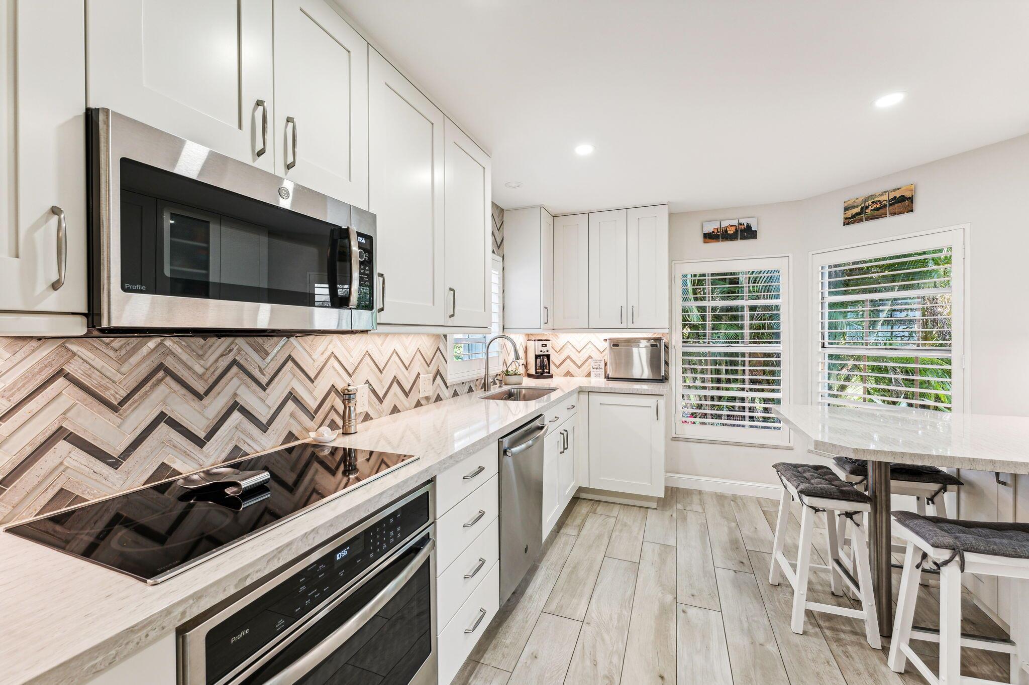 Discover this rarely available townhouse in the prestigious Boca Country Club, offering 3 spacious bedrooms and 2.5 beautifully renovated bathrooms. Embrace the luxury of country club living without membership fees! The home boasts new tile floors on the first level, elegant custom plantation shutters, and a modern kitchen featuring stainless steel appliances, quartz countertops, and soft-close shaker cabinets. Upstairs, enjoy the vaulted ceilings in oversized bedrooms, including the primary suite with a private balcony, and an opulent bathroom with a large shower, soaking tub, and double sinks. Accordion shutters ensure safety, and the converted garage offers additional living space. All this, paired with breathtaking golf course views. Live the dream in Boca!