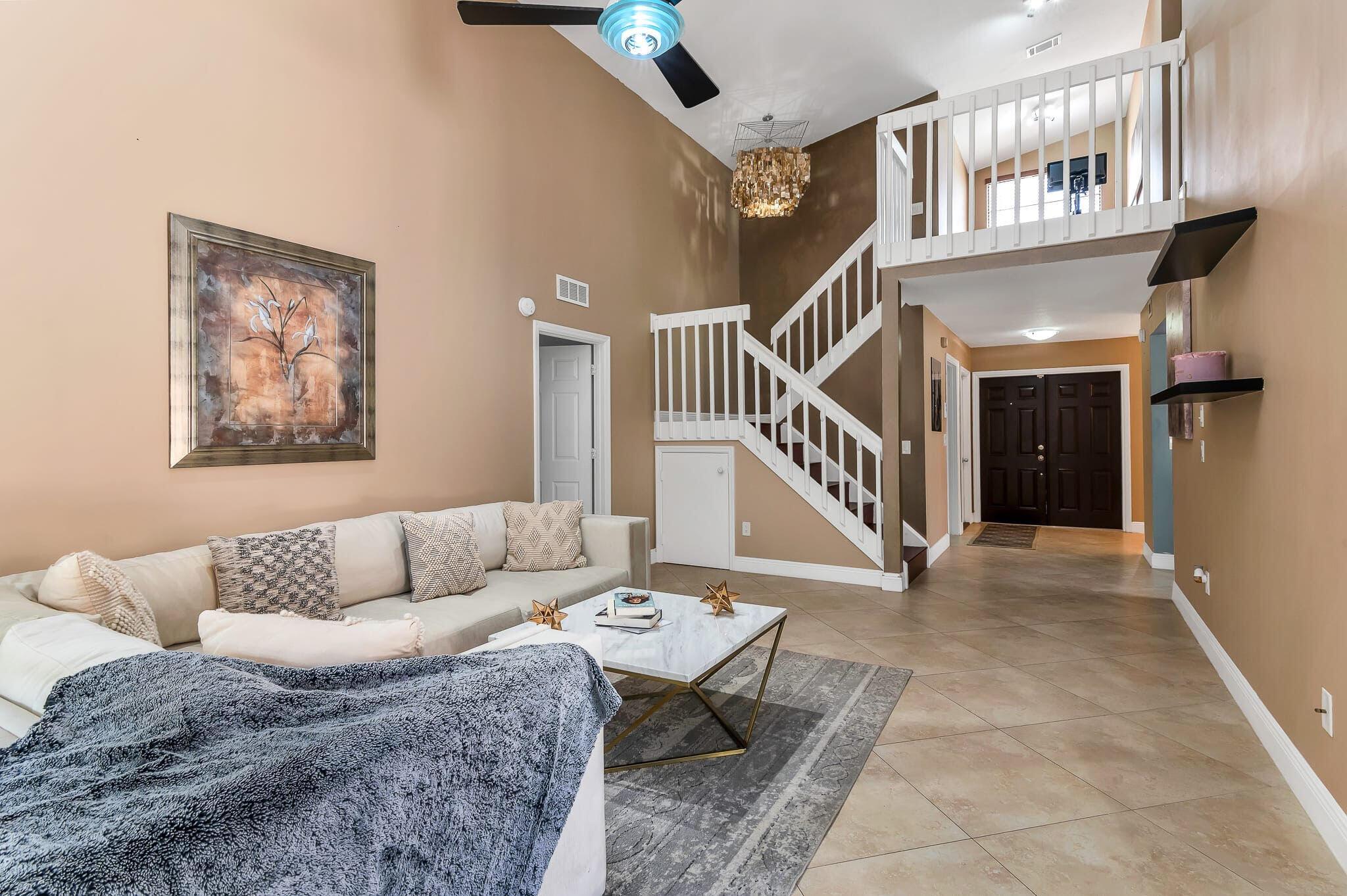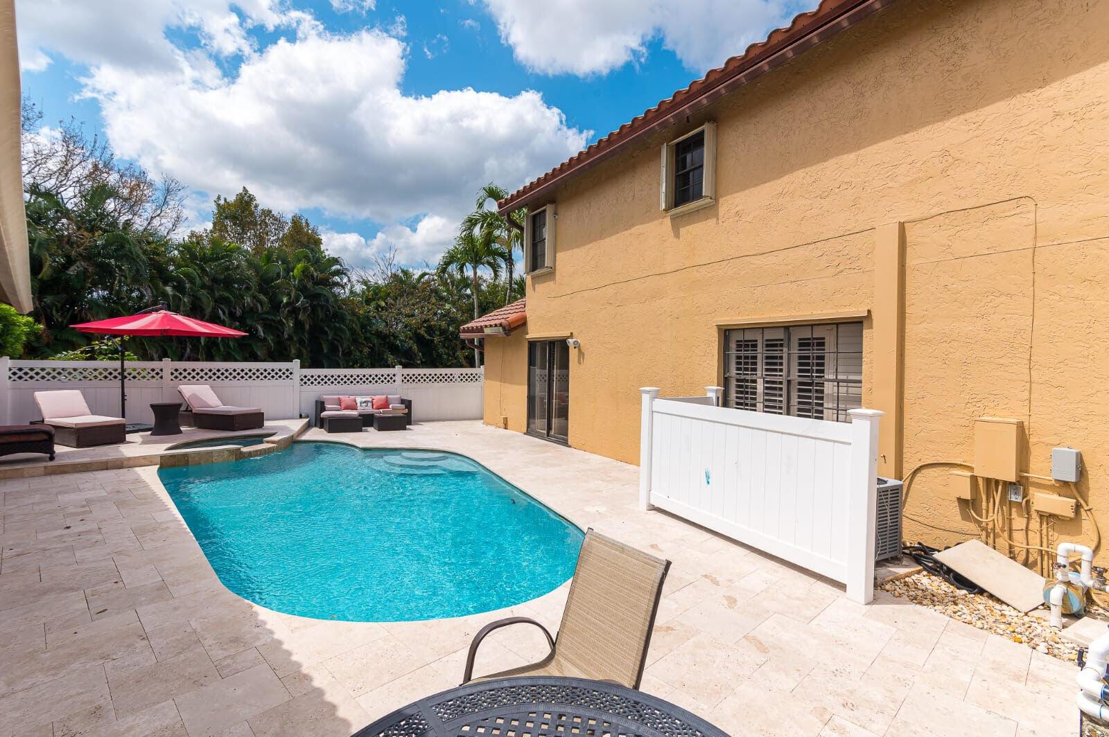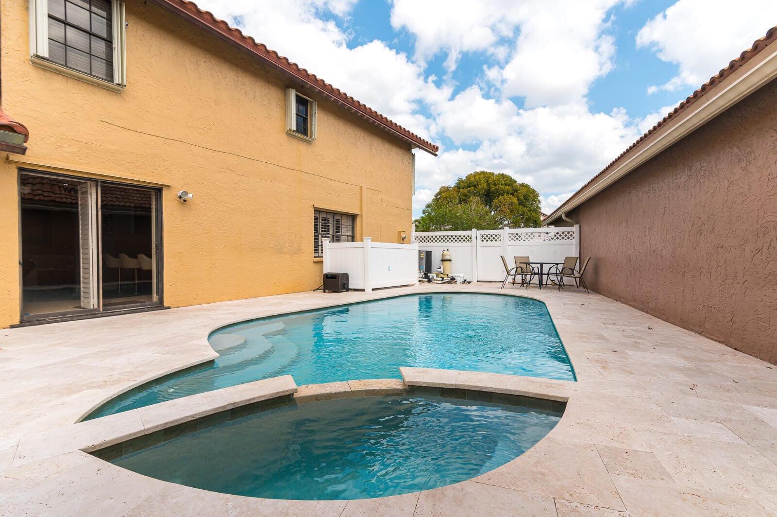 Can be rented RIGHT AWAY! Roof 2012. This desirable floor plan offers a formal living room, formal dining room, main bedroom on the first floor, vaulted ceilings, remodeled kitchen with S/S appliances & breakfast counter, loft area, screened patio w/ tavertine pavers, private pool and fenced yard & hurricane protection, partial impact windows. T. 2 large bedrooms upstairs Pool has newer diamond brite finish, pool tile, salt system& heat pump. All A-Rated Schools, Community center features Pickle Ball Courts a Jr Olympic Heated pool for winter, soccer, fitness center tennis & basketball. If having all A+ rated schools isn't enough you are walking distance from Burt Aaronson South County Regional Park