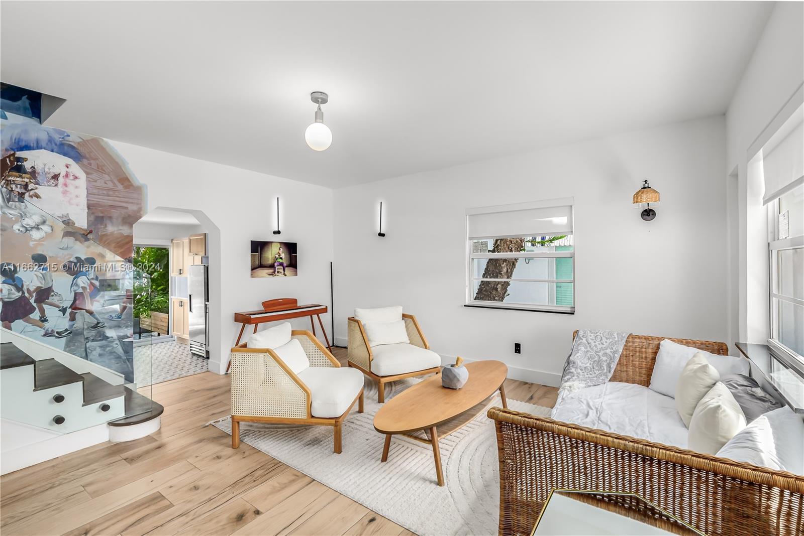 This charming 4-bedroom, 3.5-bathroom Mediterranean-style single-family home, originally built in 1936, has been beautifully renovated with modern industrial design elements. Nestled on a peaceful, tree-lined cul-de-sac, the home is just steps from the iconic Flamingo Park, where you can enjoy an Olympic-size swimming pool, basketball and tennis courts, and an outdoor gym. Perfectly located, it's only a few blocks from the upscale shopping and fine dining of world-famous Lincoln Road and Ocean Drive. Whether you prefer a leisurely walk or a bike ride, you're just moments away from the pristine blue waters of South Beach. This rare gem, situated on the highly sought-after Española Way, offers the chance to experience the origins of Art Deco in the vibrant heart of Miami Beach.