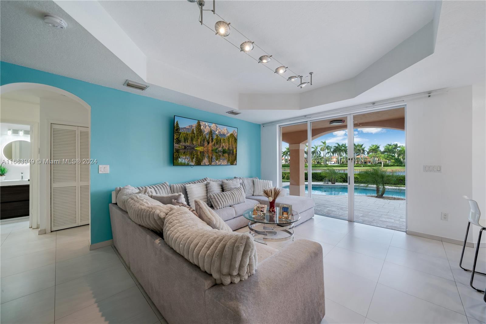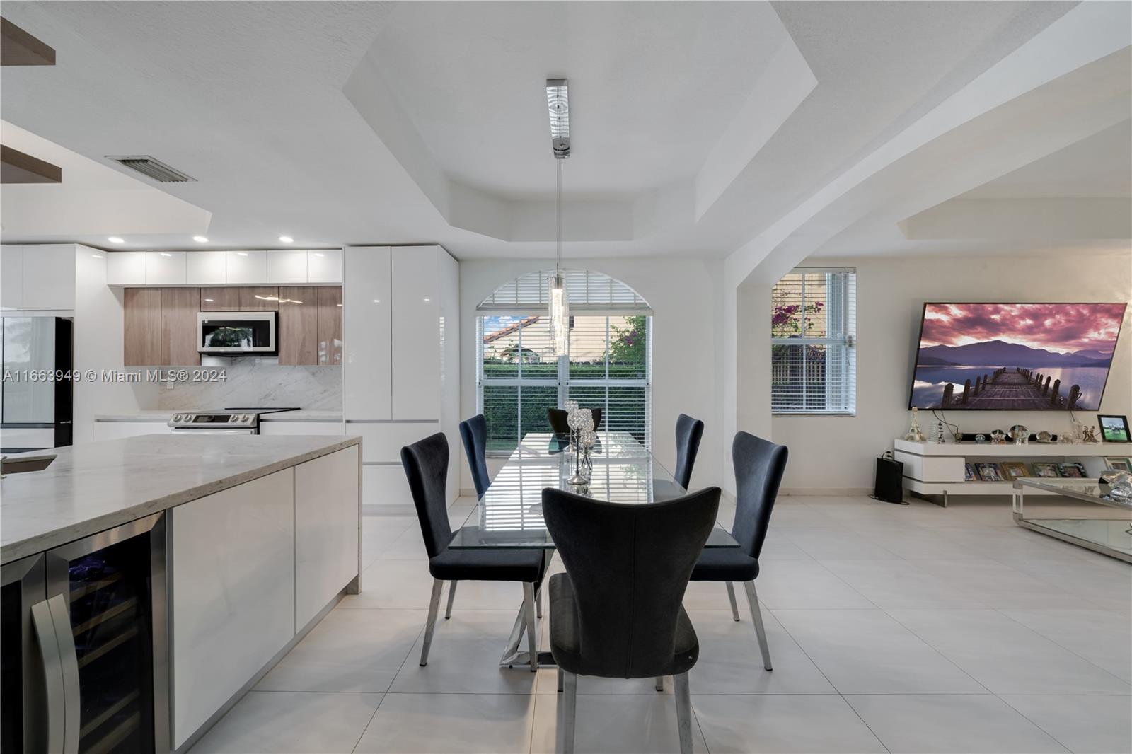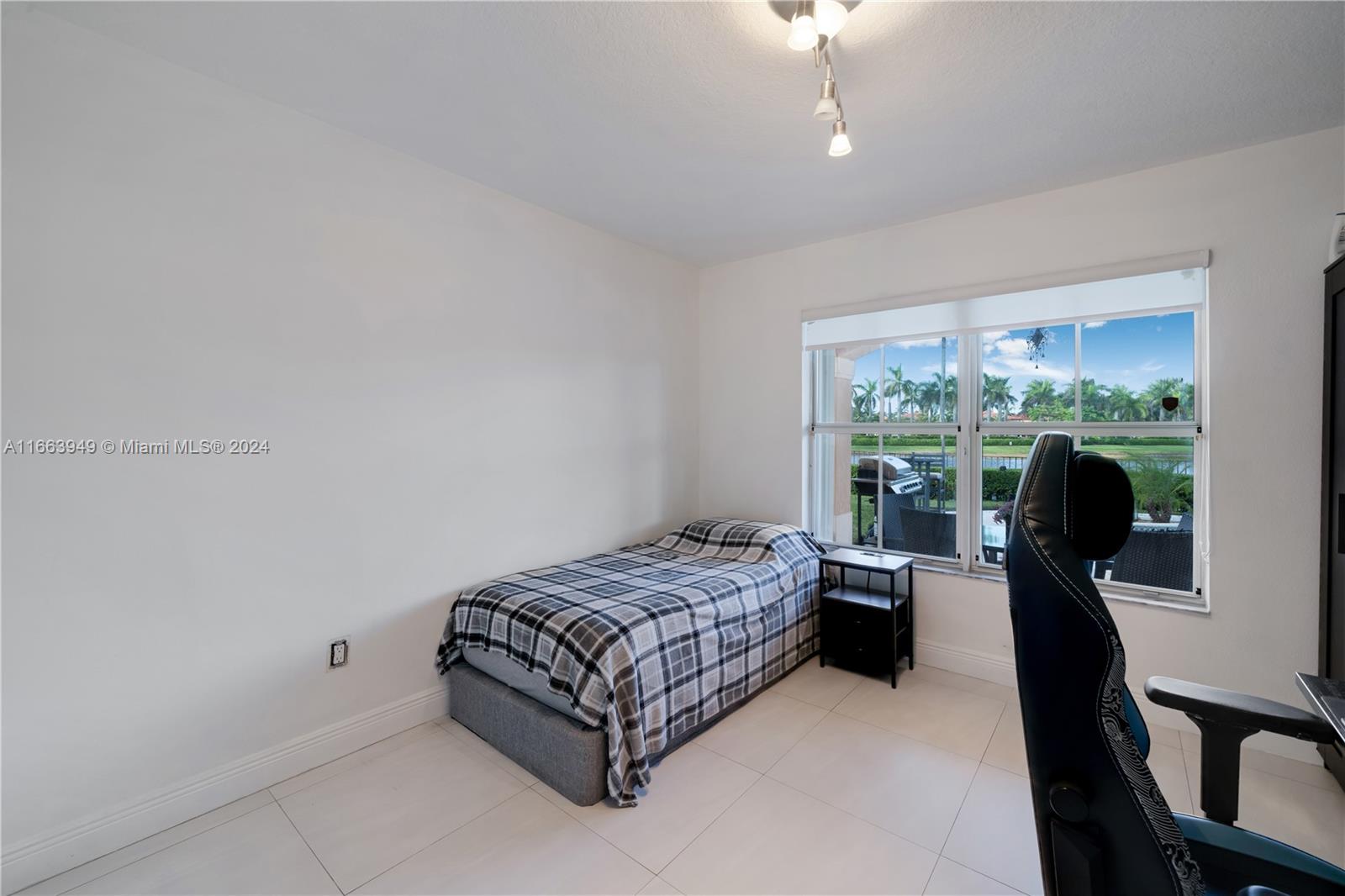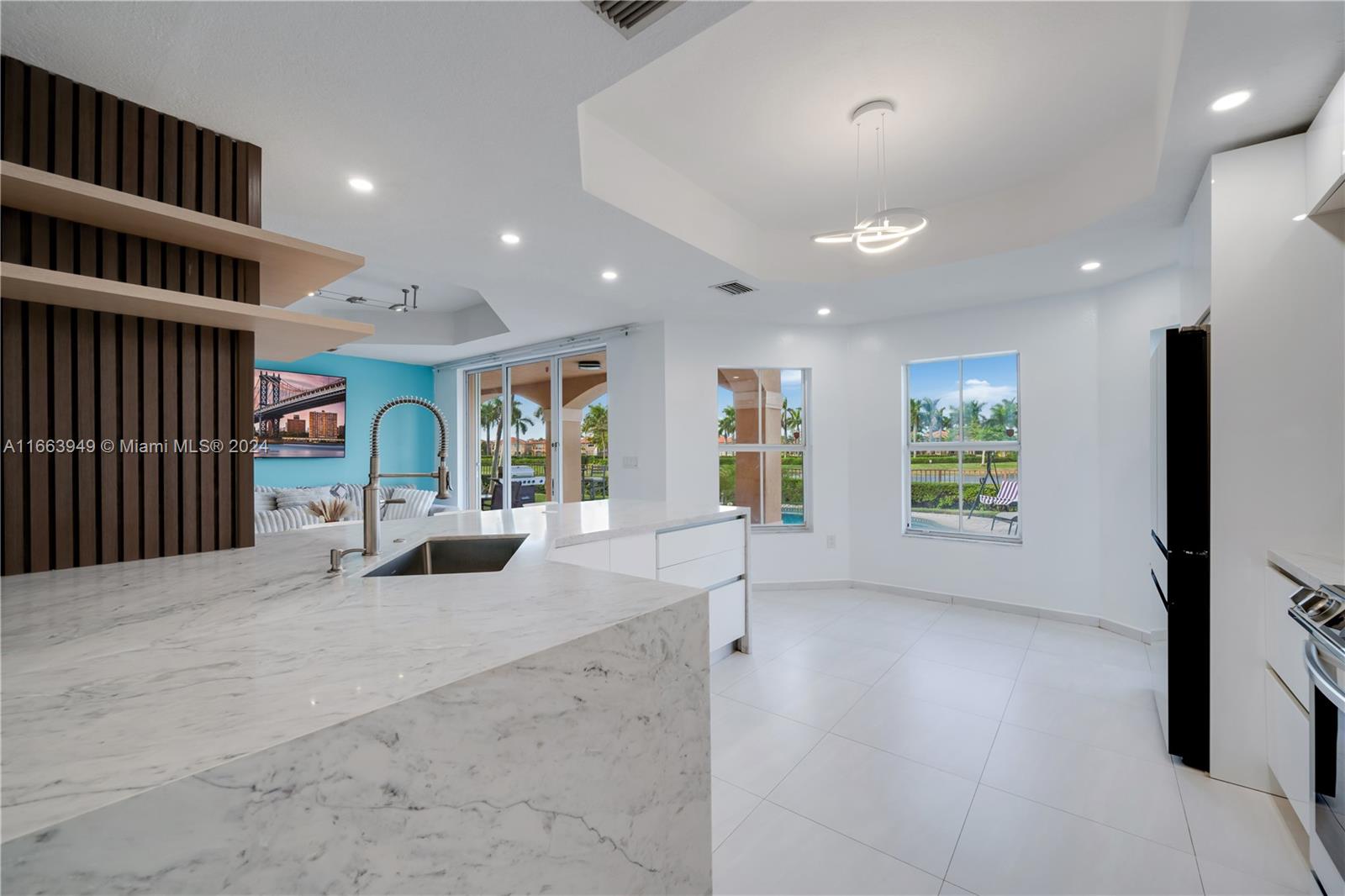 Expansive 8,109 s/f lot, offering breathtaking lake views, palm-lined surroundings, 2-car garage and an extended paver driveway. With 5 bedrooms and 4 bathrooms across 4,070 total s/f, this is the largest model in the community. The open-concept first floor boasts elegant Italian tile, a convenient laundry area, and a beautifully remodeled kitchen with sleek stainless steel appliances and quartz countertops. Second floor features a cozy living room/den, custom closets, and rich hardwood floors. Enjoy year-round comfort with three independent a/c units. Step outside to a large terrace with a uniquely shaped saltwater pool, complete with a CircuPool salt chlorinator system, all framed by stunning lake views and beautifully manicured ficus hedges and palm trees.