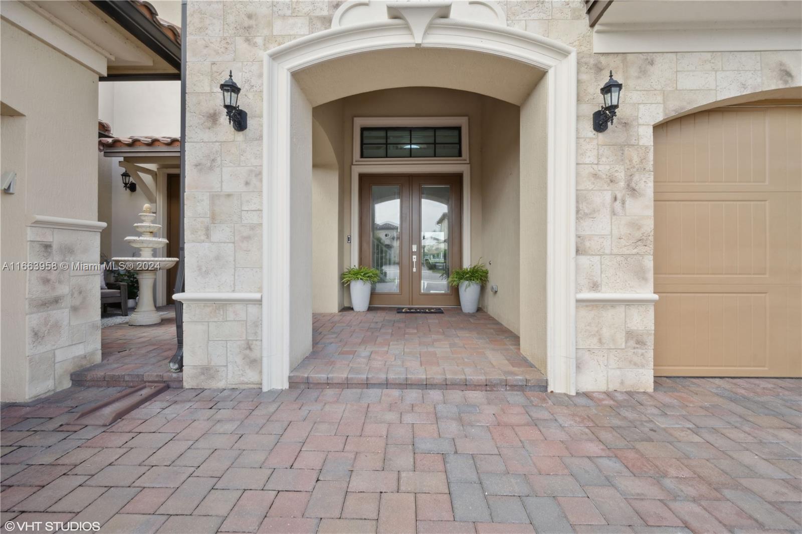 Experience this stunning and tastefully upgraded lakefront pool home in the desirable Parkland Bay community. It boasts a charming courtyard, a heated resort-style saltwater pool with a spacious spa overlooking the lake, and a summer kitchen. The marble deck and artificial turf create a roomy backyard perfect for outdoor activities. Step inside to be captivated by the high ceilings and two exquisite crystal chandeliers. The first floor features a formal dining room that flows seamlessly into an open-concept family room and kitchen, with an expansive covered terrace ideal for entertaining. A first-floor bedroom is perfect for guests, while the remaining four bedrooms are located on the second level.