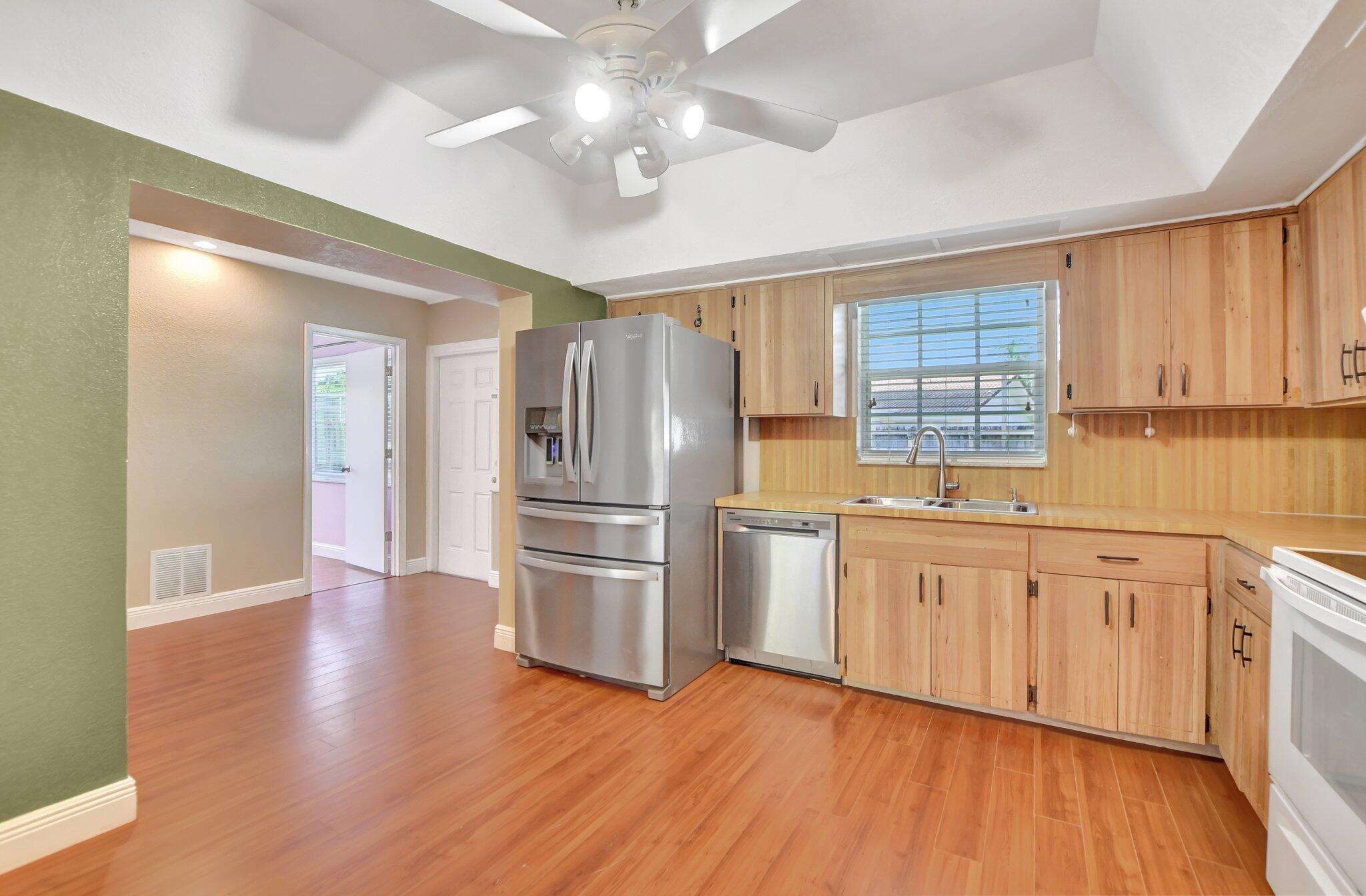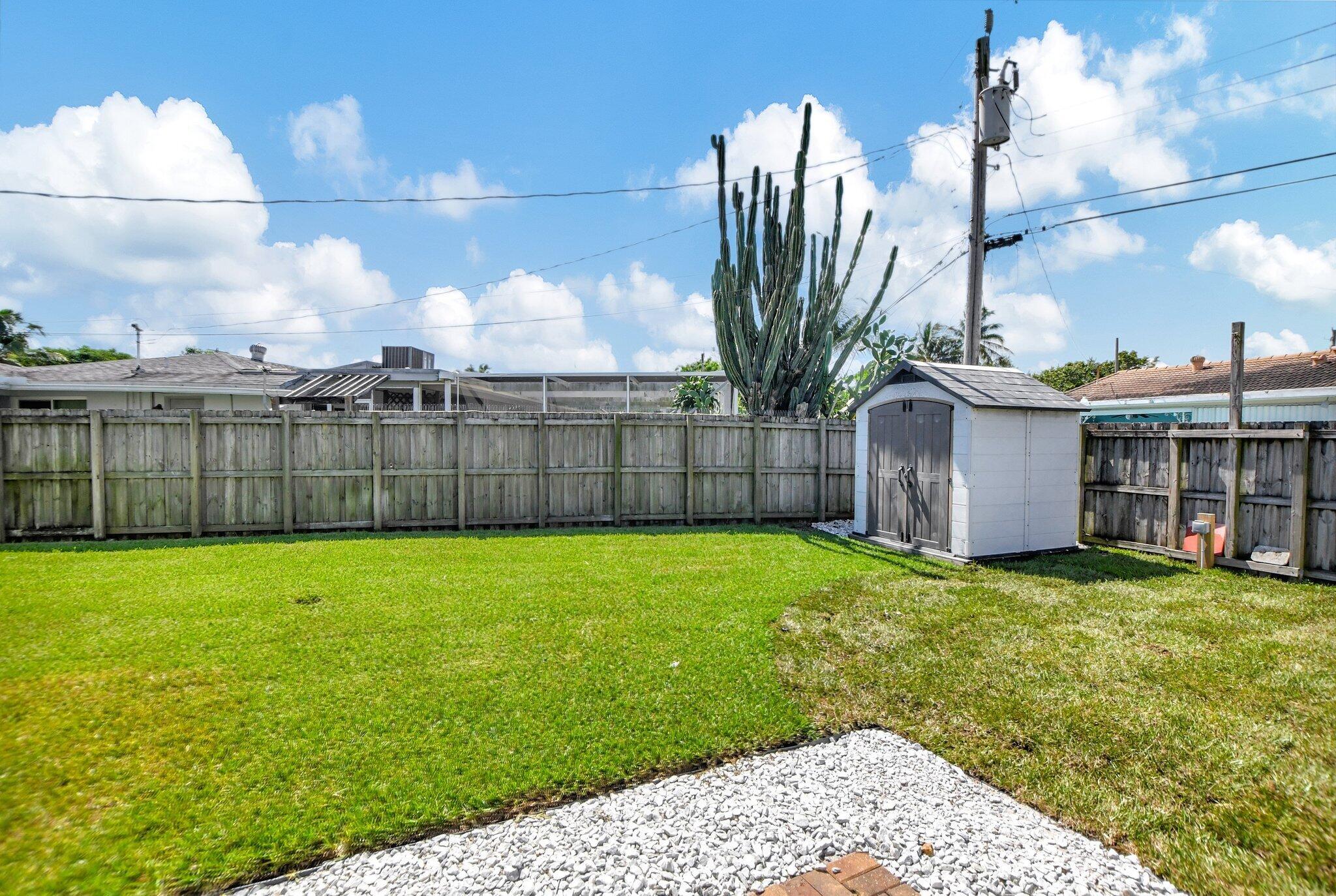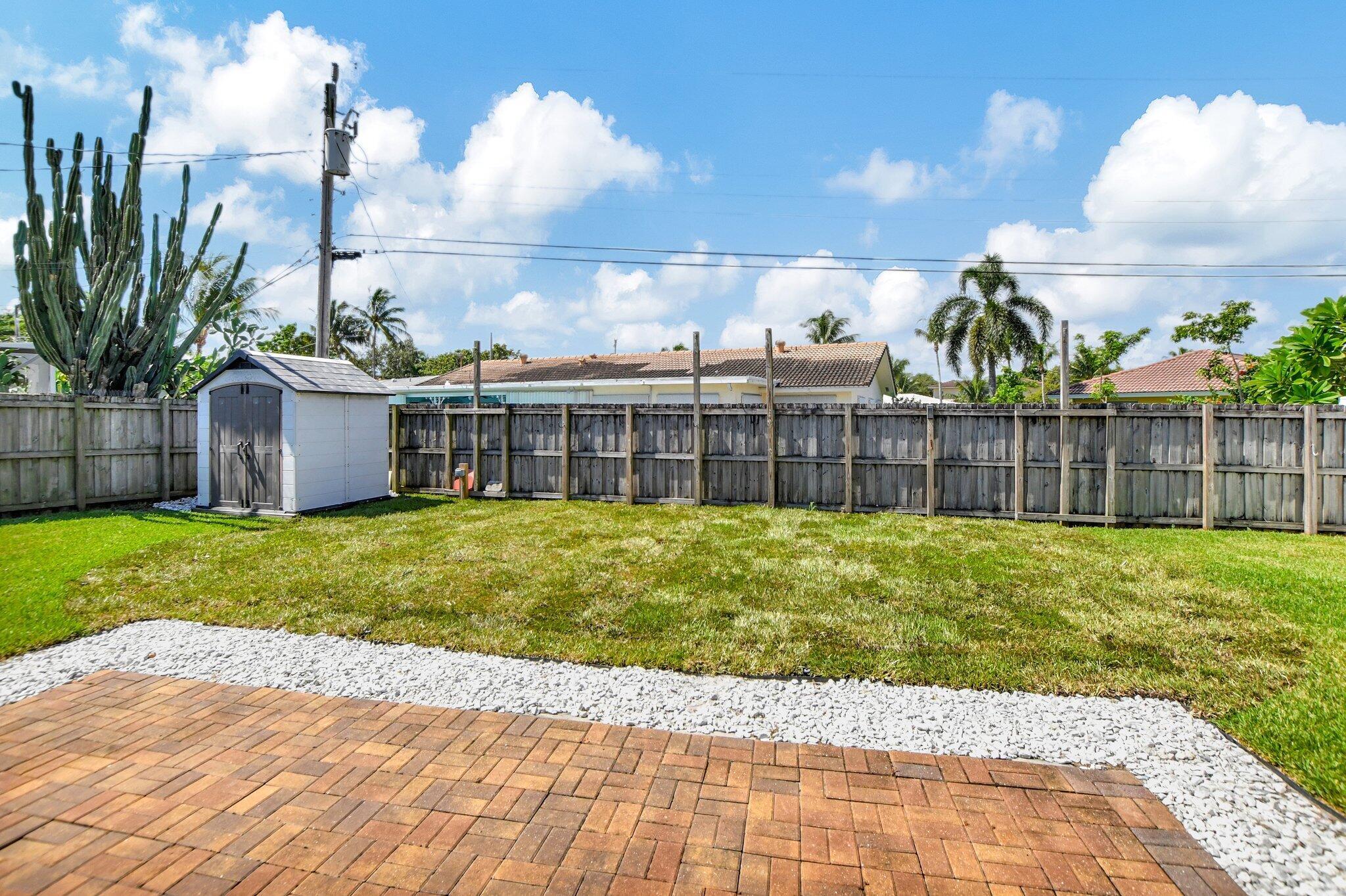 Welcome Home! Amazing east boca location; close to schools, beaches, restaurants, shopping, mizner, brightline, airports and more. This home is located in the highly sought after Addison Mizner school district. Exterior features include: a large fenced yard with room on the side for a boat/RV, nice front and back yard porch, fresh sod, quiet street, circular drive, 7x7 storage shed, accordion hurricane shutters, 1 car garage is partially converted & can easily be changed back. Interior features include: open floorplan, laminate wood floors, Stainless Fridge and dishwasher (2023), Hot water heater (2024), attic insulation (2023), inside laundry room w/ sink, Internet hardwired with and extender in the office. Tons of potential! Make this home your own.