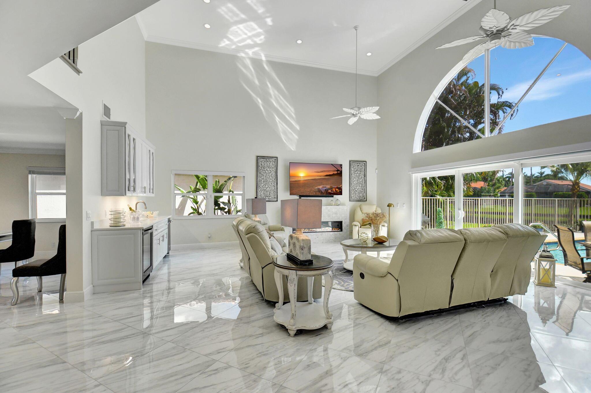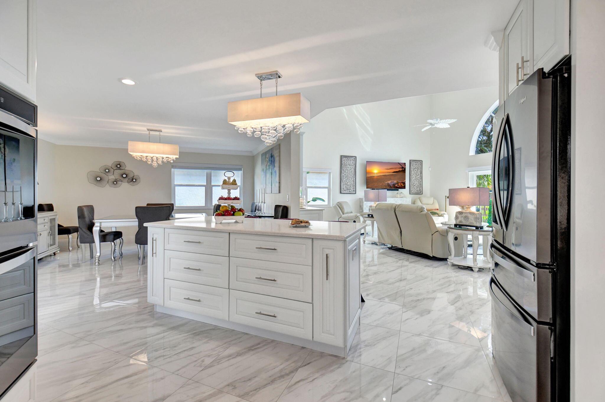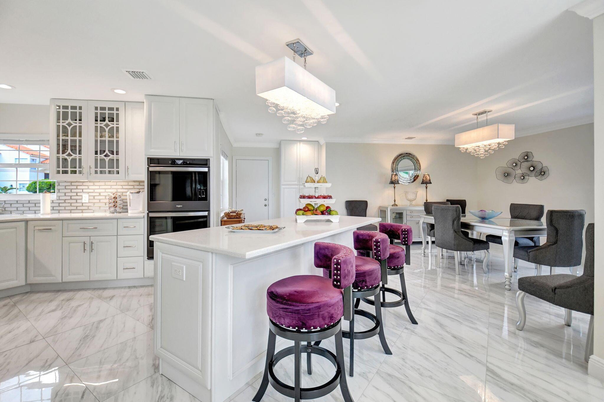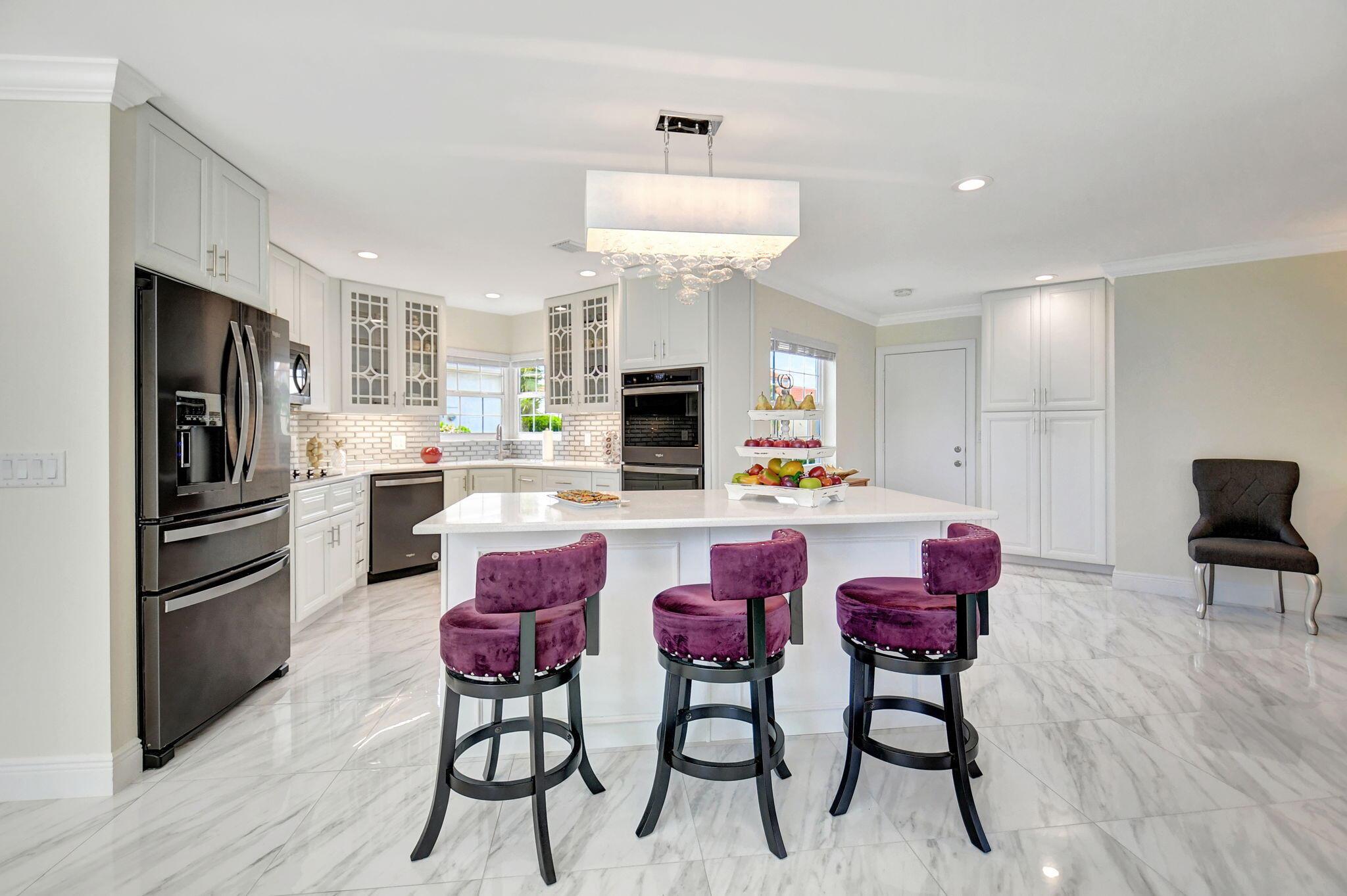 Completed Renovation: November 2022 This beautifully transformed 4/2.1 family home is 2680 SF. The home has undergone a total gut renovation, making it feel brand new from the studs to the finishes. Enjoy modern living with the peace of mind that comes from new warranties on many upgrades! Key Features: Impact Windows & Doors: New impact windows, front door, and sliding doors on both floors. Note: The curved window in the living room is non-impact but has been coated for added durability. Plumbing & Electrical: All new plumbing and electrical wiring throughout. Two new electrical panels (200 AMPs each) ensure ample power--perfect for modern living! Luxurious Kitchen: Redesigned white kitchen featuring high-quality cabinets, large island, and sleek black flat finish appliances. (see more)