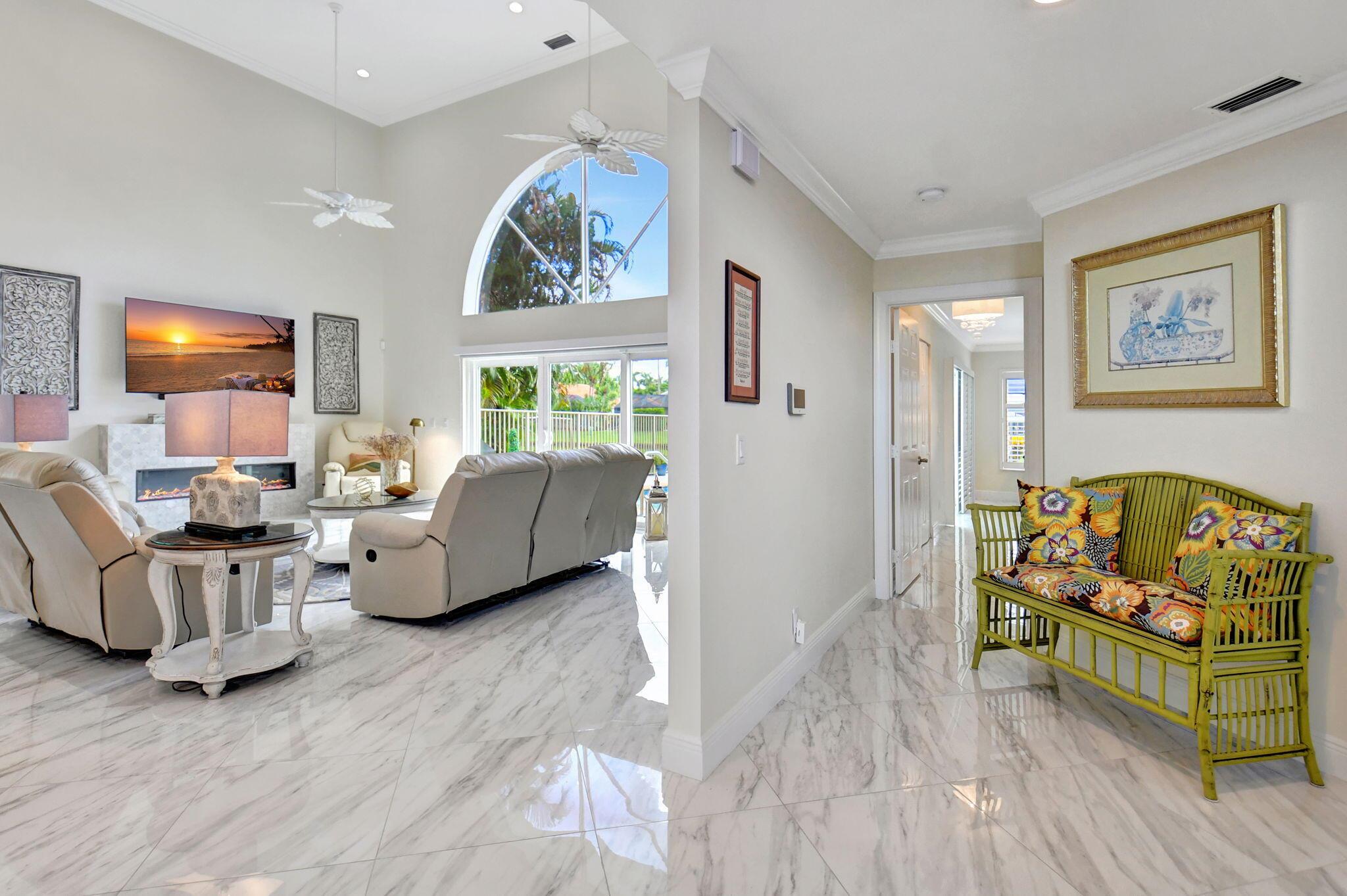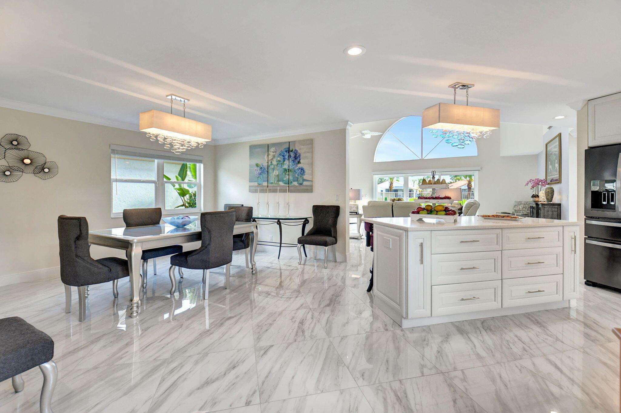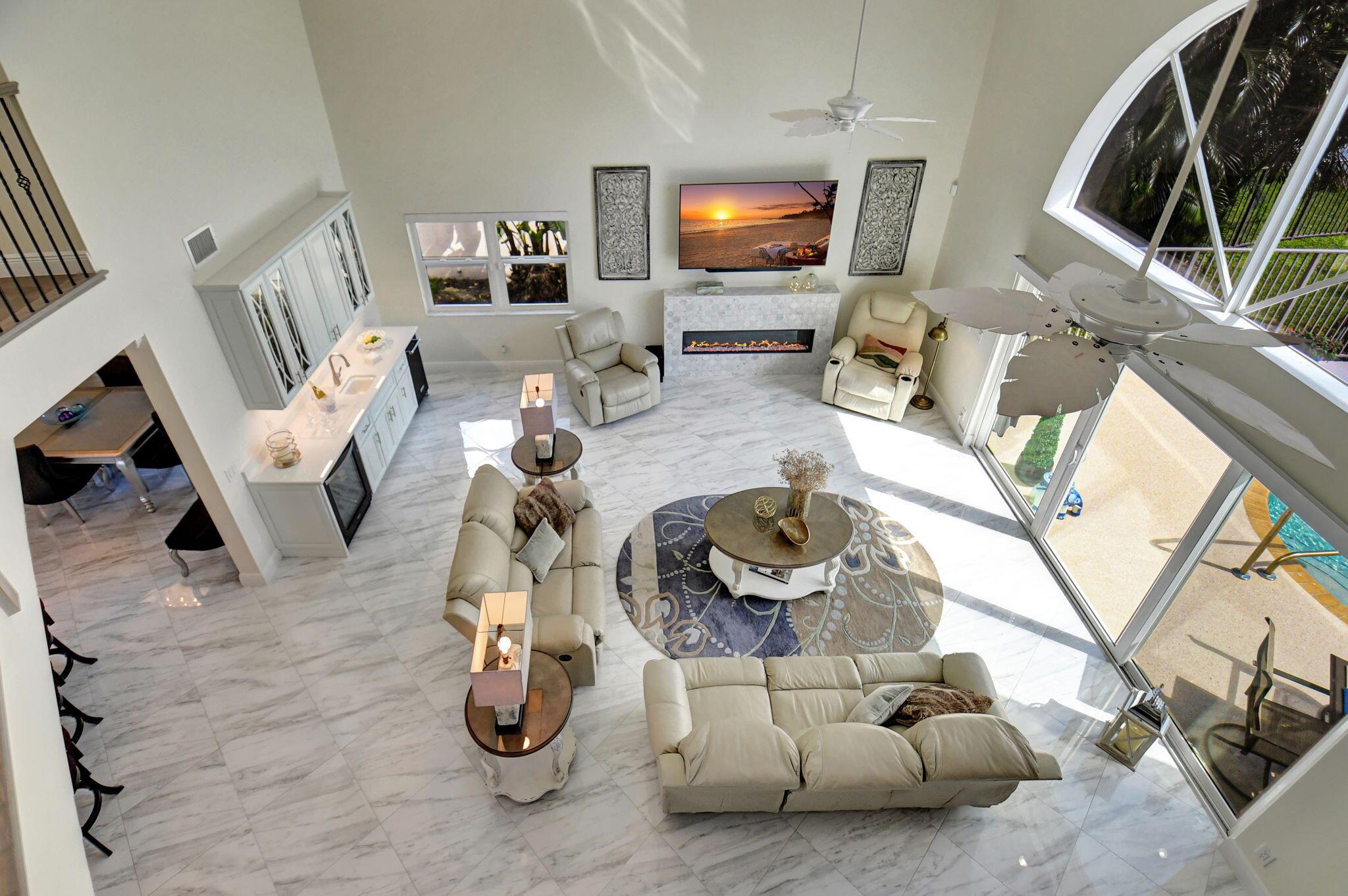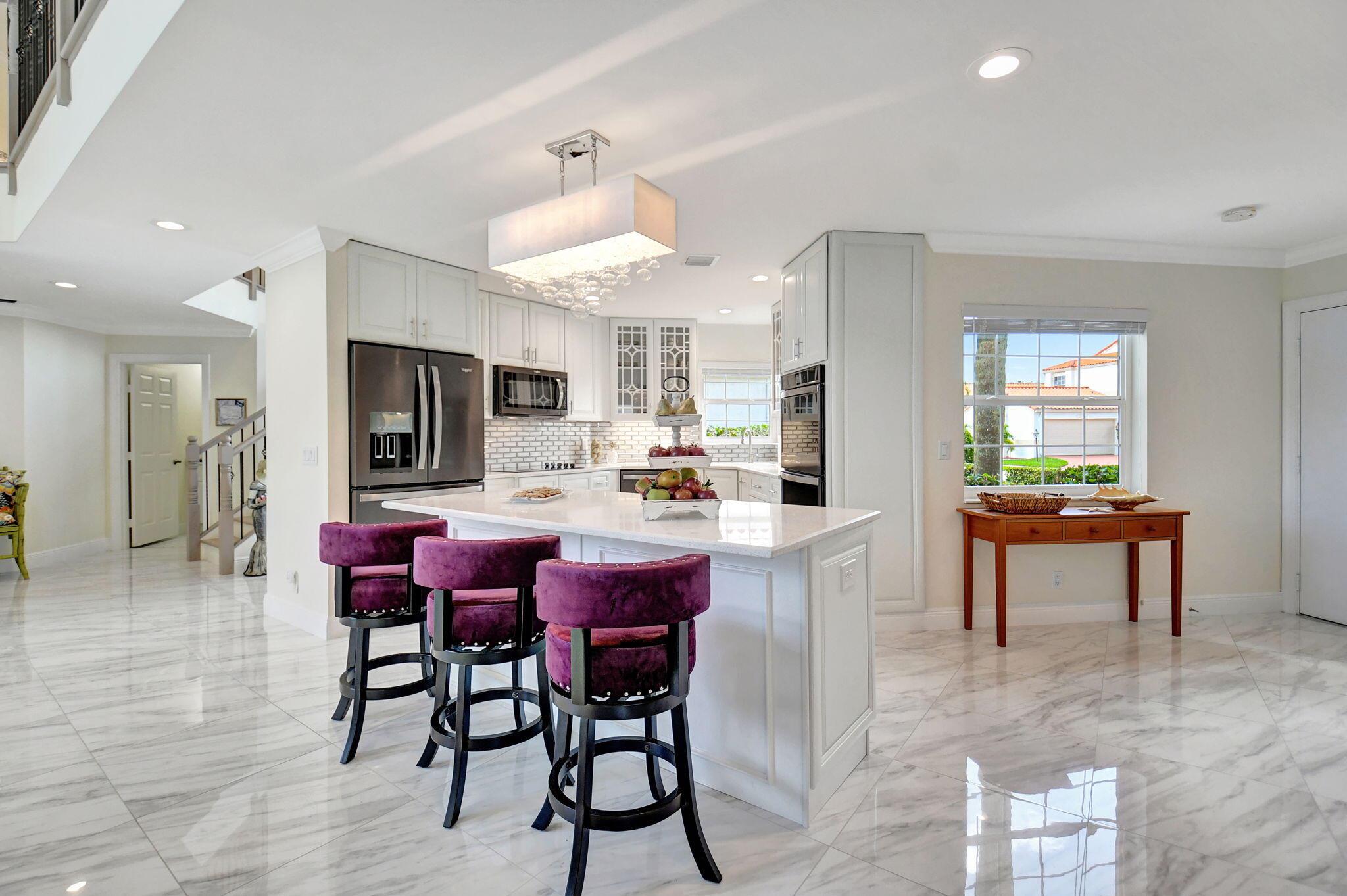 Completed Renovation: November 2022 This beautifully transformed 4/2.1 family home is 2680 SF. The home has undergone a total gut renovation, making it feel brand new from the studs to the finishes. Enjoy modern living with the peace of mind that comes from new warranties on many upgrades! Key Features: Impact Windows & Doors: New impact windows, front door, and sliding doors on both floors. Note: The curved window in the living room is non-impact but has been coated for added durability. Plumbing & Electrical: All new plumbing and electrical wiring throughout. Two new electrical panels (200 AMPs each) ensure ample power--perfect for modern living! Luxurious Kitchen: Redesigned white kitchen featuring high-quality cabinets, large island, and sleek black flat finish appliances. (see more)