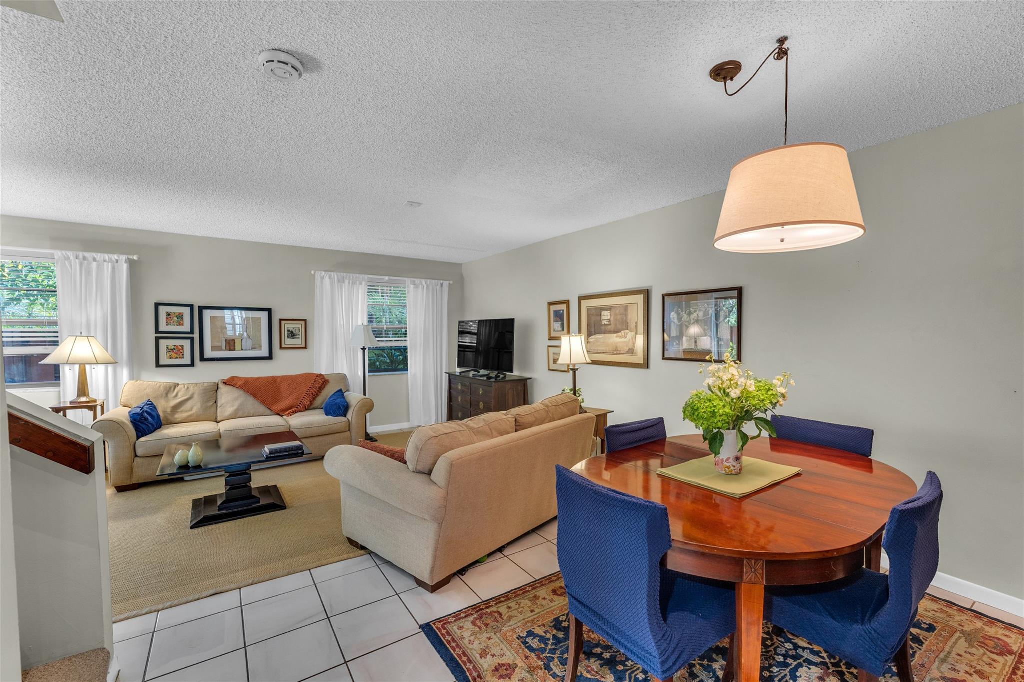 Rarely available corner unit in Spanish Springs -- 3 bedrooms and 2.5 bathrooms. This unit has a sweet patio area AND a back yard. Kitchen renovated in 2020, new AC in 2022, new roof on the building in 2024. Bedrooms upstairs, 2 have walk-in closets. Townhome protected with accordion shutters. Full size washer & dryer inside the home. Unit comes with 2 assigned parking spaces. Many dogs/support animals in the community. Spanish Springs Townhomes has mature tropical landscaping, a lovely pond setting, Clubhouse, and Pool. Monthly HOA fee is $609 includes reserves. Easy to get to Wilton Manors just up NE 4 Ave/Wilton Drive, and only 20 minutes drive to Fort Lauderdale airport.