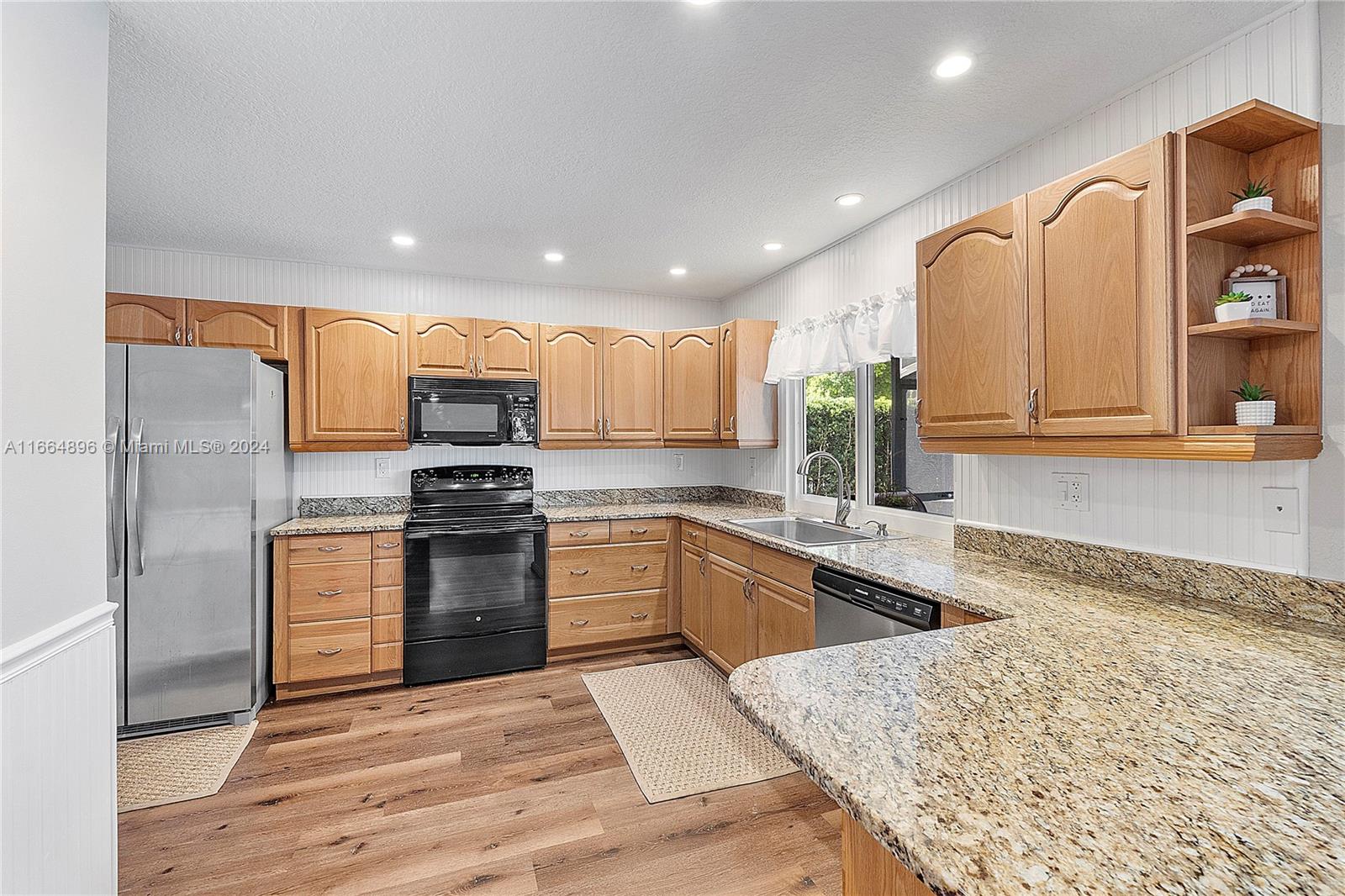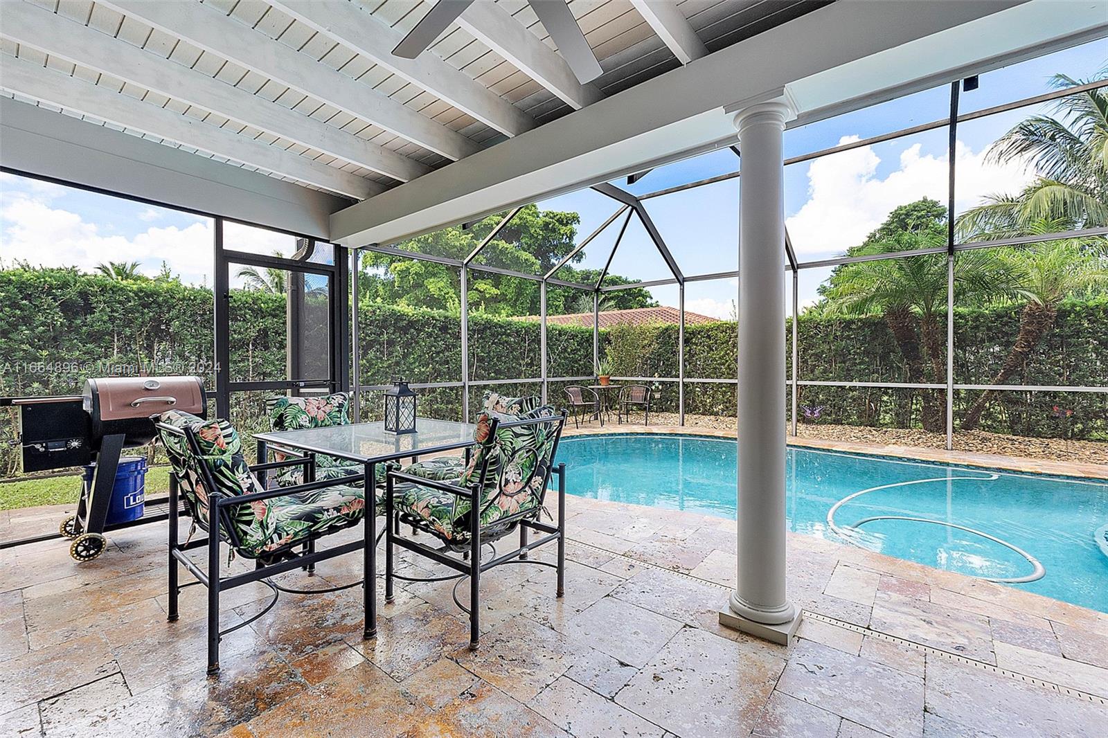 Amazing Updated 3 Bed 2 Bath Pool Home W/ 2 Car Garage In Most Prestigious Cypress Run In Coral Springs! Large Kitchen W/ SS/Black Appliances, Kitchen Pass Thru Impact Window, Recessed Lighting, Granite Counters & Wood Cabinets. New Luxury Vinyl Floors, New Flat Roof, New Closet Doors & Fixtures. Primary Bedroom Overlooks Pool & Yard And Has A Walk-In Closet. Updated En-Suite Cabana Bath W/ New White Wood Vanity, Marble Top, Tile Shower W/ Enclosure And New Light Fixture. 2 Other Bedrooms Have Ceiling Fans, Blinds And Closets. Hall Bath W/ Granite Counter, Large Mirror And Shower/Tub. Screened Patio With Marble Pavers, Large Heated Pool W/Sun Shelf, Wood Plank Ceiling. Sprinkler System. Indoor Laundry. Newer Water Heater (2021) & A/C (2018). No HOA! Close To Parks & Dining,. Must See!