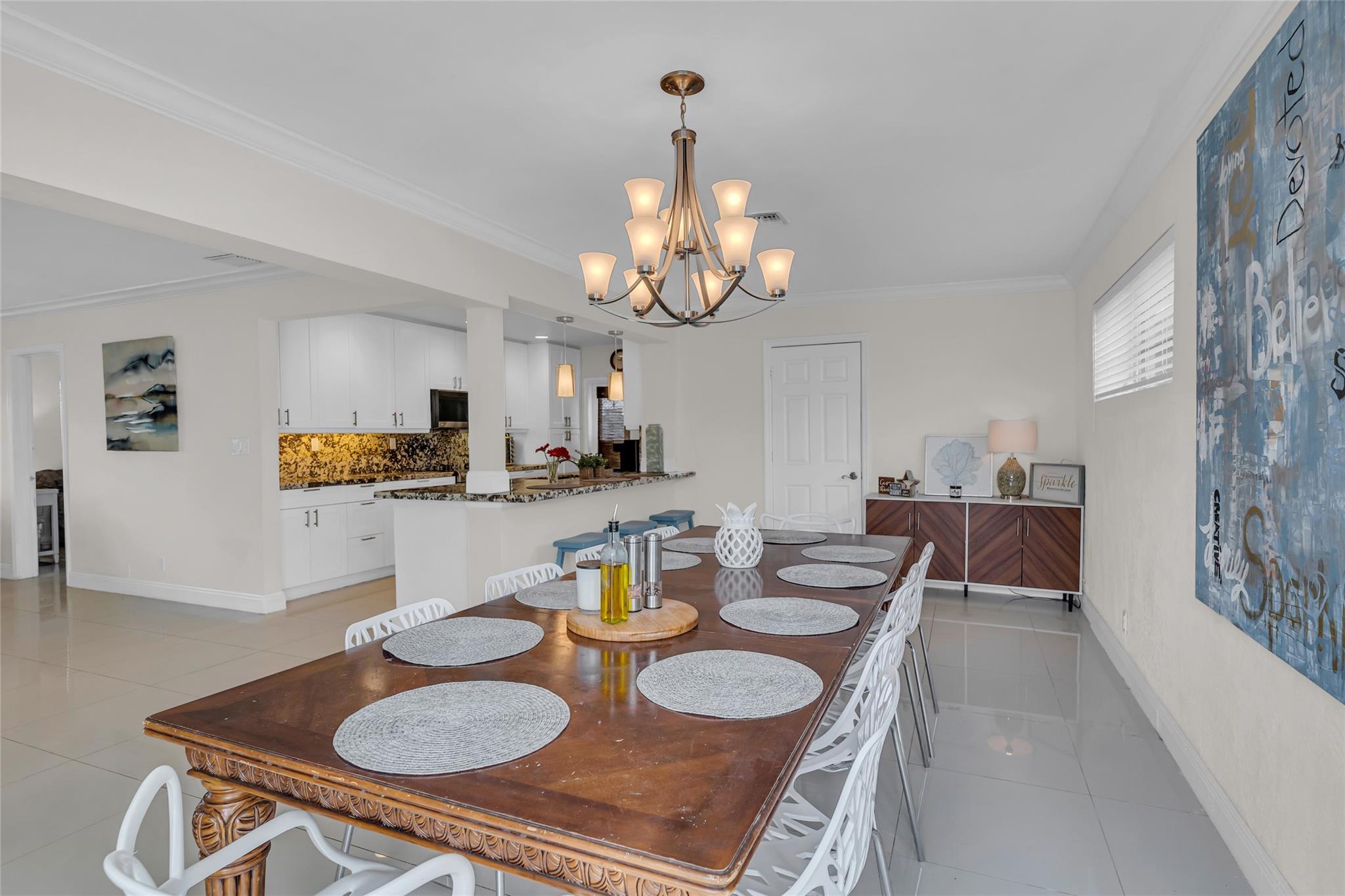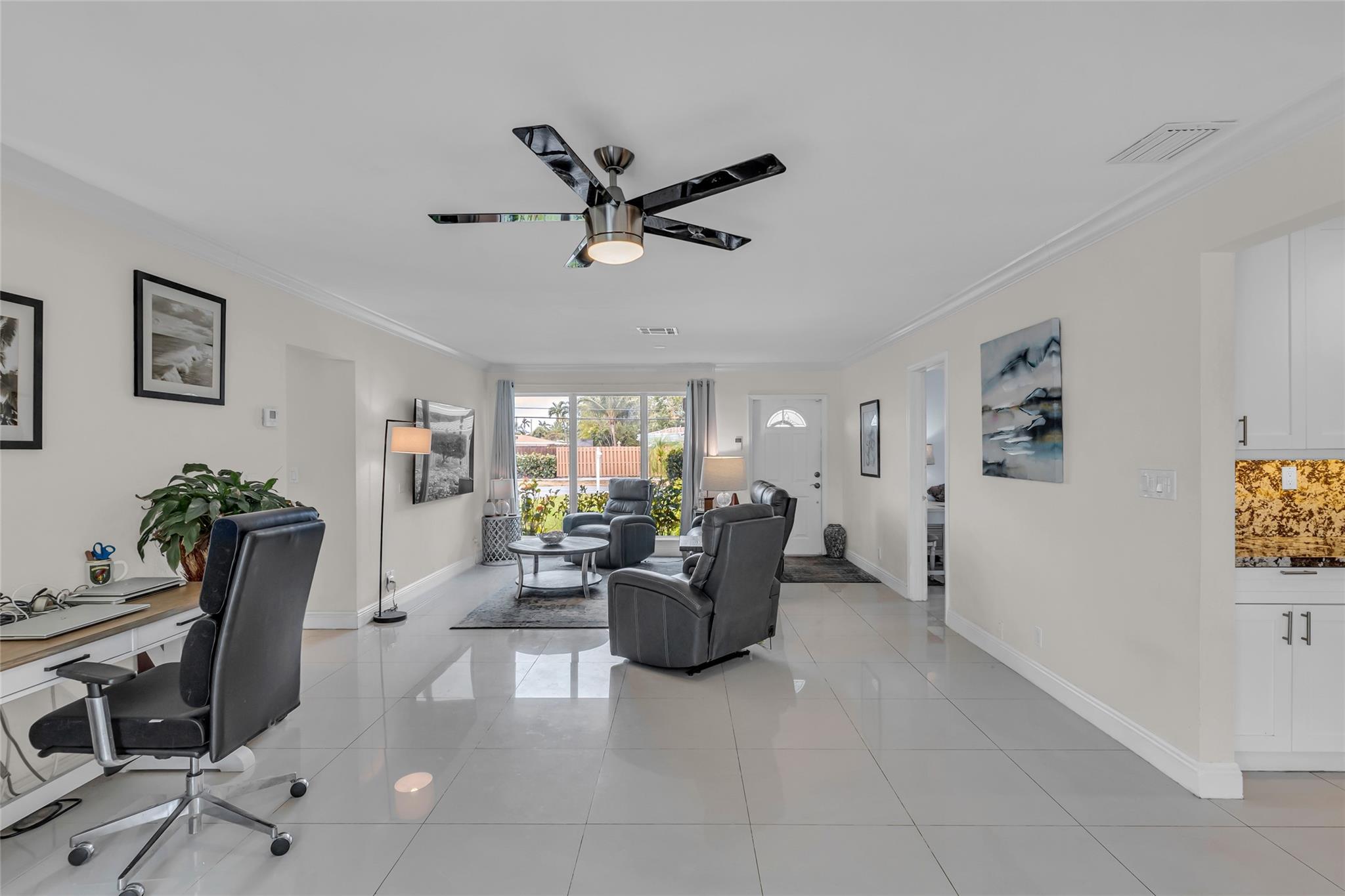 Experience the epitome of South Florida living in this immaculate 3/2 pool home in Coral Ridge Isles. Featuring a spacious open floor plan adorned with crown molding, tile flooring and an abundance of natural light, this residence exudes a warm and inviting ambiance. The kitchen boasts granite countertops, stainless steel appliances and ample cabinet space. Step outside to your own private oasis: a heated saltwater pool, expansive patio and charming gazebo provide the perfect backdrop for al fresco dining, sun-soaked relaxation, and entertaining guests. Both the backyard and side yard are outfitted with turf for easy upkeep. Prime location, just moments away from pristine beaches, vibrant shopping districts, and a diverse culinary scene. Don't miss your chance to call this paradise home!