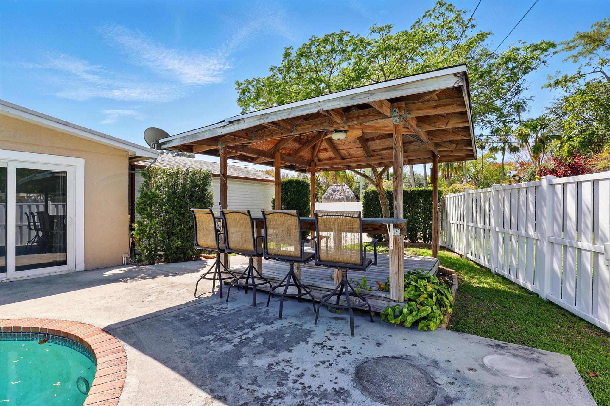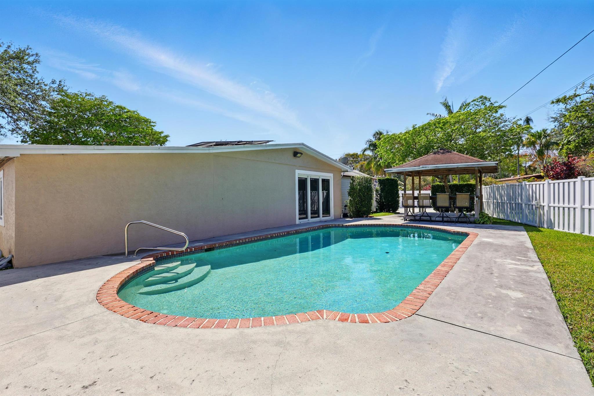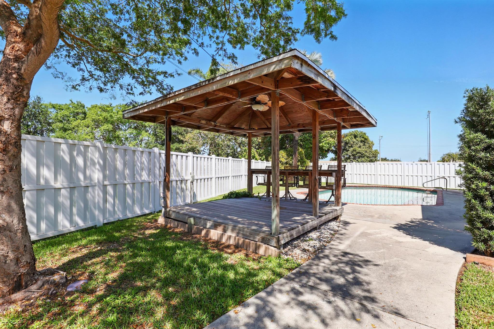 Welcome to this cul-de-sac home in Plantation Gardens, featuring 3 cozy bedrooms and 2 bathrooms, plus two useful dens for home offices, a game room, etc. The expansive driveway provides ample parking including an extended section ideal for RVs and boats. Beautiful custom front door. This home has all hurricane impact windows and doors, along with energy-saving solar panels. Step outside to a beautiful backyard with a sparkling pool and a gazebo, perfect for entertaining or relaxing. Don't miss your chance to call this wonderful property your new home!