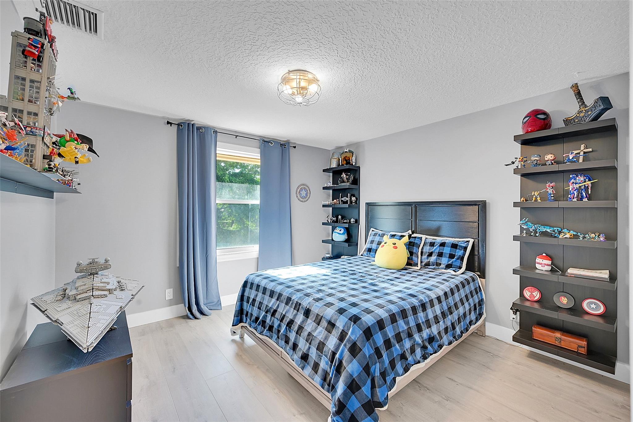 Beautiful updated 6BR,3BA one room being used as an office, (making it 6 bedrooms if needed) with brand new commercial double doors for privacy. Located in a gated community with a super low HOA fee. Large driveway to fit many vehicles. High ceilings, new appliances, many upgrades. One bedroom and full bath is downstairs. Custom closets in the primary room and custom pantry closet off kitchen. Open, airy and spacious. The backyard has a calming retreat feel and very private. Huge separate fountain as long as the pool. Both with pebble finish. Home is unique because it is suitable for any of your family's needs. Very large screened in patio. Many updates to this home. Truly one of a kind in a very desirable neighborhood. A must see. This home will not last.