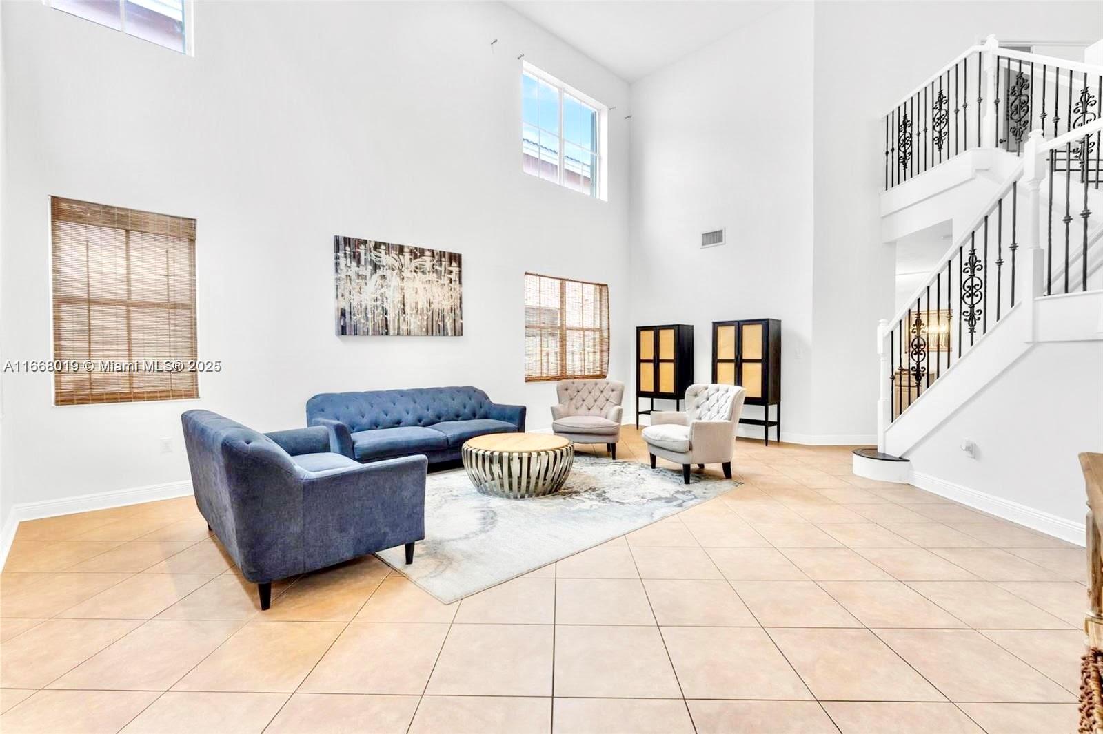 Motivated Seller!! Welcome to this Beautiful 4 Bedroom, 3 Bath home! Great for a family and entertaining. Expansive vaulted ceilings, beautiful bright lighting, with spacious living and dining room, stunning iron staircase; Chef's kitchen with granite countertops, deluxe island, & upgraded stainless appliances. Cozy family room, Primary Bedroom suite with huge closets, dual vanity, roman soaking tub, separate shower; very spa like. Play Room/ Guest Bedroom/Home Office with backyard exterior access. Two car garage, and a spacious laundry room. Fully fenced backyard, accordion shutters. Centrally located in the desirable Monarch Lakes. Community amenities, pool, park, tennis courts and more! Very low association. Brand New A/C, Newer Roof!