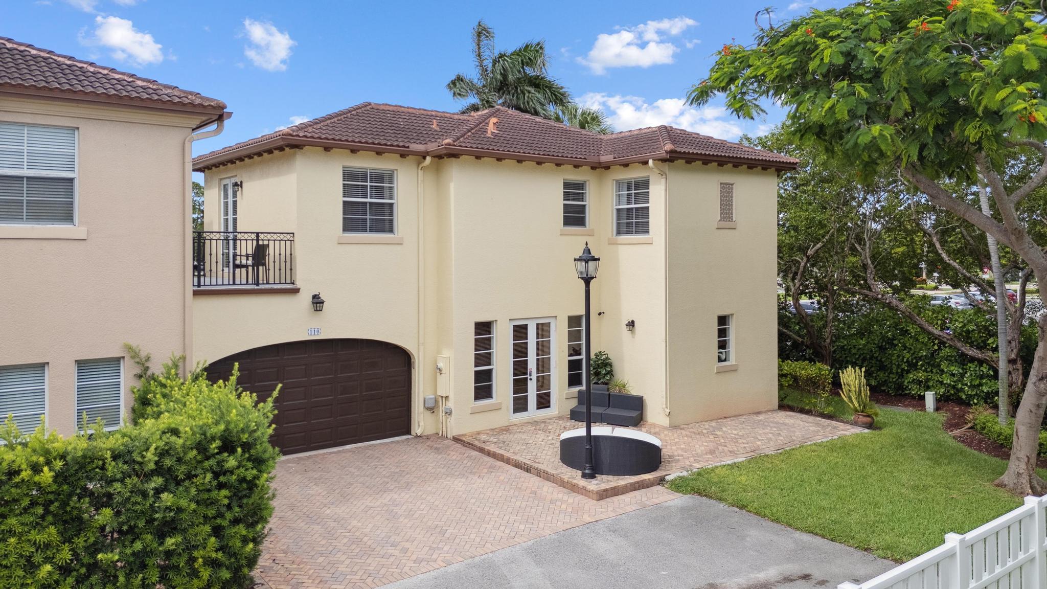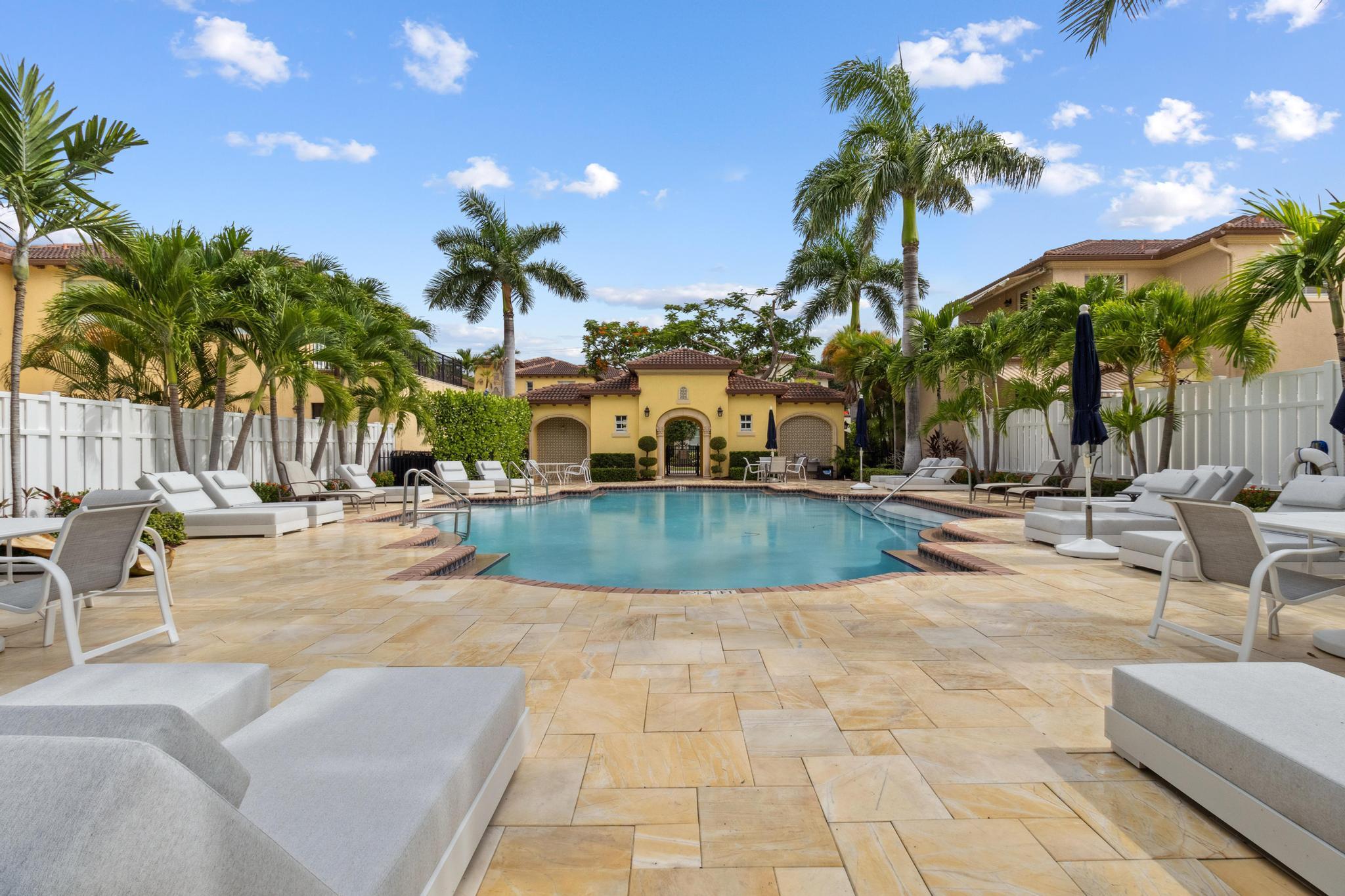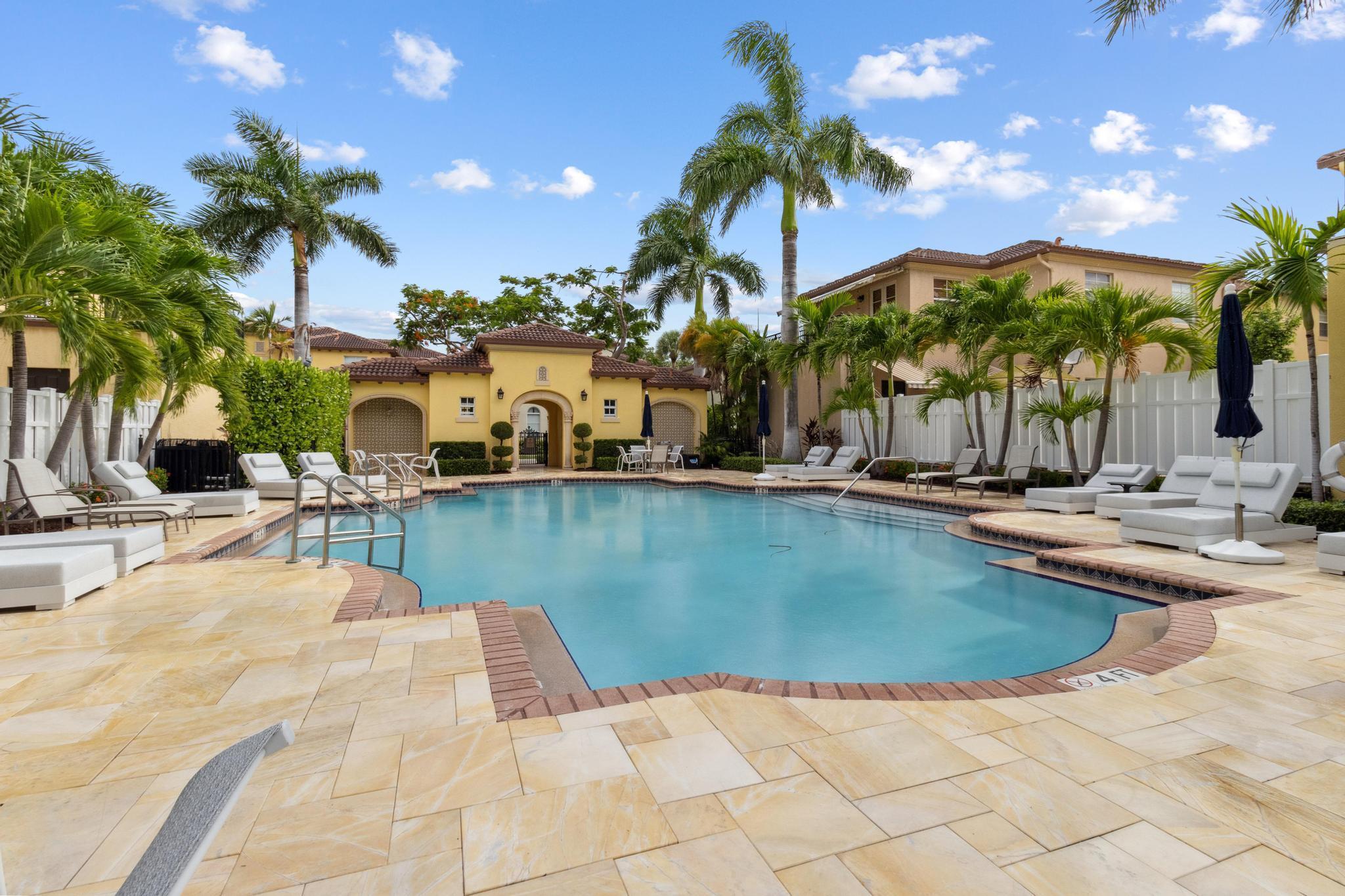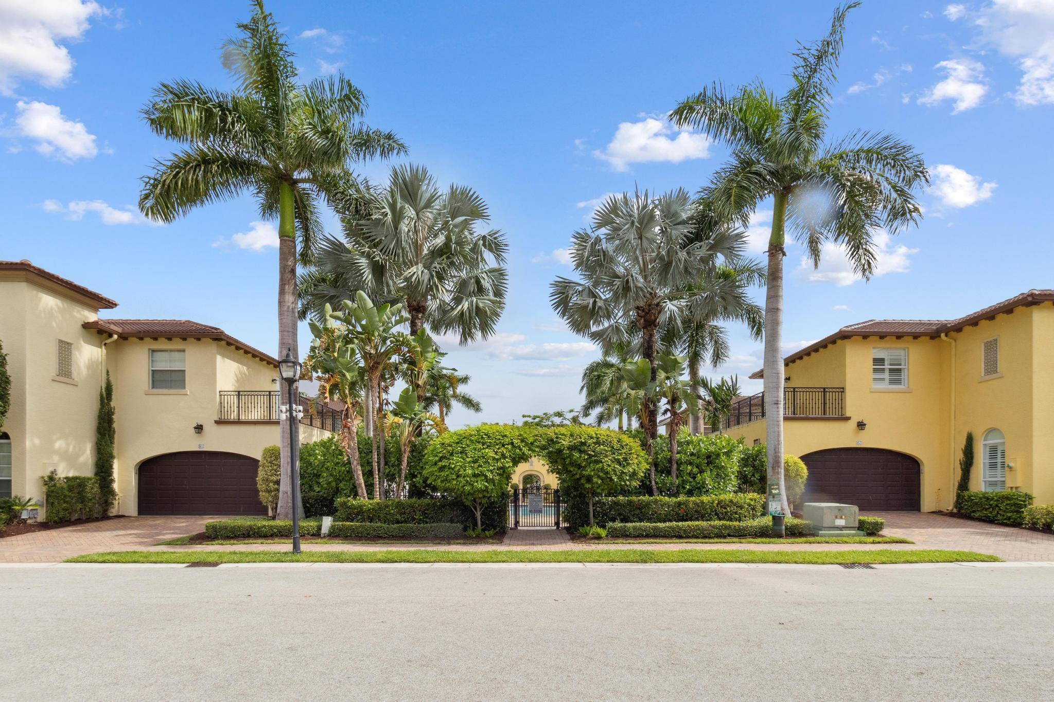 Inspired Spanish Mediterranean townhome in the highly sought-after gated community of Royal Poinciana in East Boca Raton featuring paver walkways/driveways with lush landscaping and resort style pool. Elevate your lifestyle in this 3 bed/2.5 bath townhome featuring dramatic entry with gorgeous staircase and volume ceilings and open concept living with no shared walls--only attached by garages. Travertine flooring throughout, walk in custom closets and large Master suite with French doors to the upper sundeck. Complete with hurricane impact windows and doors, WiFi lighting throughout, chandeliers convey, A Rated Schools. Located close to Atlantic Avenue, Mizner Park, and the beautiful beaches of Delray Beach and Boca Raton, this home offers the perfect balance of convenience and relaxation.