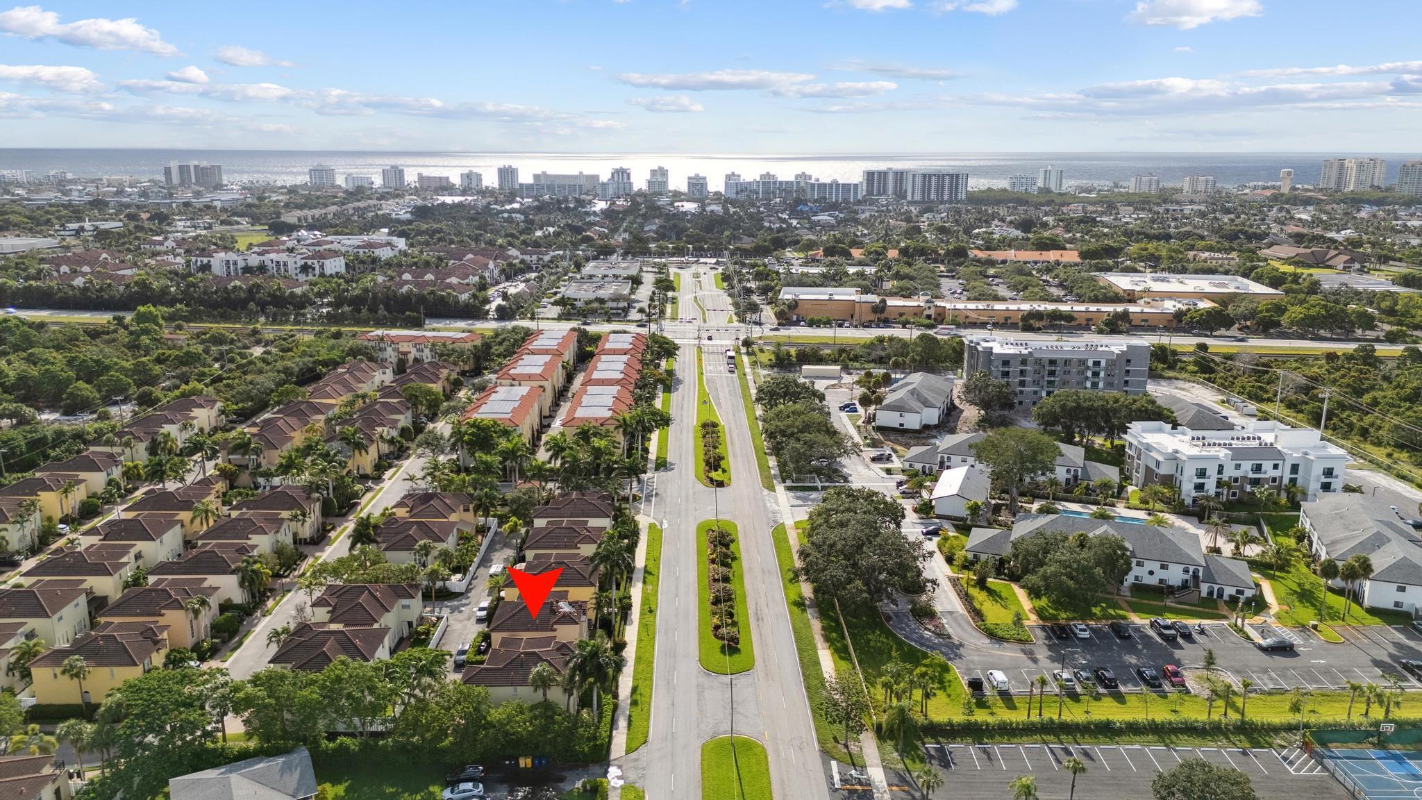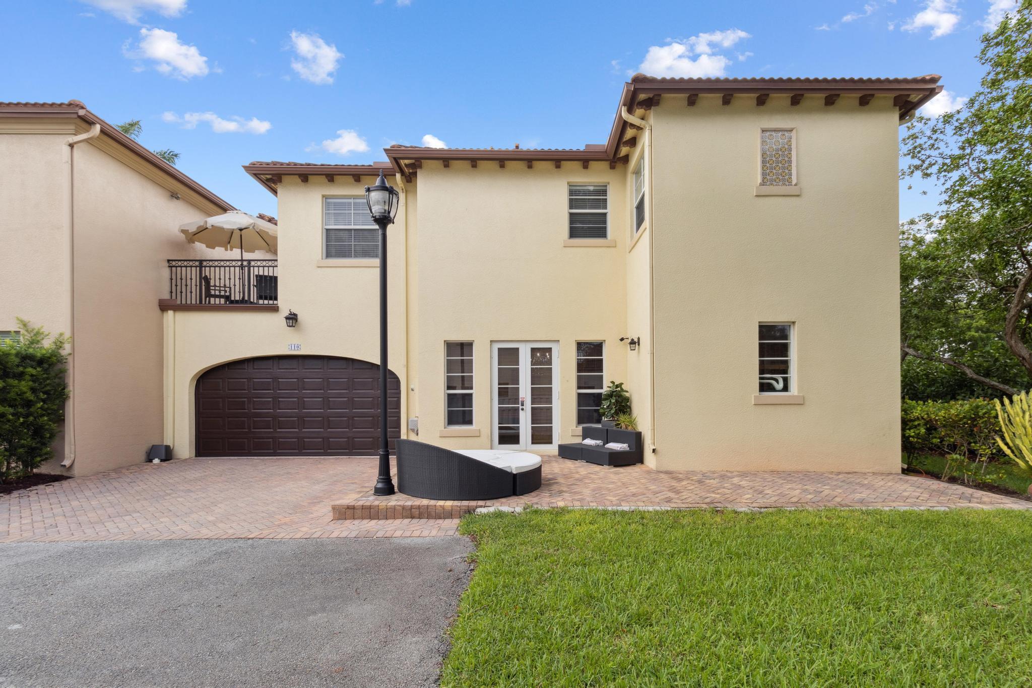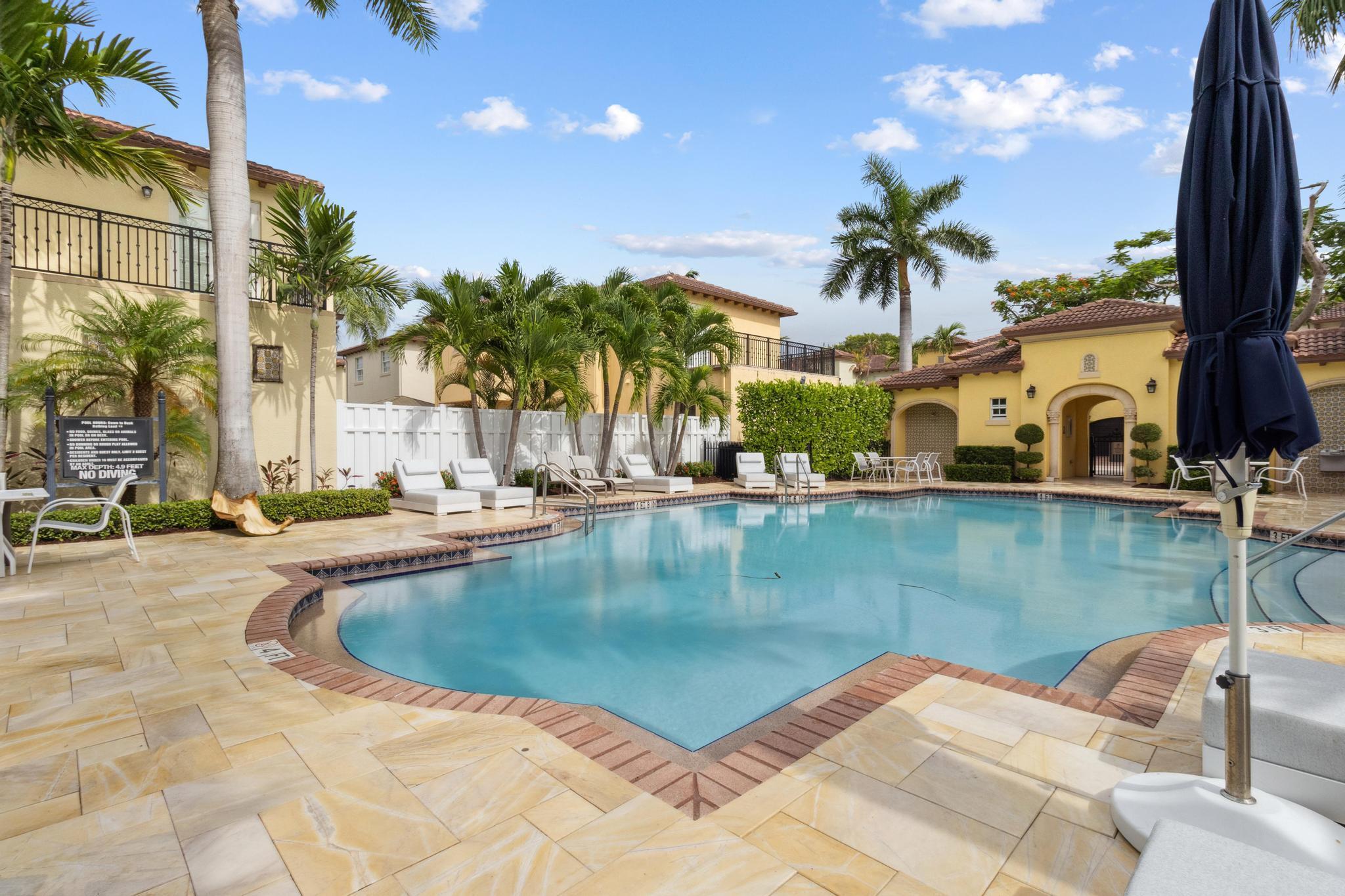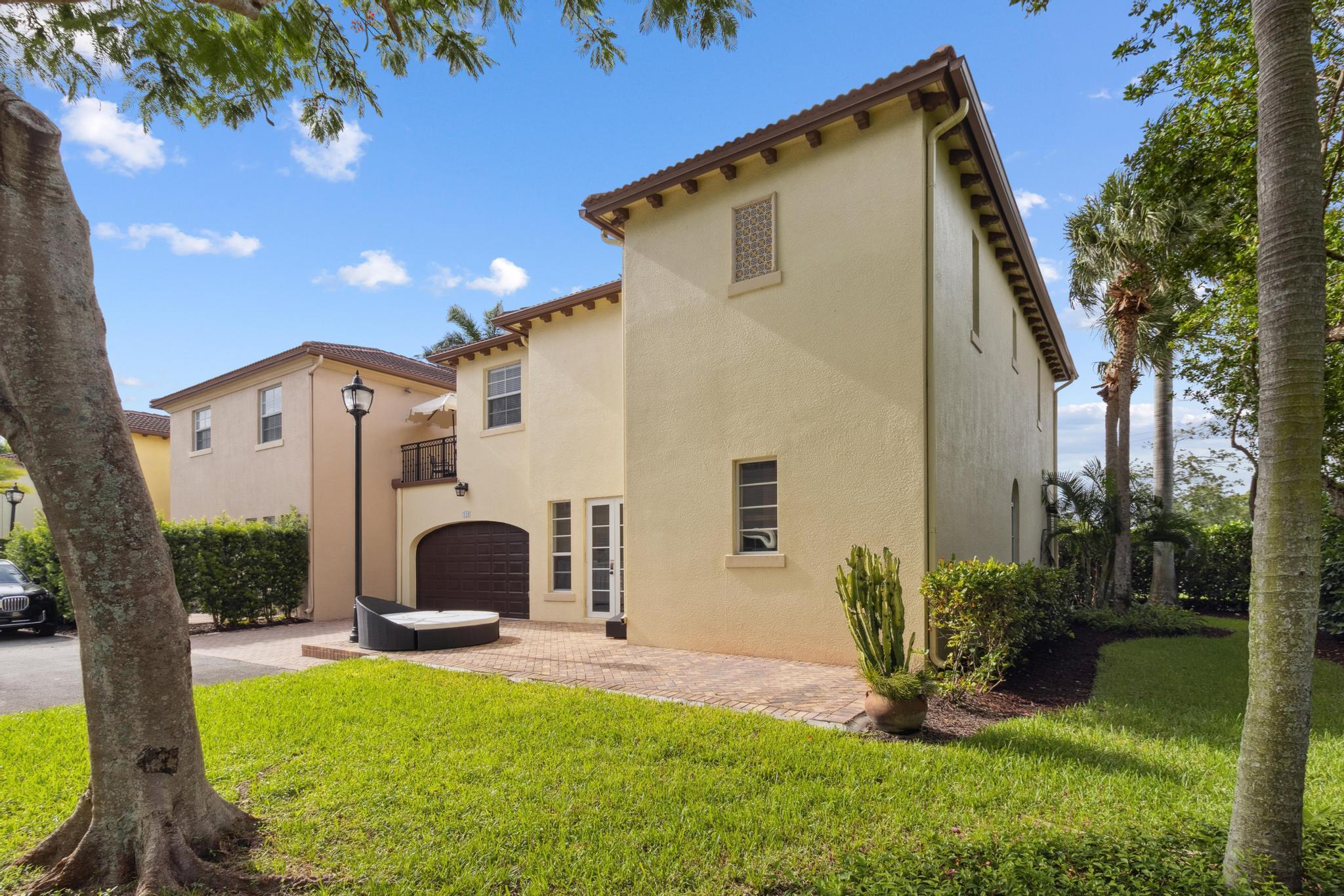 Inspired Spanish Mediterranean townhome in the highly sought-after gated community of Royal Poinciana in East Boca Raton featuring paver walkways/driveways with lush landscaping and resort style pool. Elevate your lifestyle in this 3 bed/2.5 bath townhome featuring dramatic entry with gorgeous staircase and volume ceilings and open concept living with no shared walls--only attached by garages. Travertine flooring throughout, walk in custom closets and large Master suite with French doors to the upper sundeck. Complete with hurricane impact windows and doors, WiFi lighting throughout, chandeliers convey, A Rated Schools. Located close to Atlantic Avenue, Mizner Park, and the beautiful beaches of Delray Beach and Boca Raton, this home offers the perfect balance of convenience and relaxation.