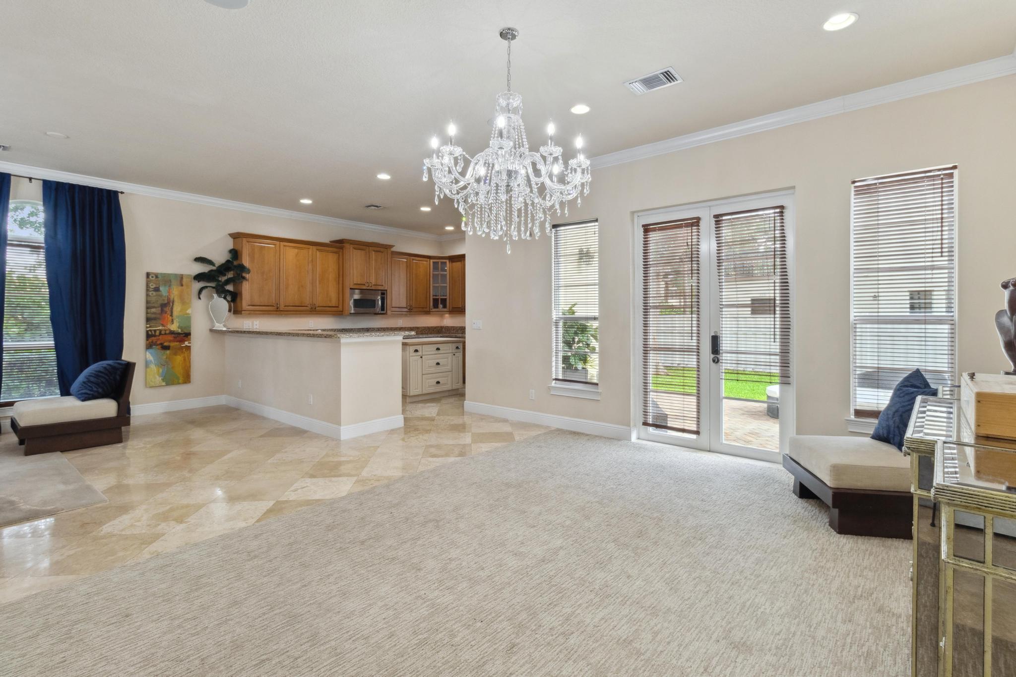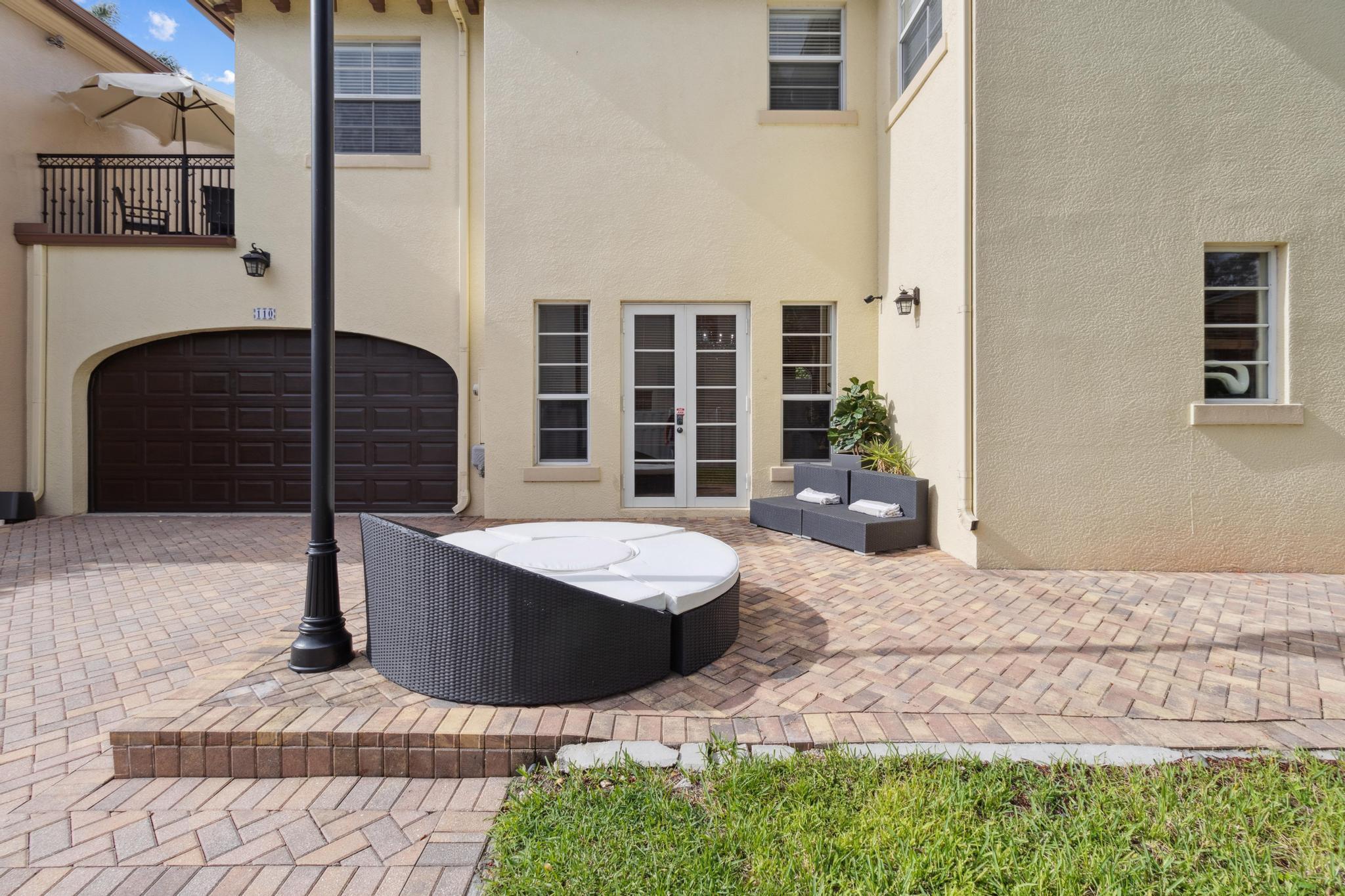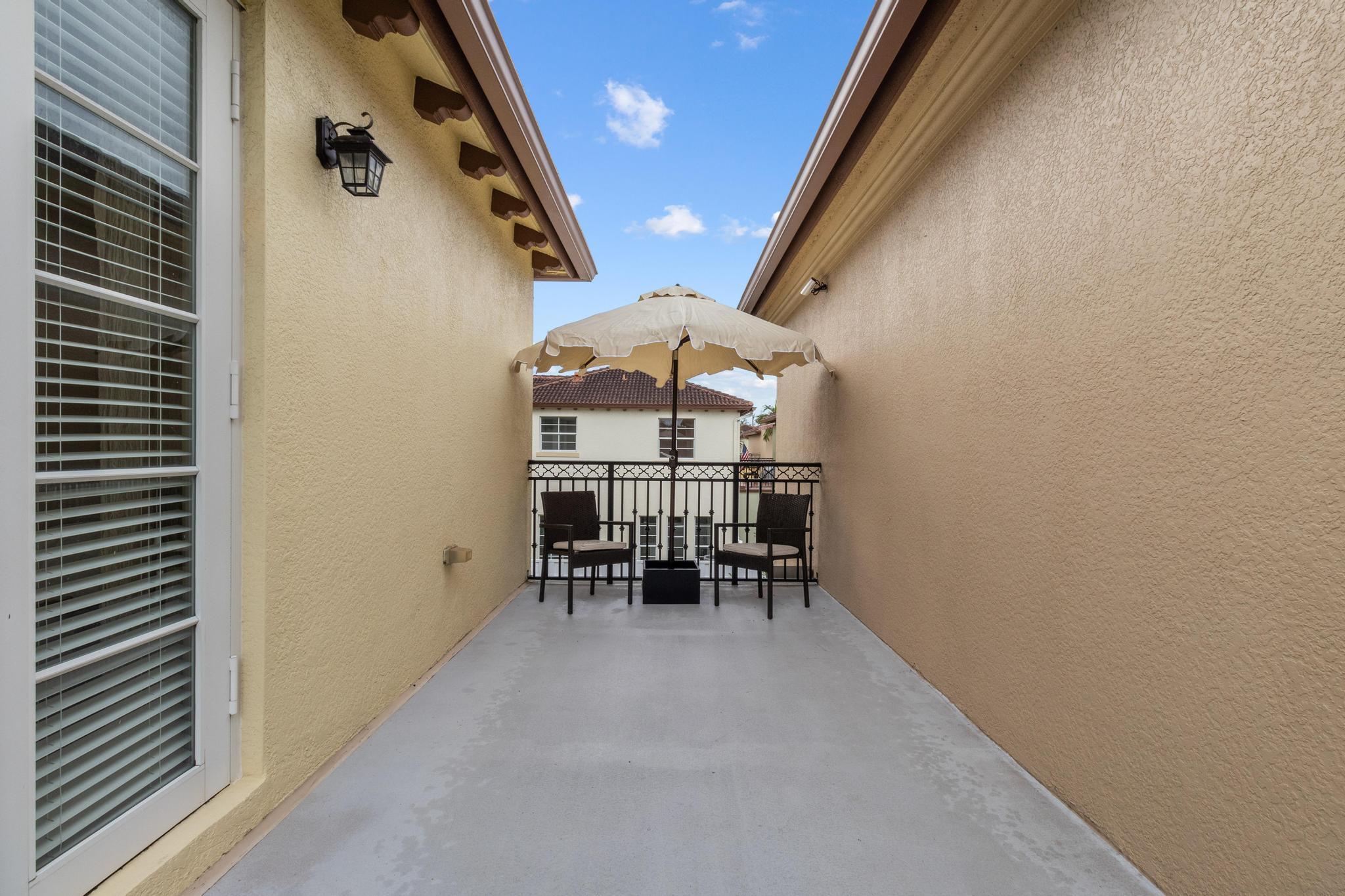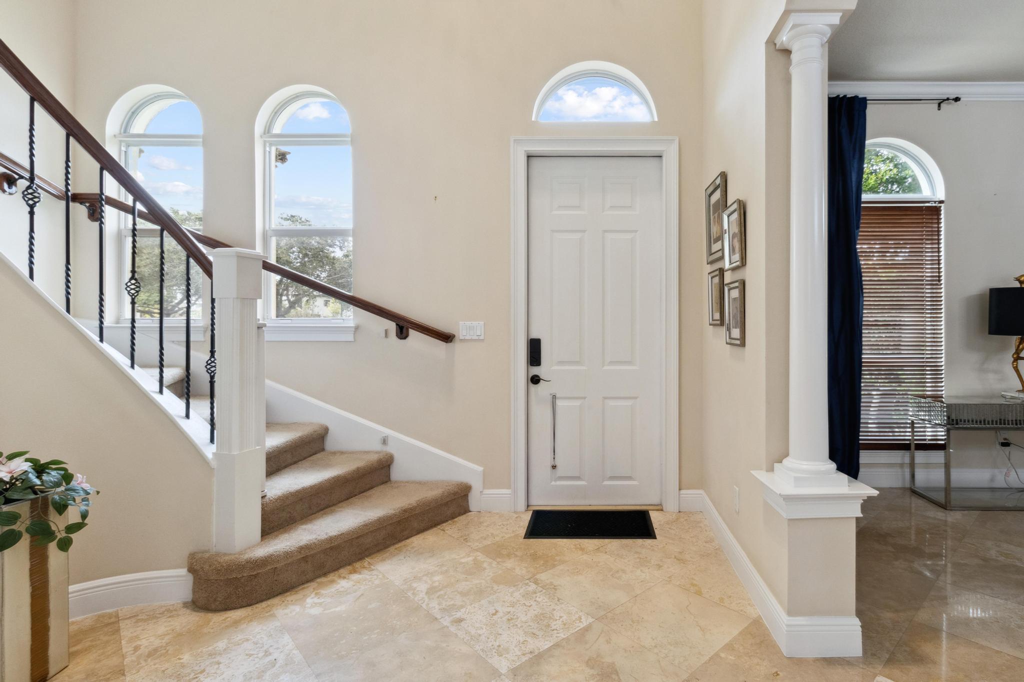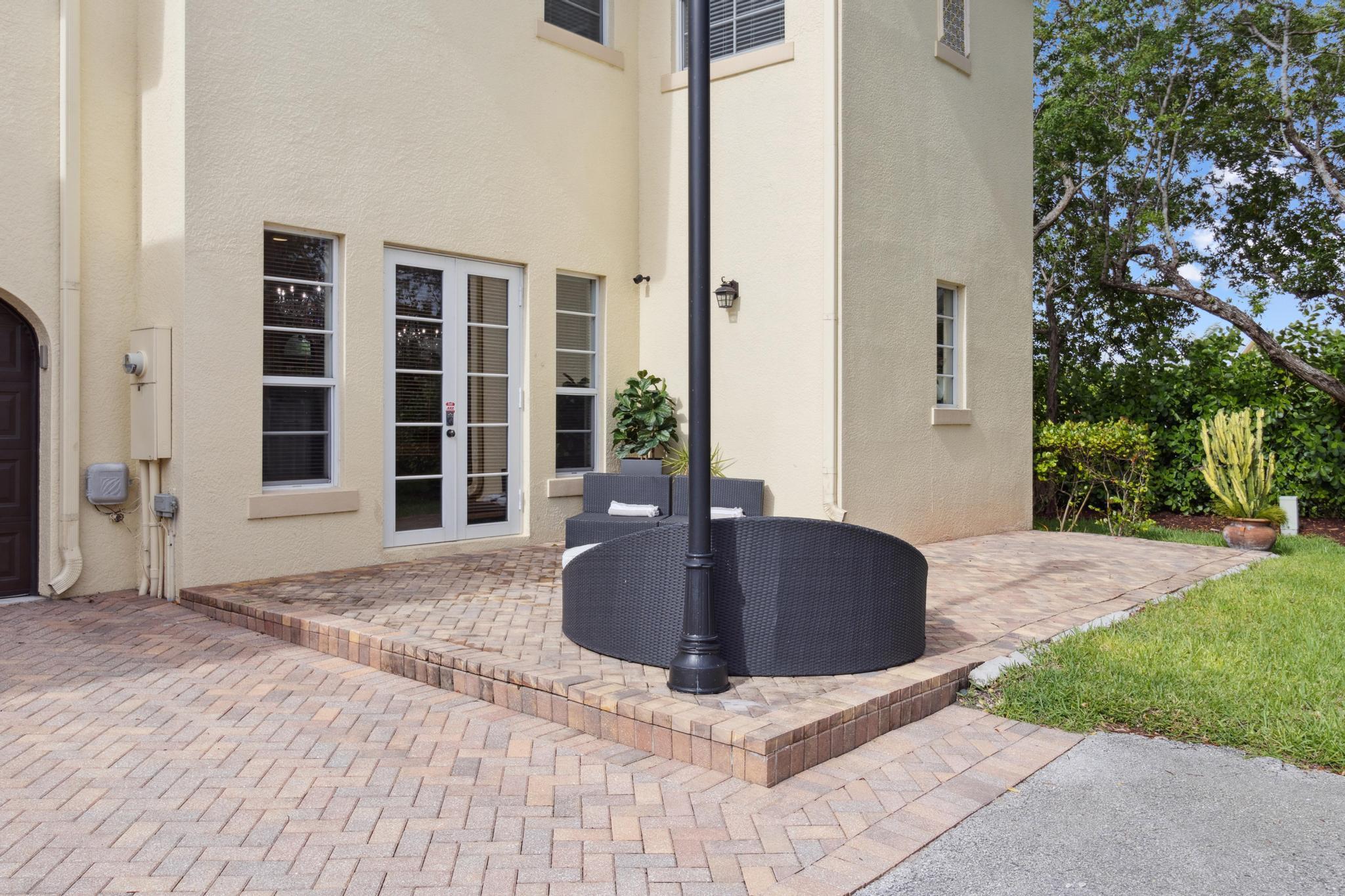 Inspired Spanish Mediterranean townhome in the highly sought-after gated community of Royal Poinciana in East Boca Raton featuring paver walkways/driveways with lush landscaping and resort style pool. Elevate your lifestyle in this 3 bed/2.5 bath townhome featuring dramatic entry with gorgeous staircase and volume ceilings and open concept living with no shared walls--only attached by garages. Travertine flooring throughout, walk in custom closets and large Master suite with French doors to the upper sundeck. Complete with hurricane impact windows and doors, WiFi lighting throughout, chandeliers convey, A Rated Schools. Located close to Atlantic Avenue, Mizner Park, and the beautiful beaches of Delray Beach and Boca Raton, this home offers the perfect balance of convenience and relaxation.